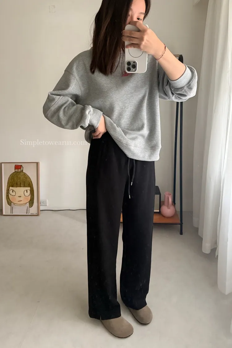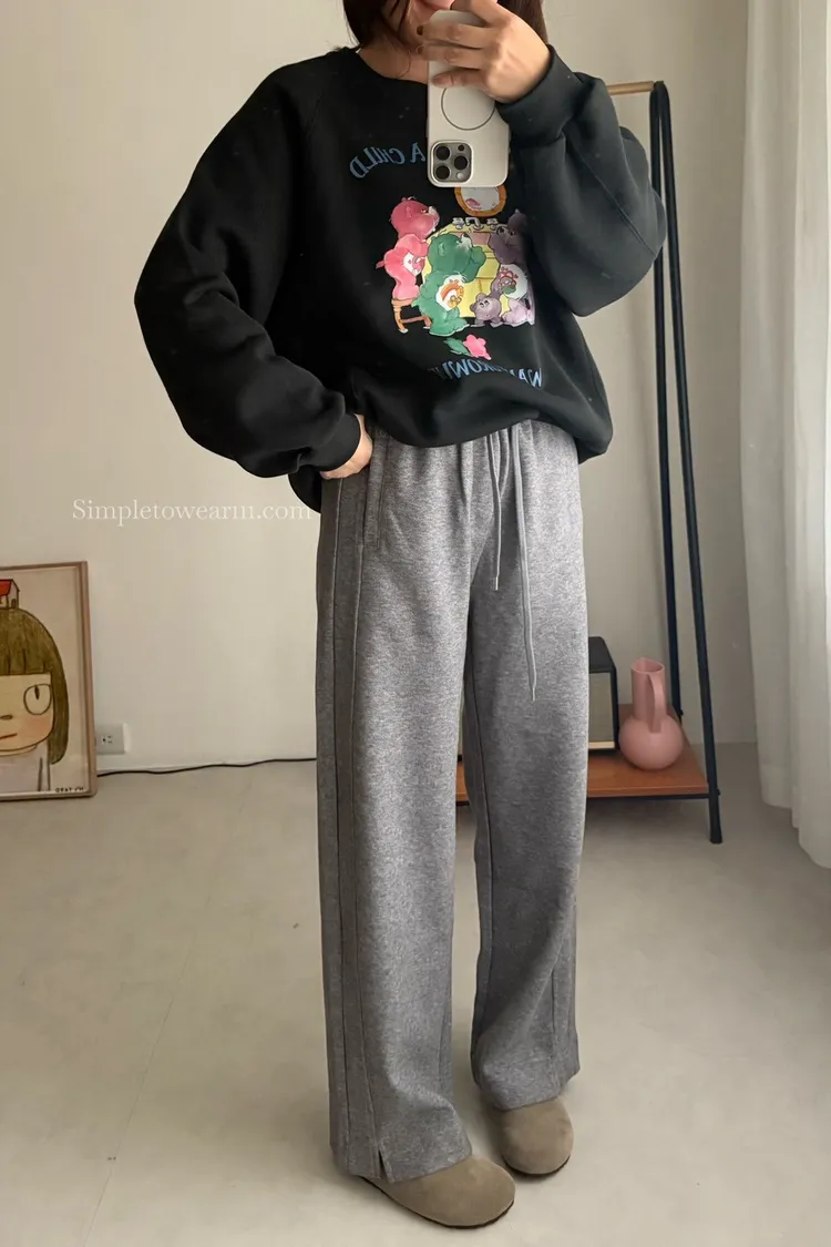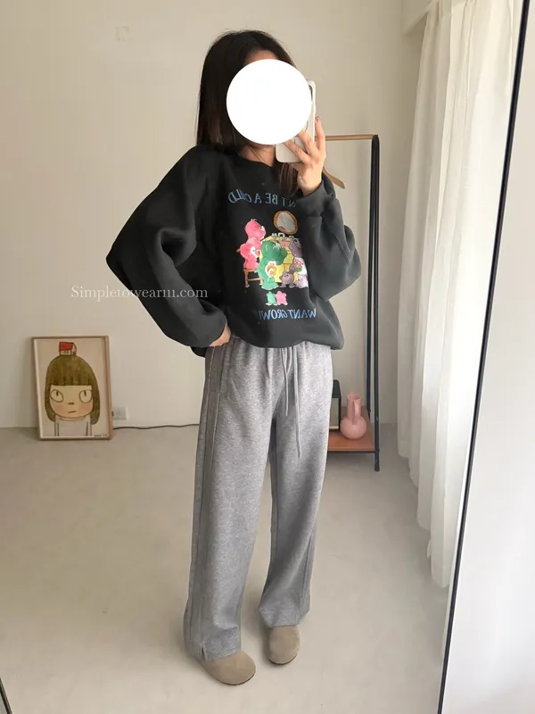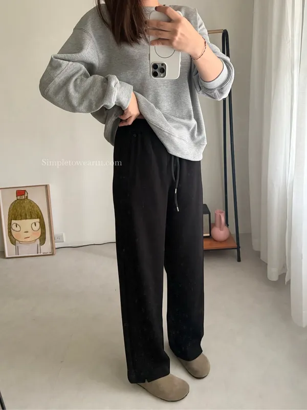 本期必拿 超暖羊絨直筒褲 黑/淺灰 M~XL