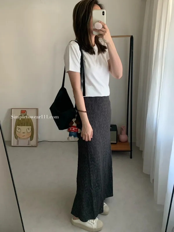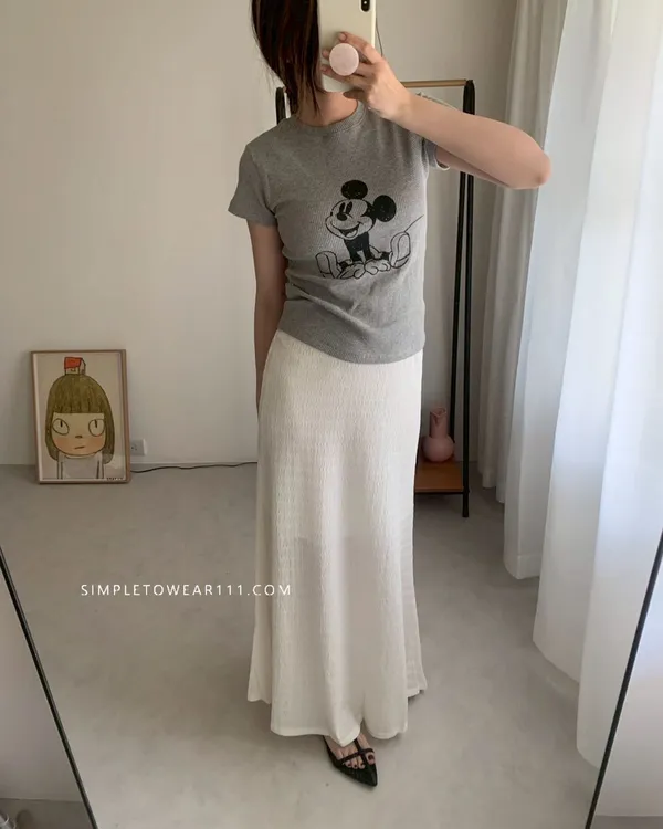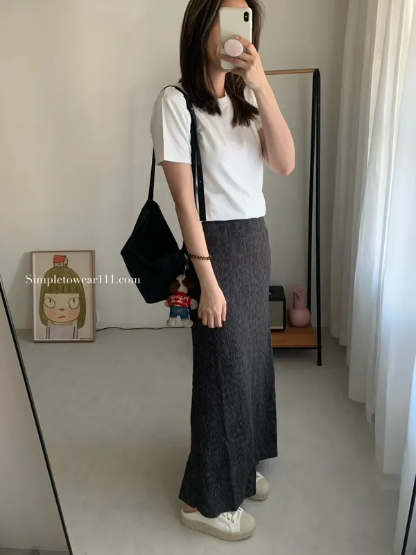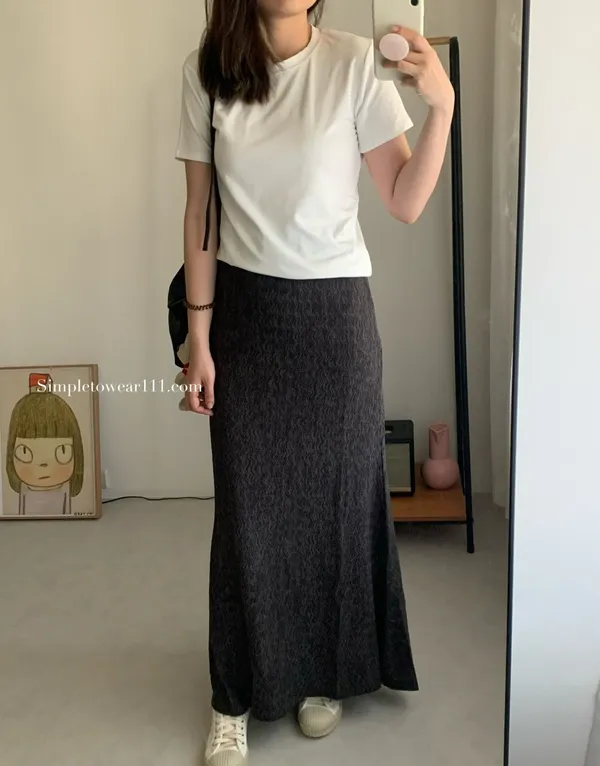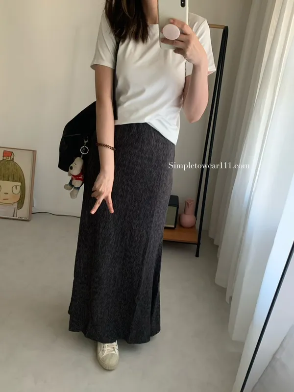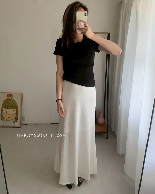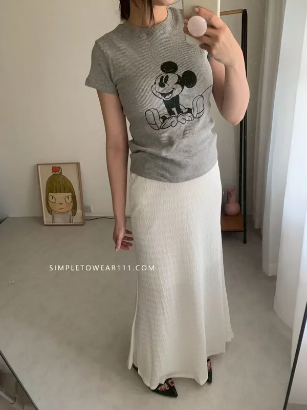 超顯瘦 鬆緊腰波浪紋魚尾裙 (米白/黑)