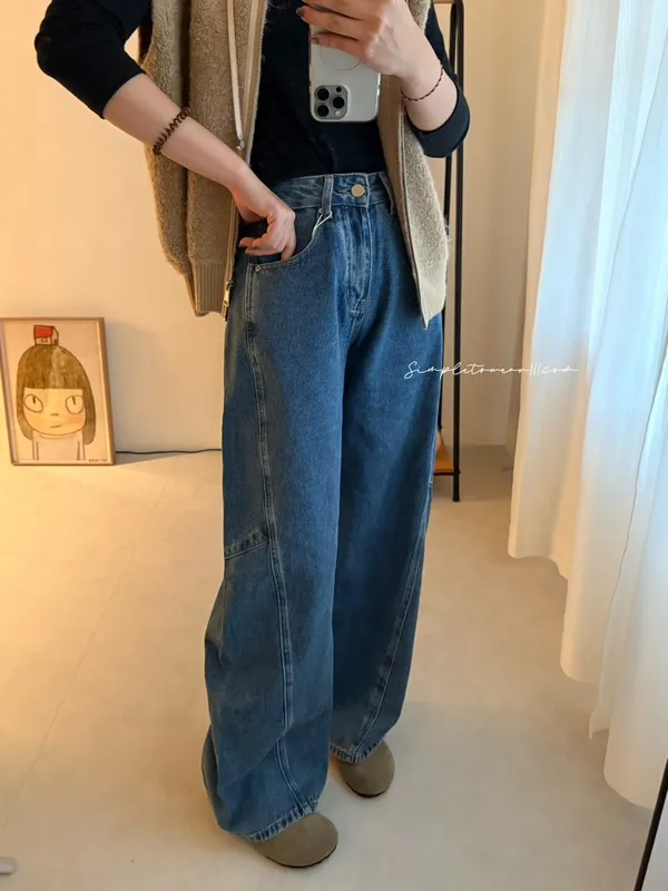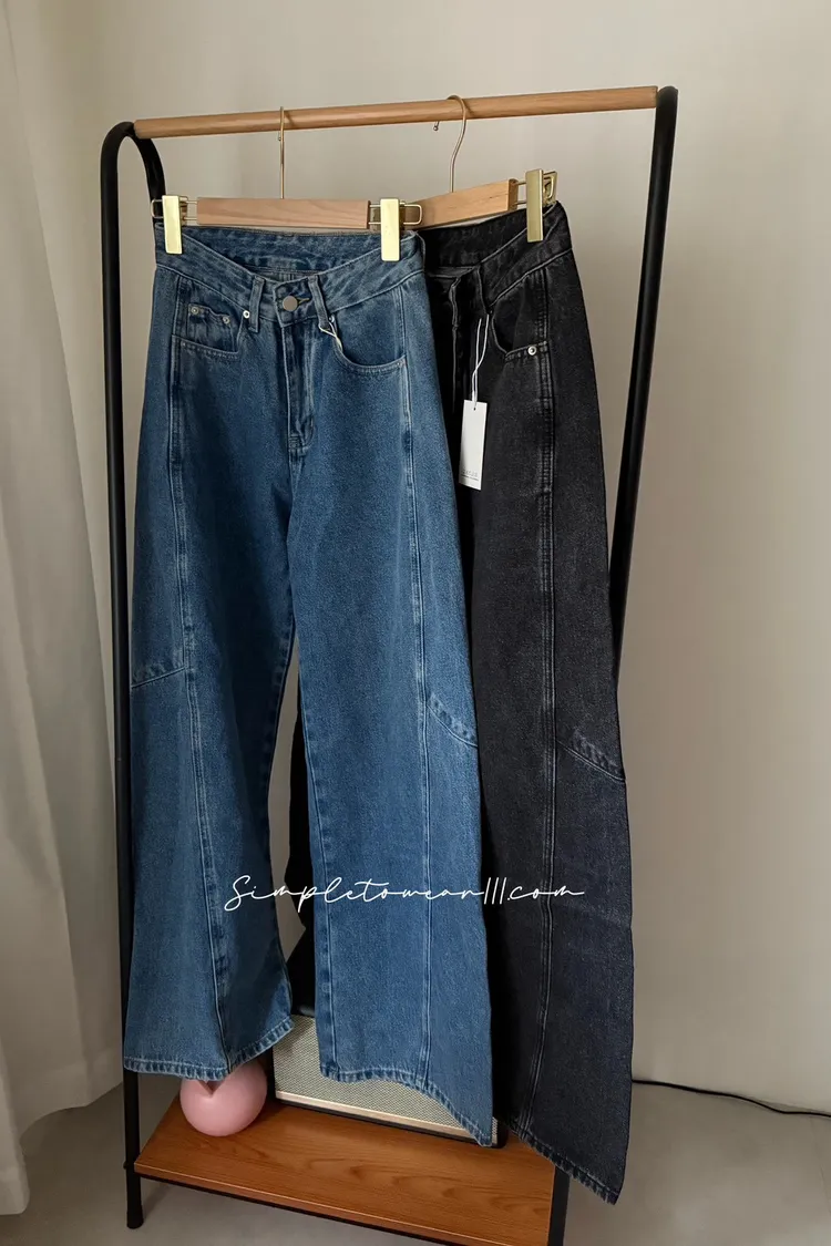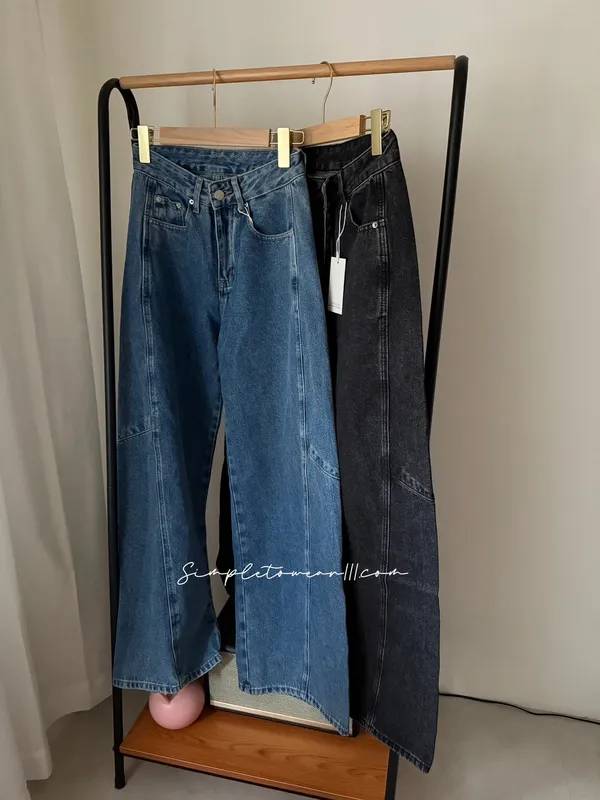 【雙11特賣】超級顯瘦!!剪裁彎刀牛仔褲(藍/黑)S~XL