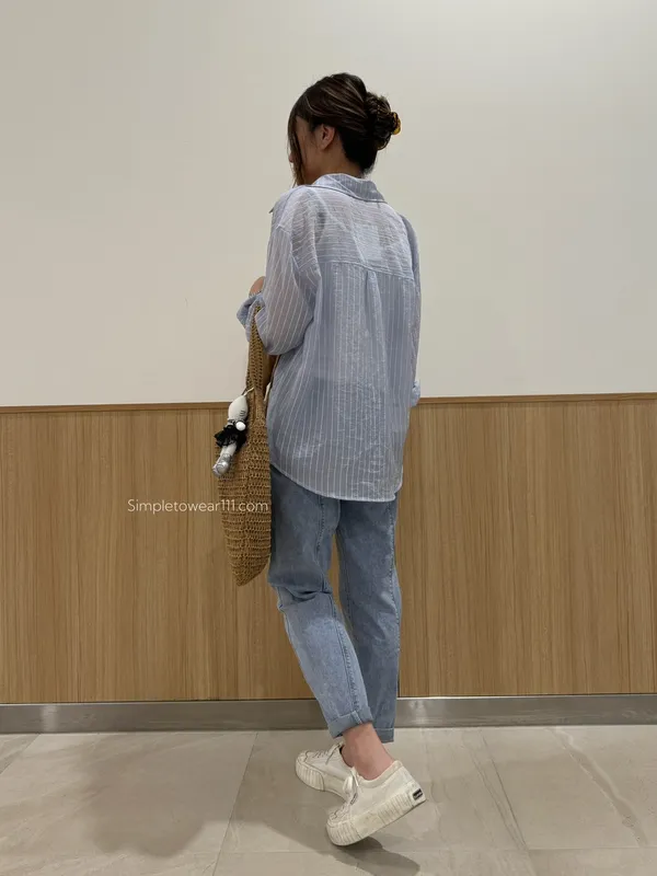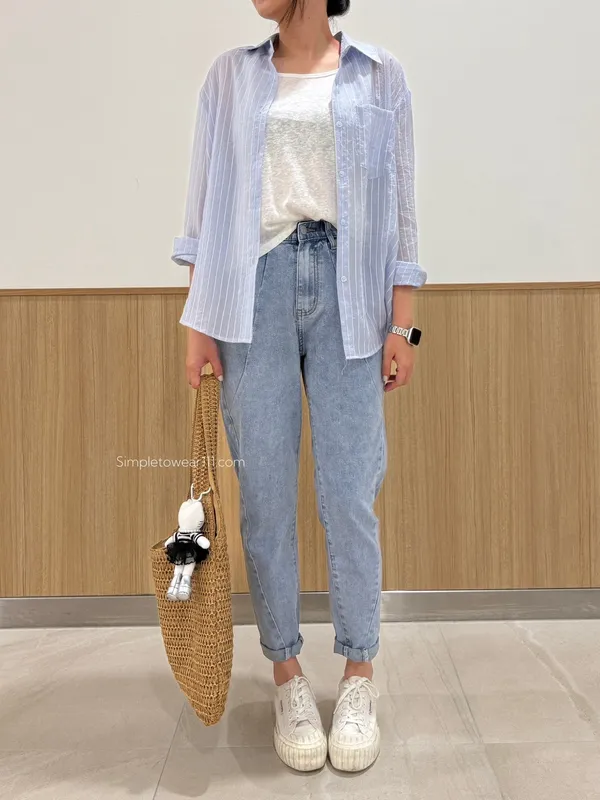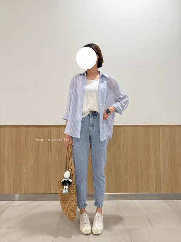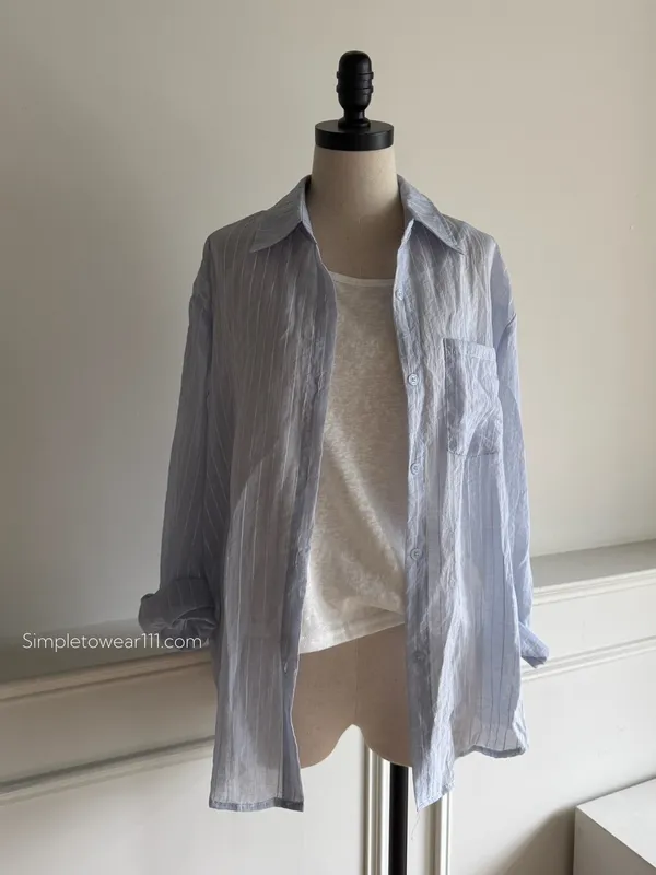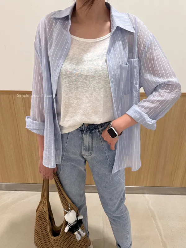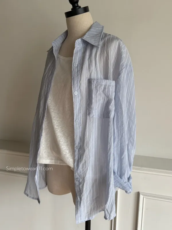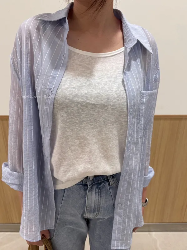 AU01 夏日必備 淺藍條紋襯衫附背心