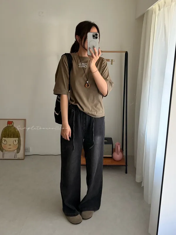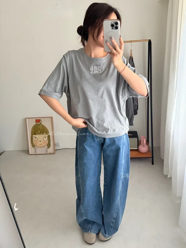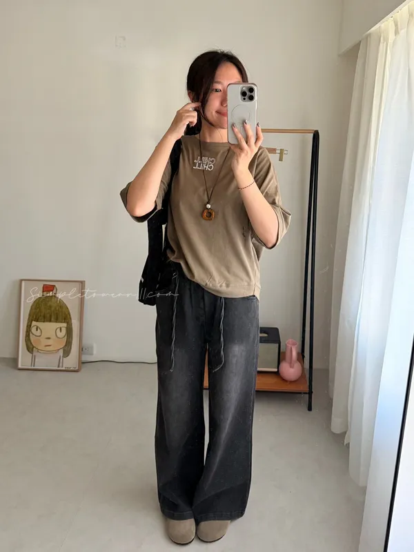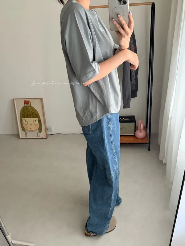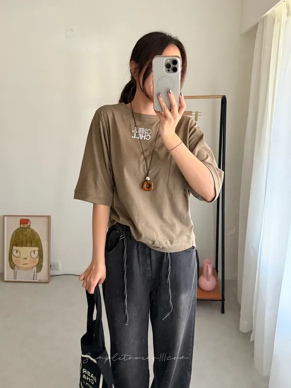 簡約款長袖素TEE穿起來很簡單好搭顏色都做得很秋天 五分袖上衣又很遮肉好搭XDD刺繡字母 不複雜的款式#純棉材質 有挺度 弧度袖很修身 可吃掉手臂下擺圓弧 可紮可不紮都會好看 #修飾效果好秋天色系 大地純色 好看好搭不暗沉