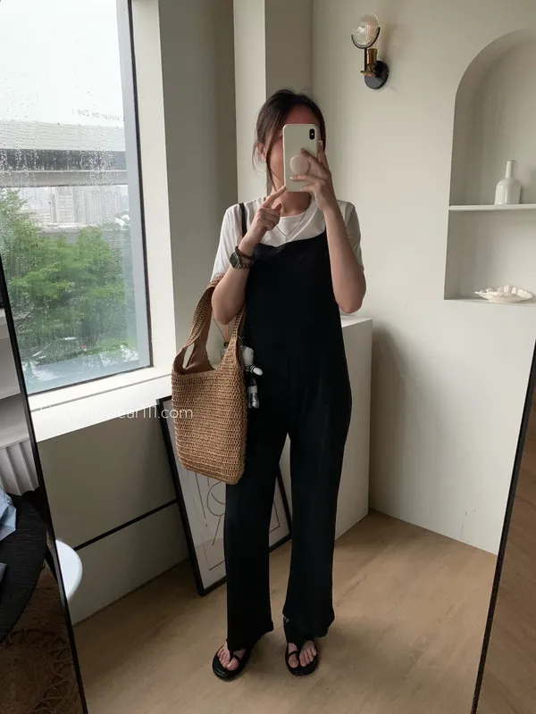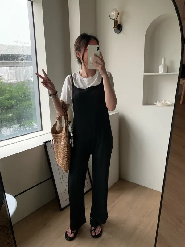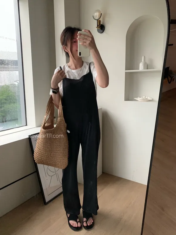 台灣製的涼感布料這款穿起來很涼哦廠商特製的涼感布料穿起來意外的蠻好看欸內搭一件素TEE穿起來很有日系品牌的味道哈配個涼鞋 就很好看囉背後還有圓弧抓皺的設計有點設計感 好好看阿160穿起來大概95分長小個子穿也可以完美駕馭唷