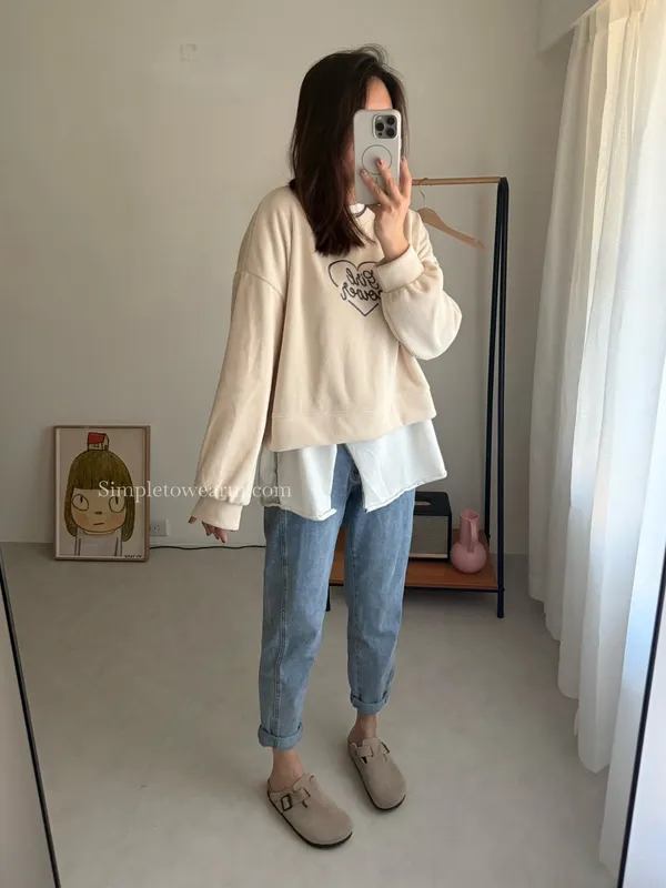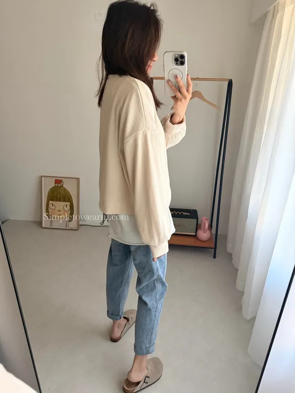 偏短版的設計 可以內搭素TEE 也非常好看(看起來很有層次感)