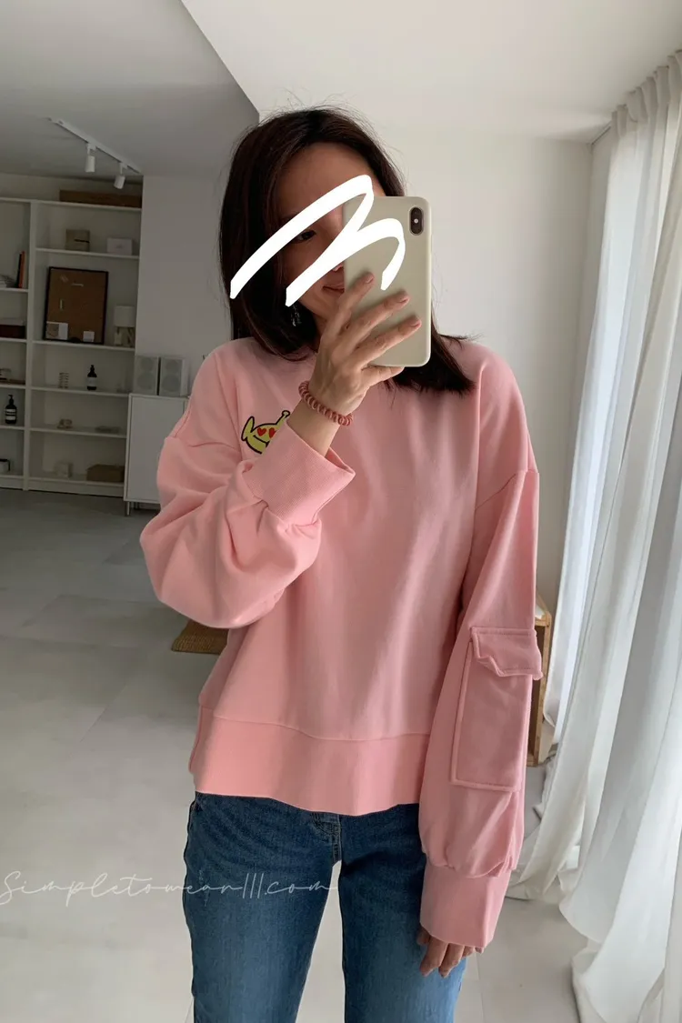 N06 韓 袖口袋三眼怪大學TEE (杏/粉/深灰)