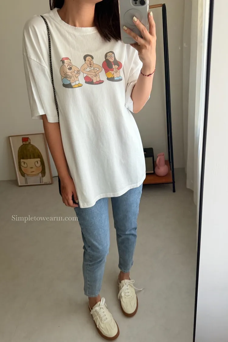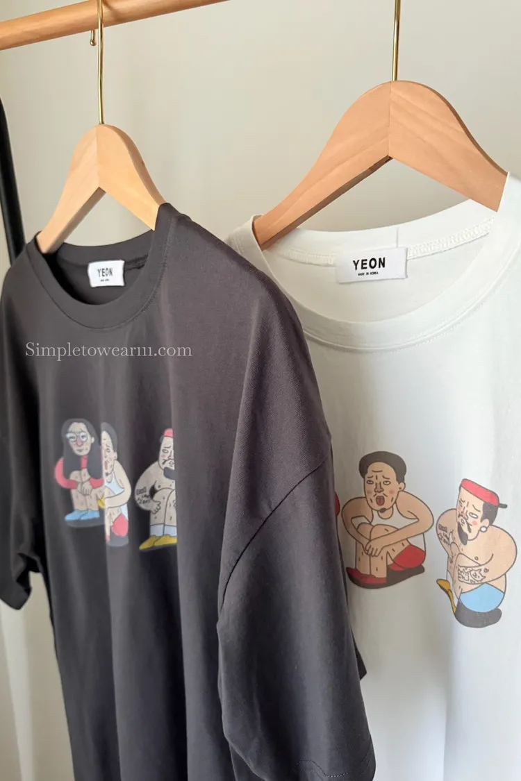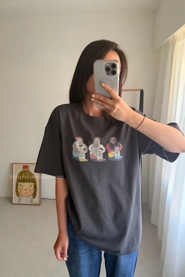 韓 OGS三人純棉寬鬆TEE (深灰/白)