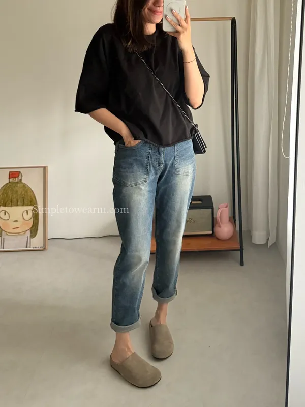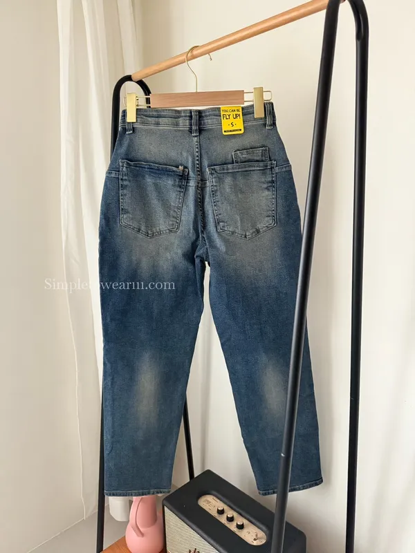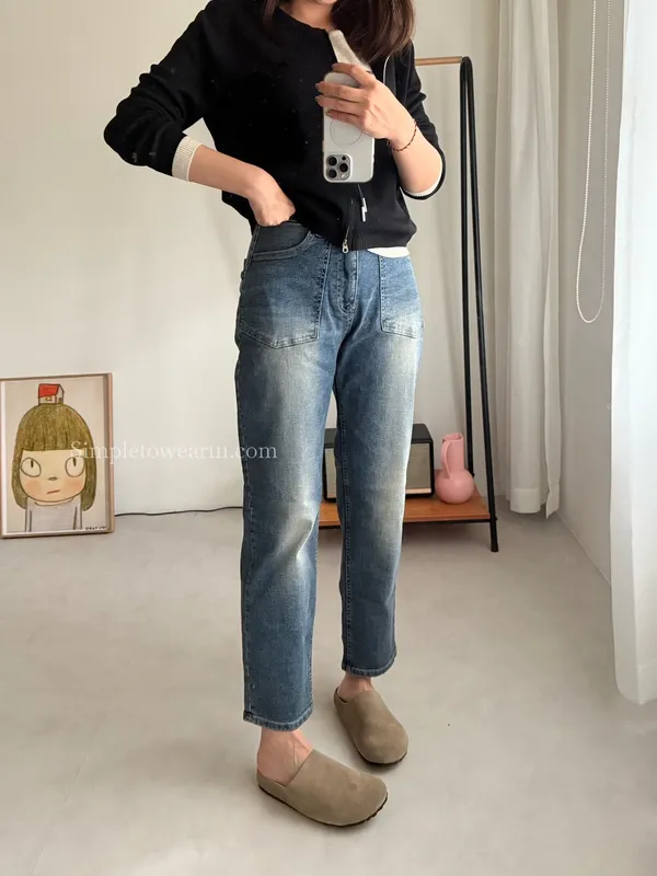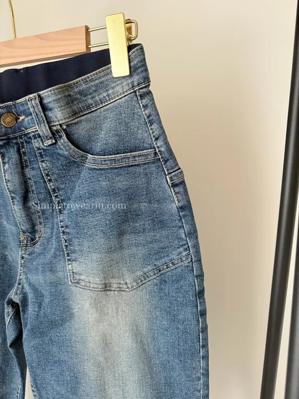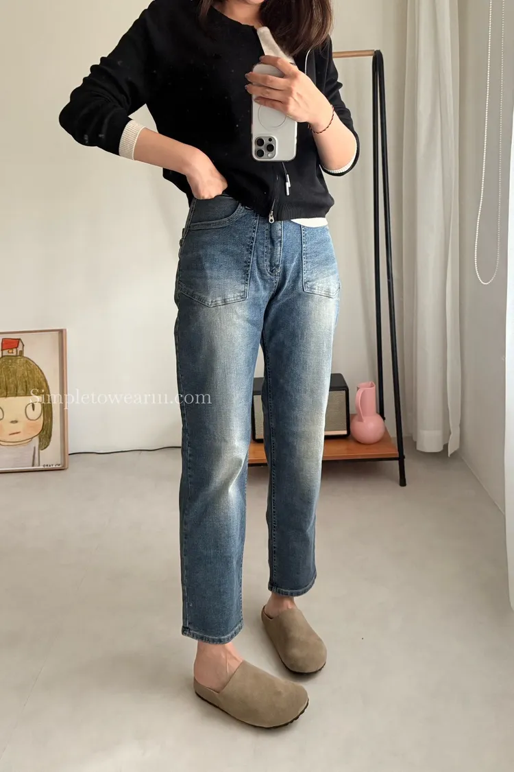 韓 太瘦了復古刷色口袋直筒褲 S~XXL