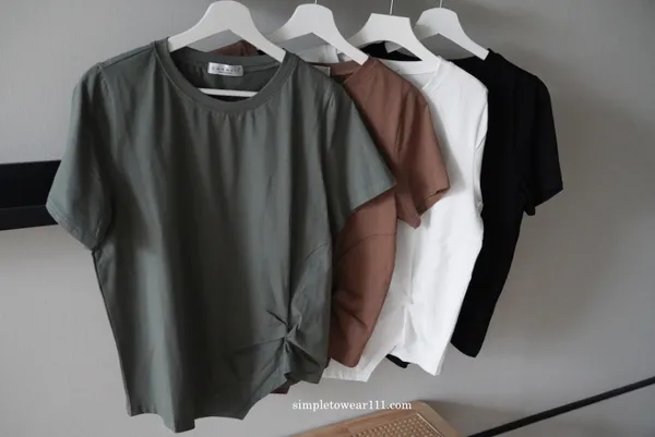 (現貨) 韓 綁結基本款素TEE (白/咖/綠/黑)