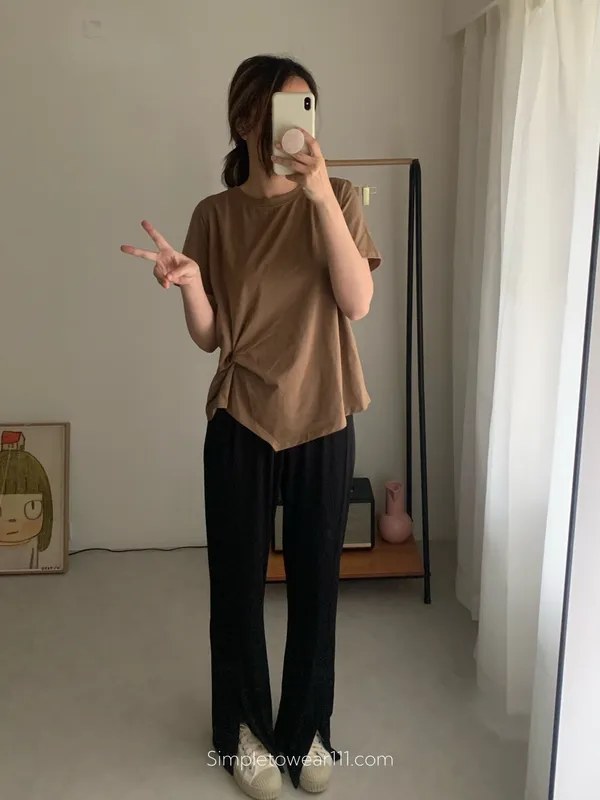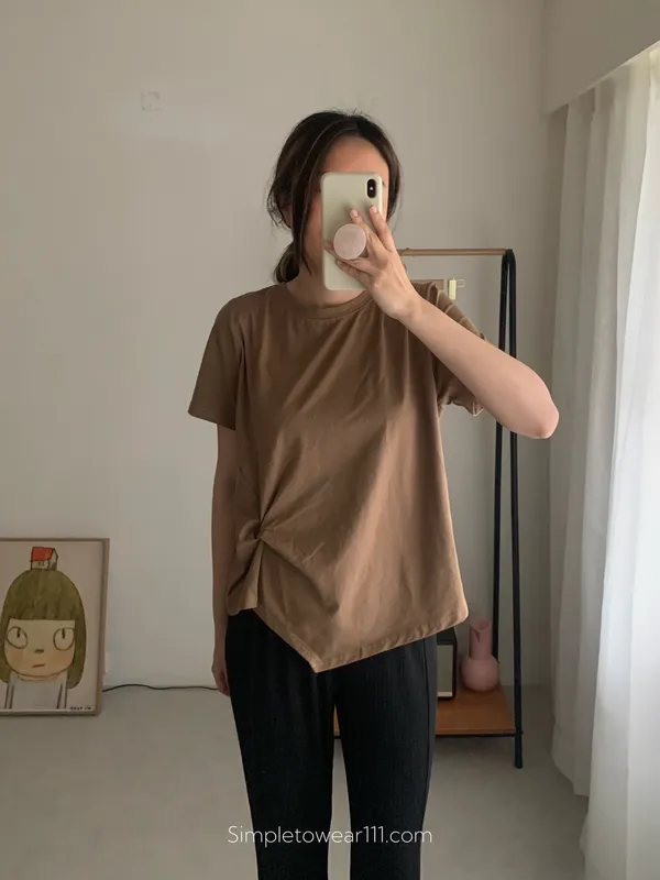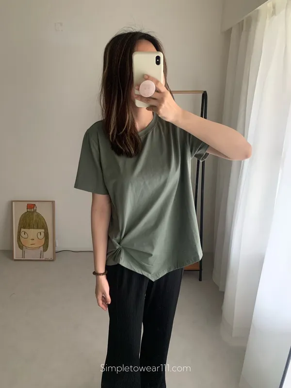 打結寬鬆素TEE 這款摸起來質料非常舒服