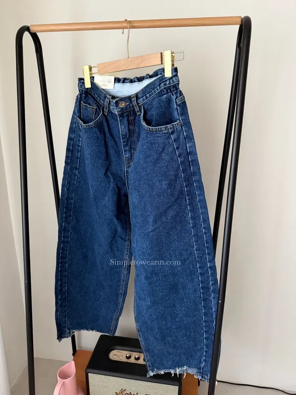韓 彈性腰圍蘿蔔九分寬褲 S~XL
