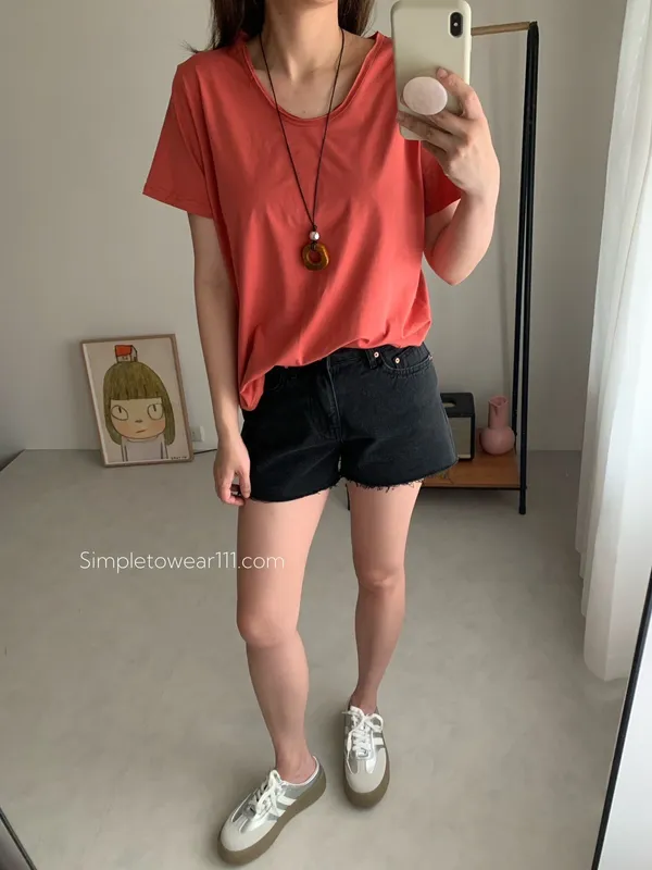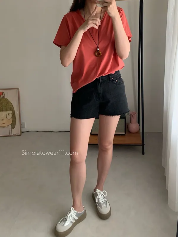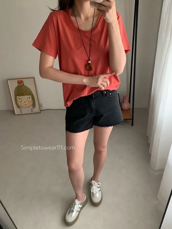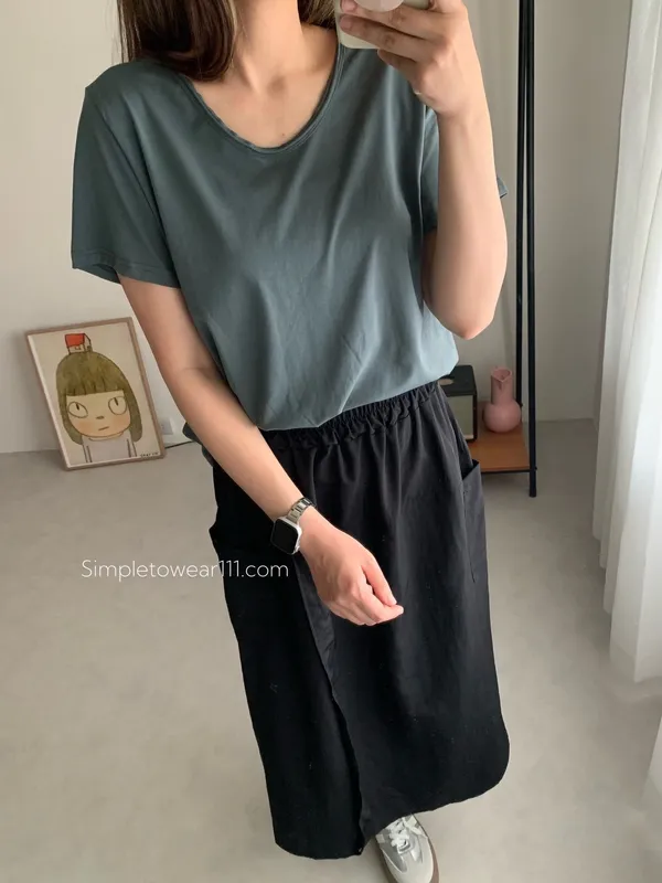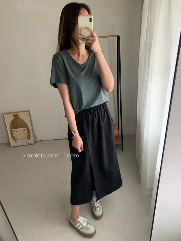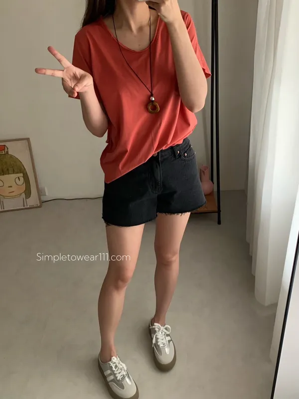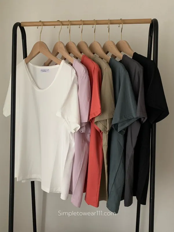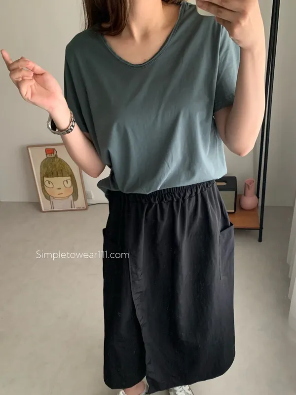 韓 經典V領純棉短袖tee (白/黑/松石綠/西瓜紅/軍綠/淡紫/深灰)