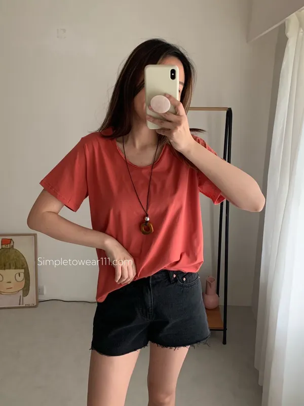V領設計的素T+莫戴爾棉的材質 (穿上去超舒服的)