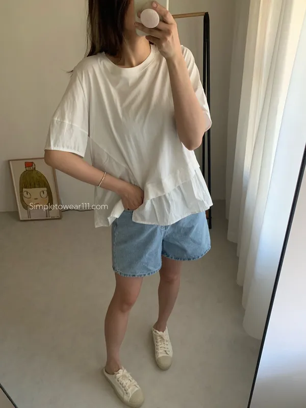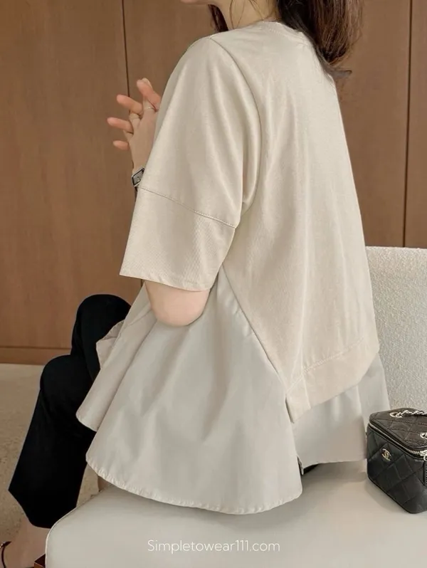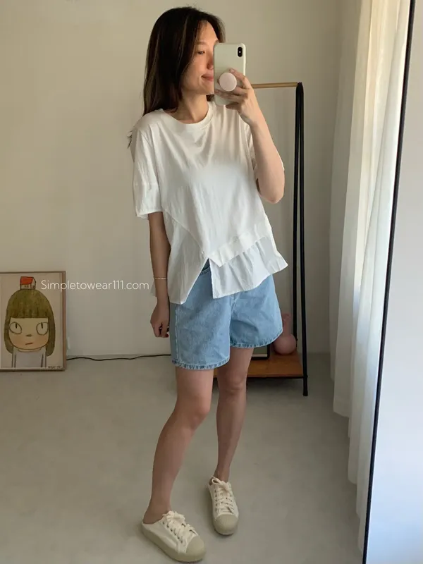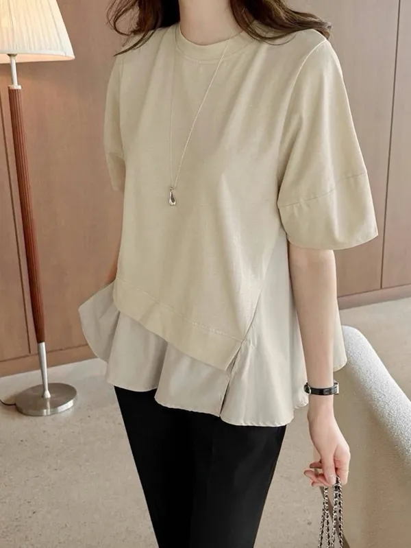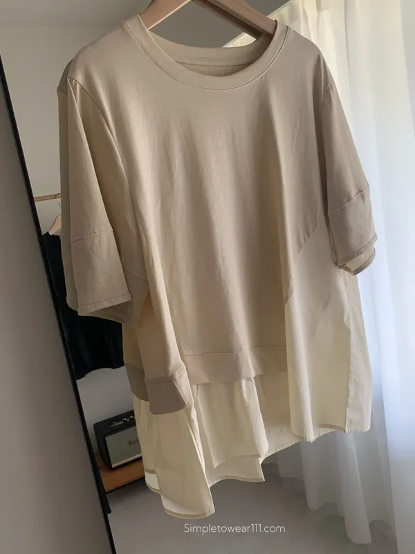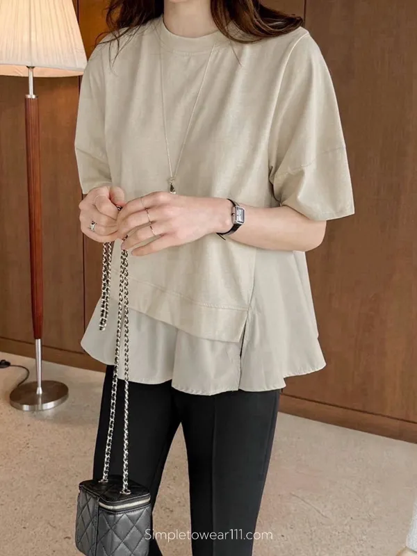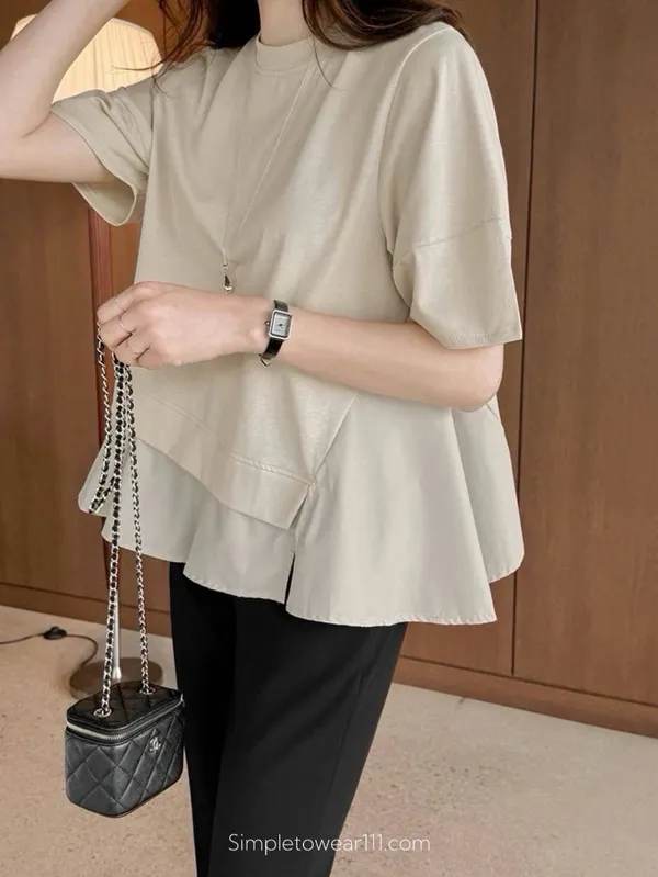 韓 下擺不規則拼接小開岔上衣 (白/杏/黑)