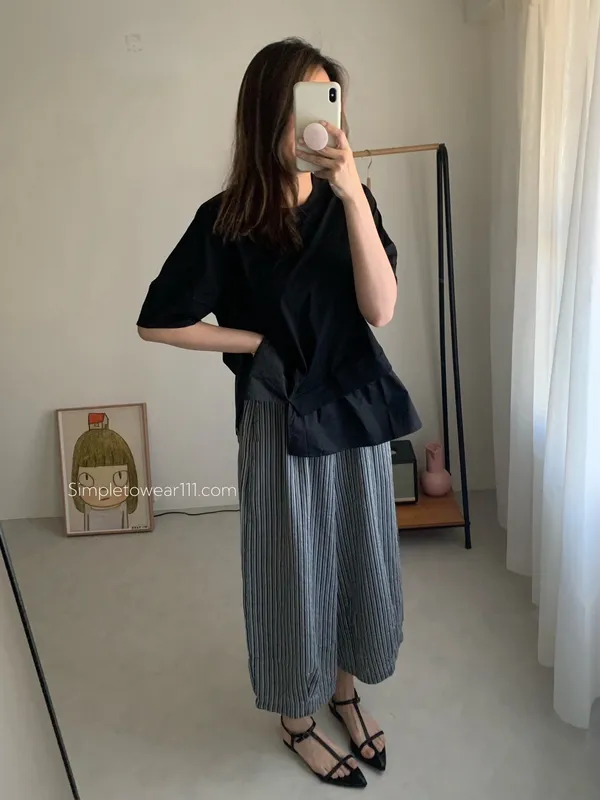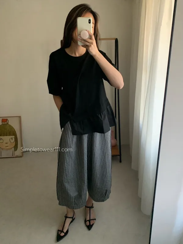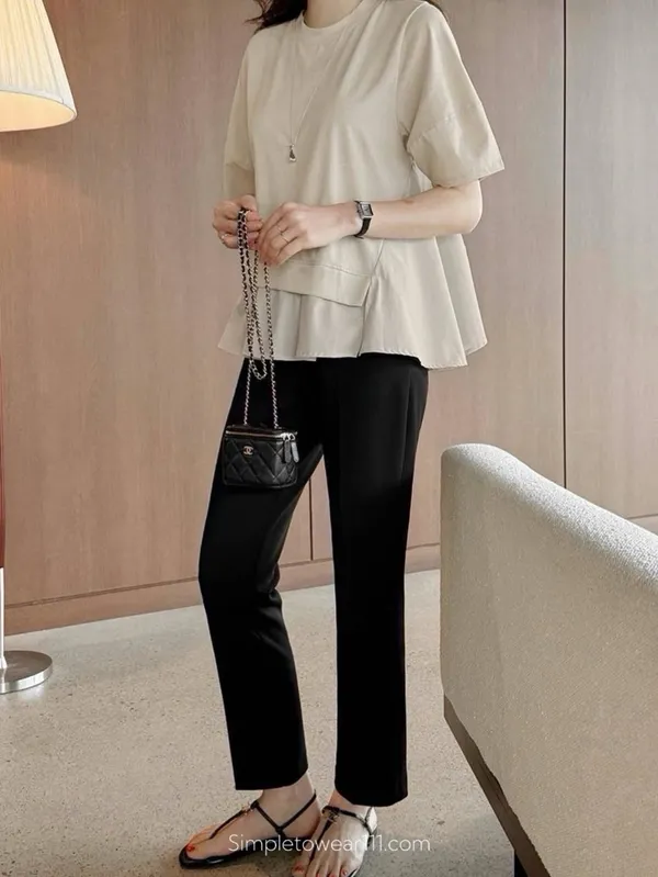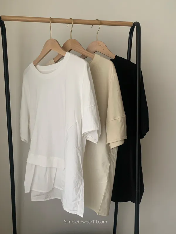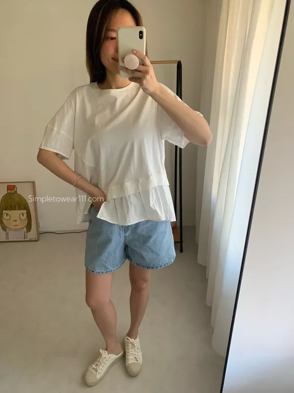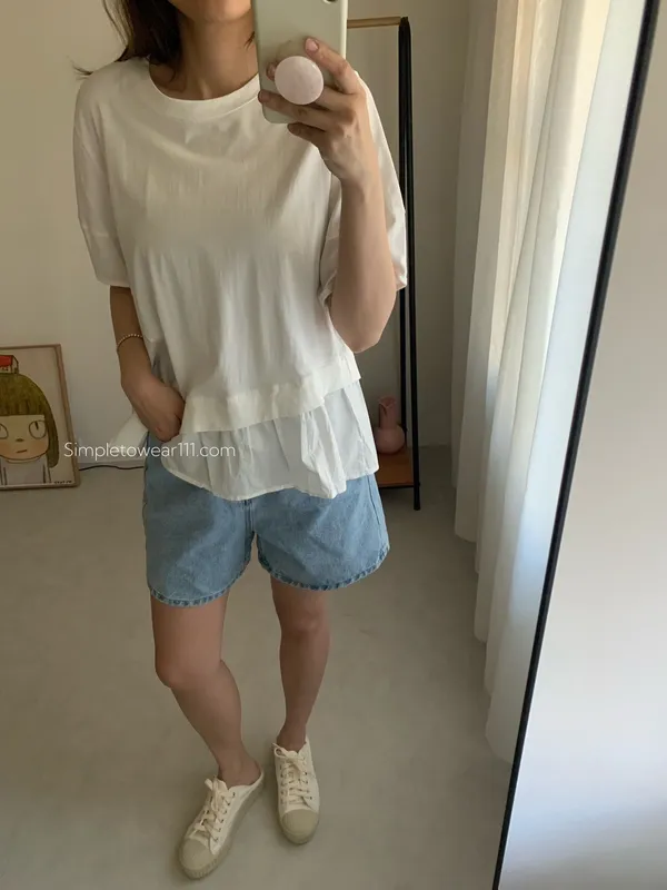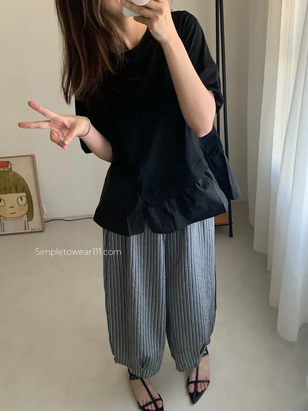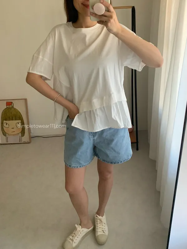 韓 下擺不規則拼接小開岔上衣 (白/杏/黑)