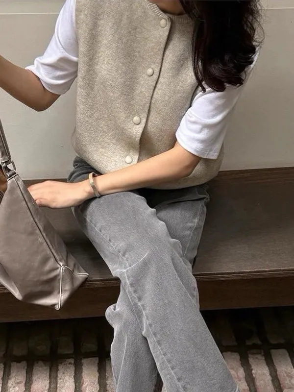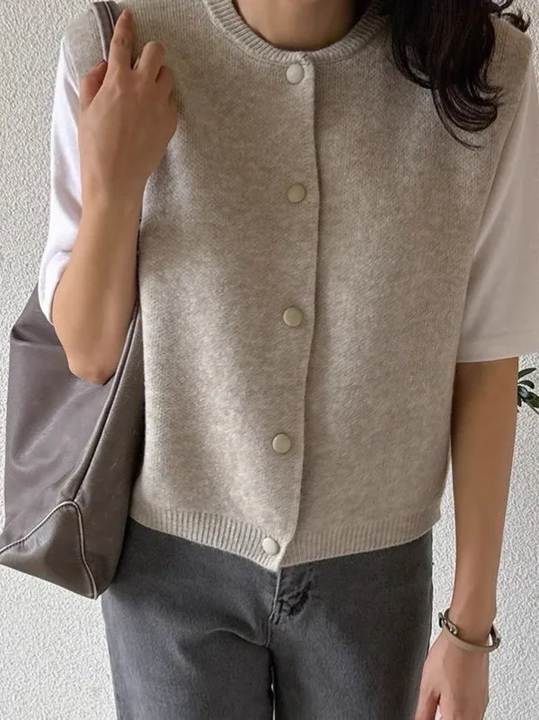 韓國同款 百搭必備針織背心 (杏/卡其/灰/黑)