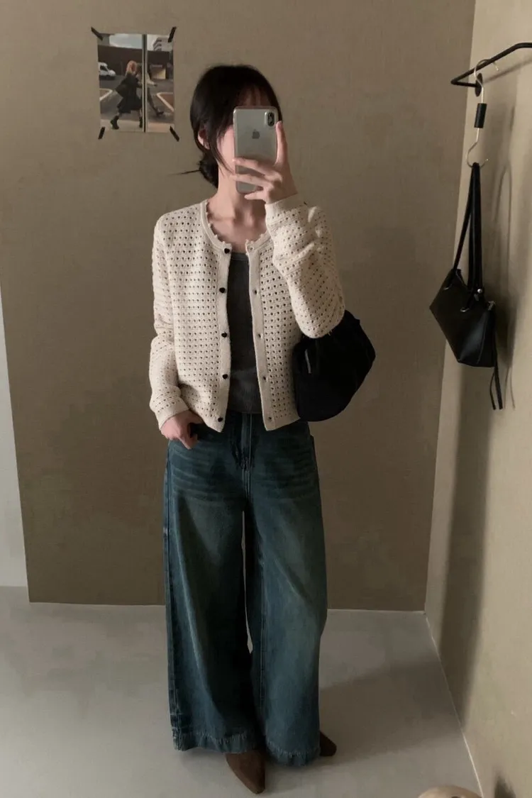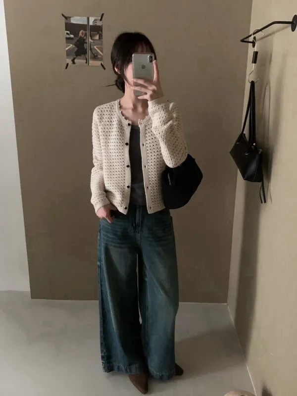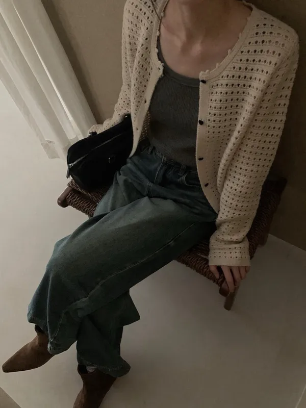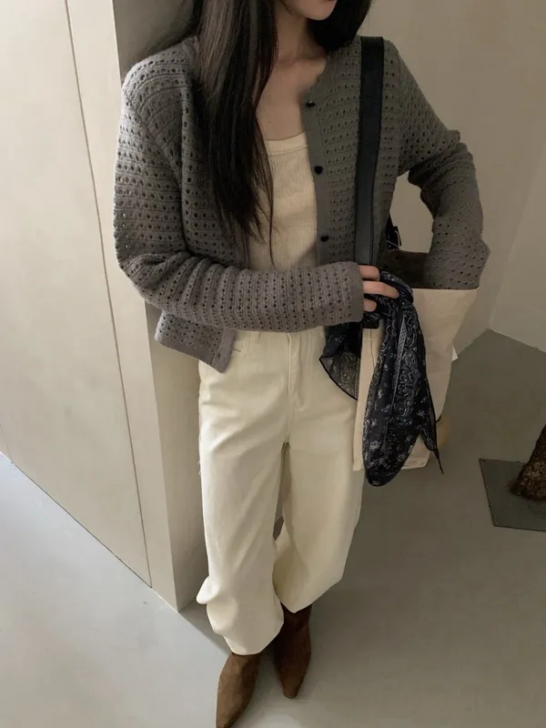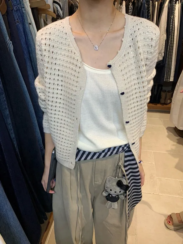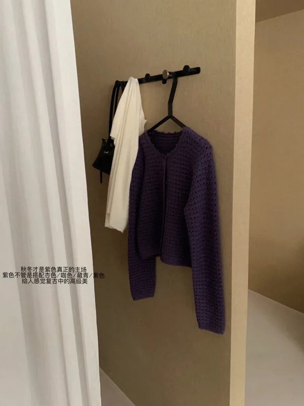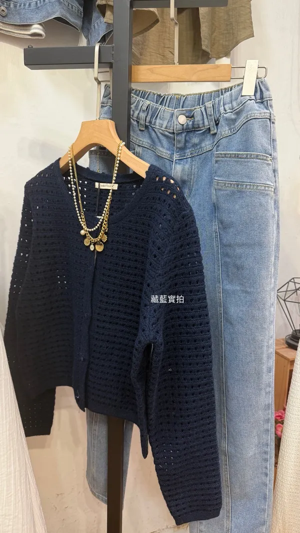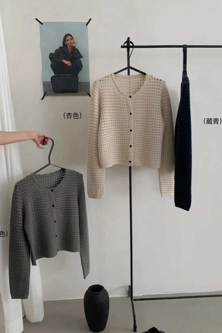 詢問度爆表~ 簍空洞洞針織外套 (藏藍/杏/天藍/紫色/灰色)