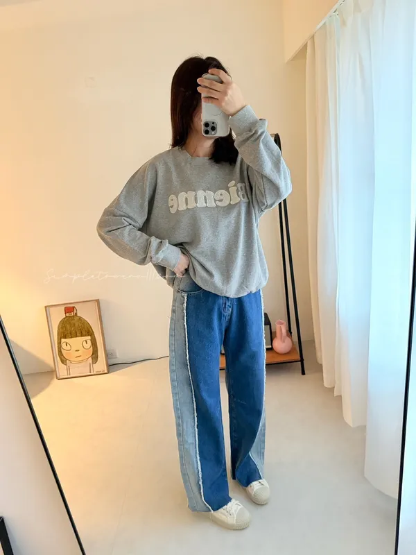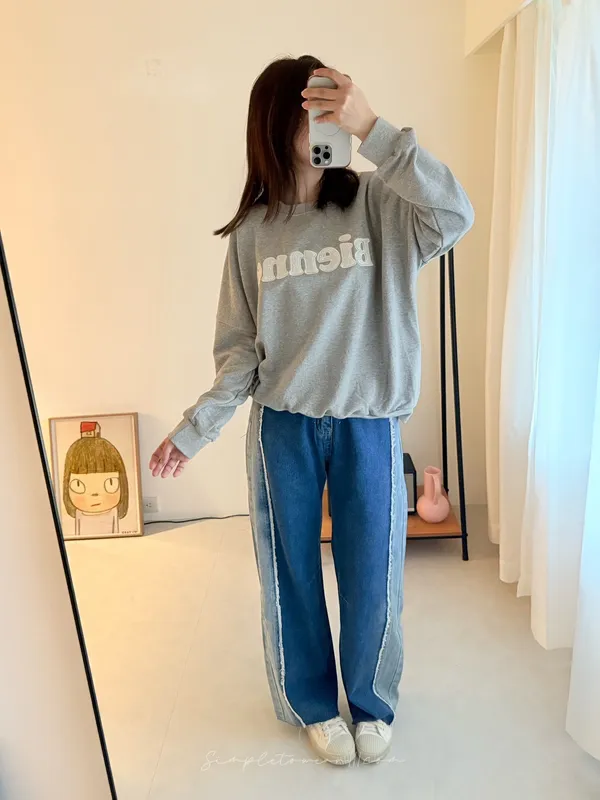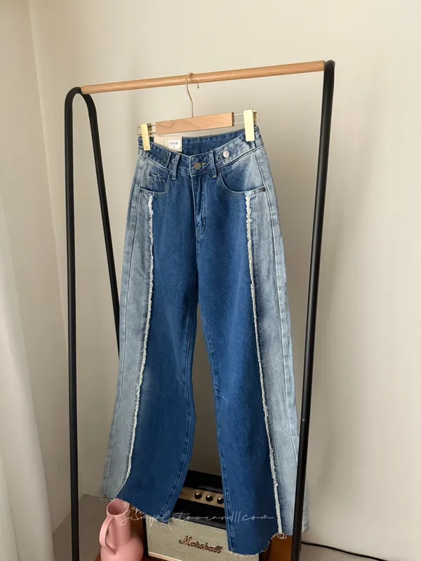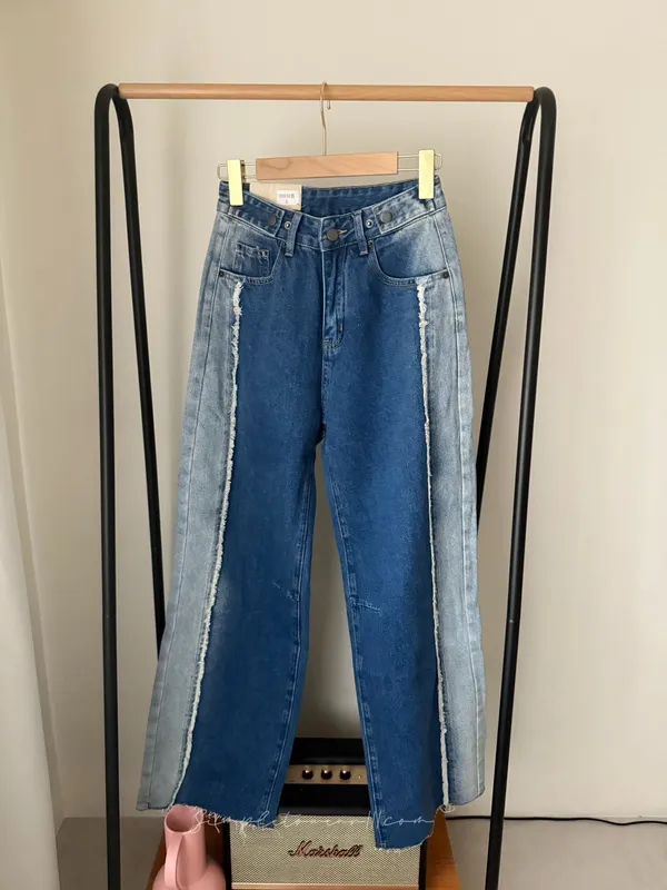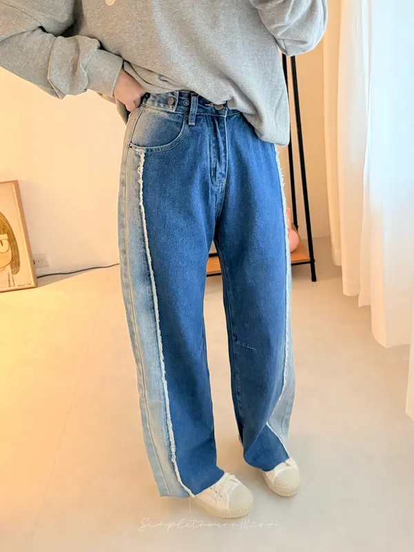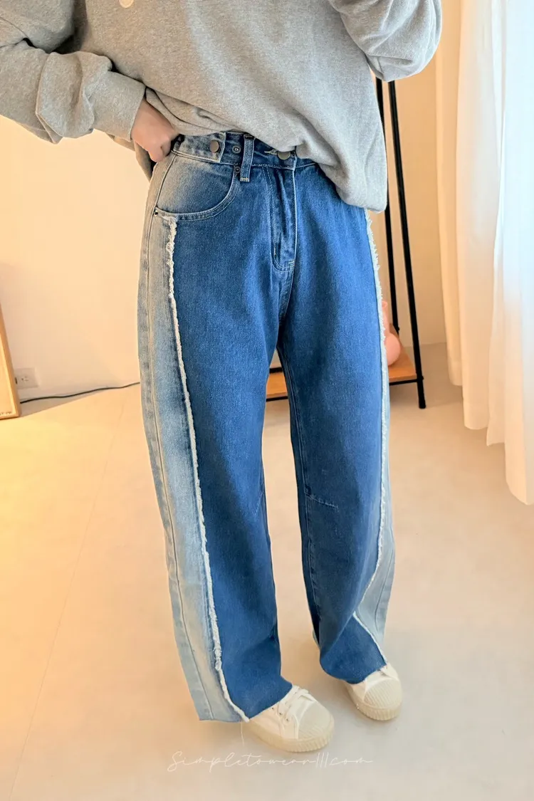 N19 韓 日系感撞色抽鬚寬褲 S~XL