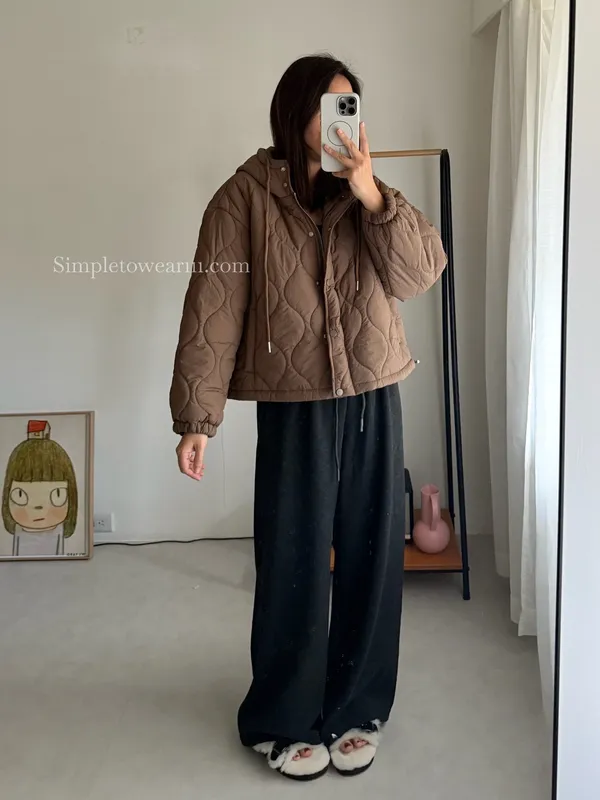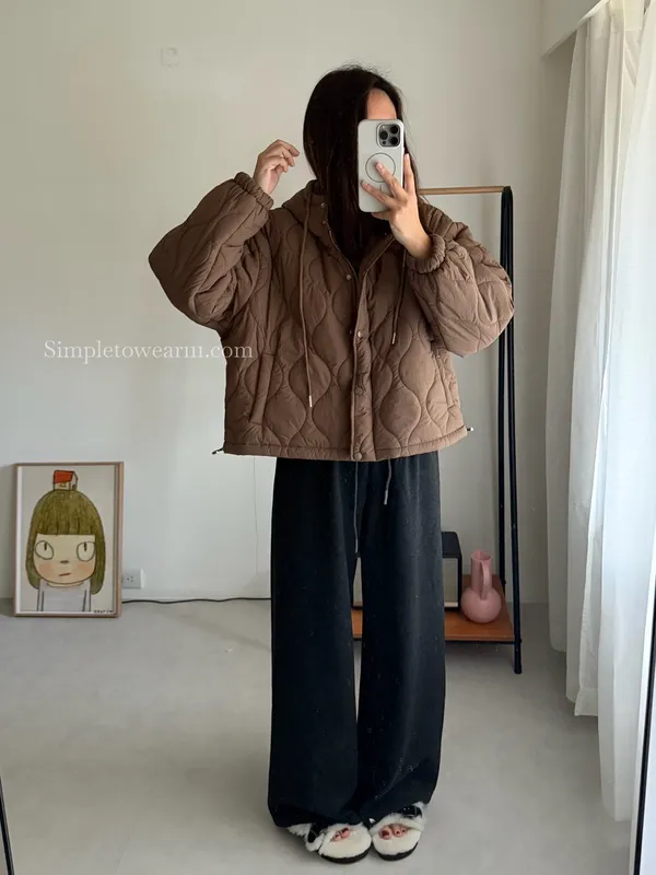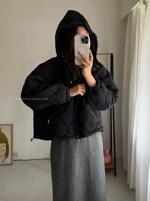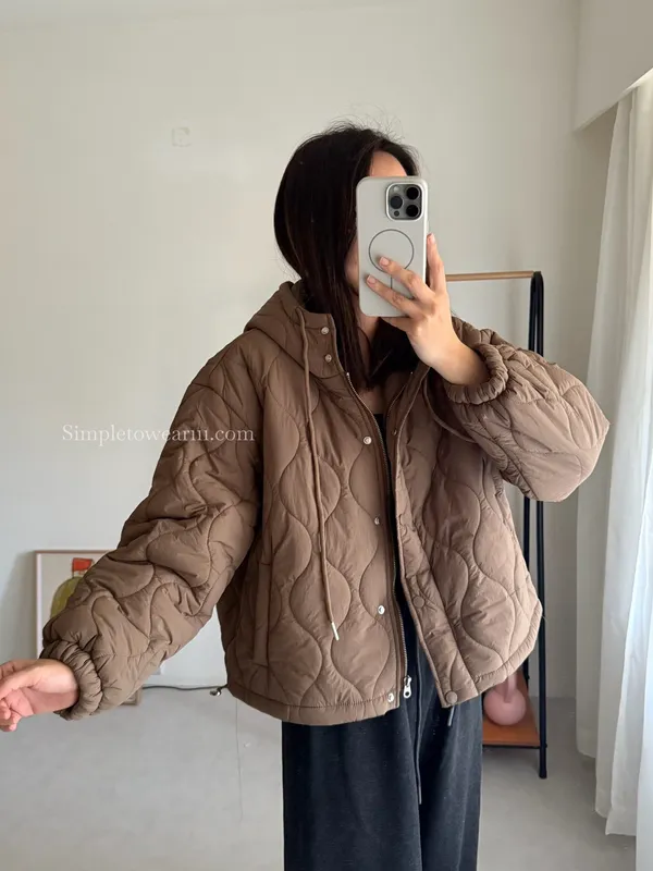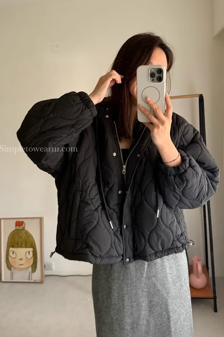 砰砰感鋪棉短版外套 (咖/黑/杏)