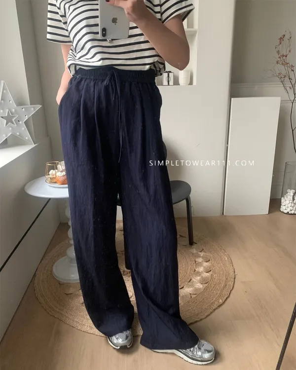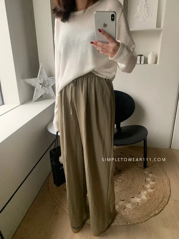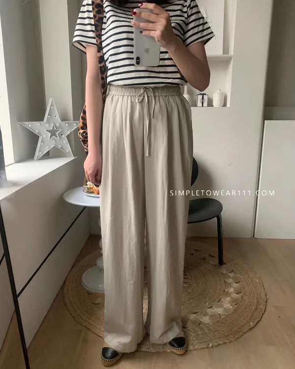 高個專屬 日系綁帶高腰落地棉麻寬褲 (杏/卡/淺藍/軍綠/深藍/黑)