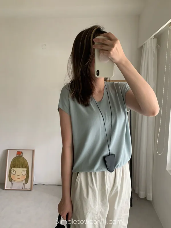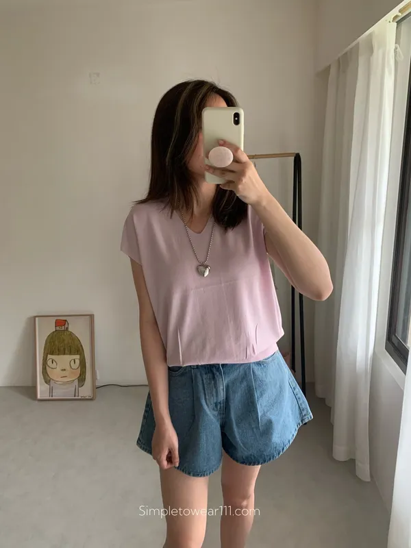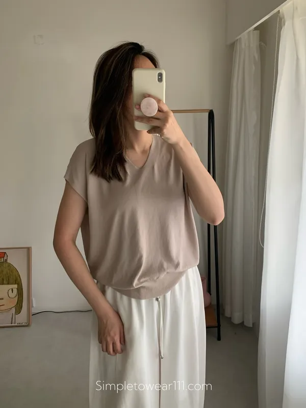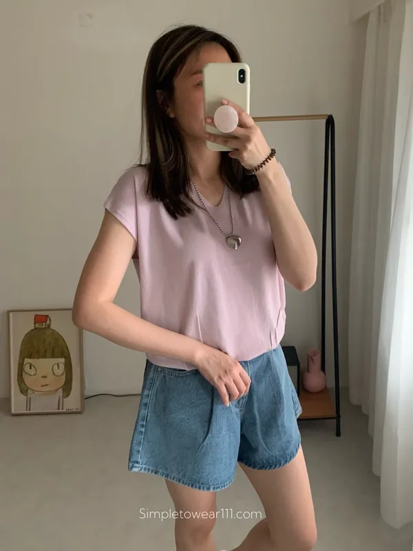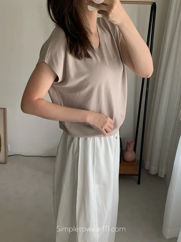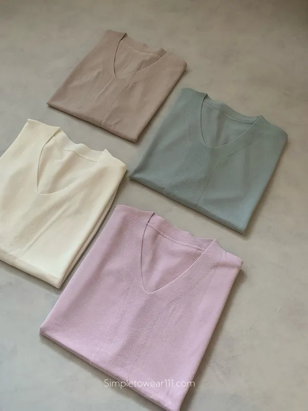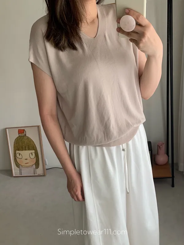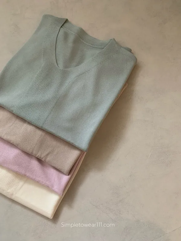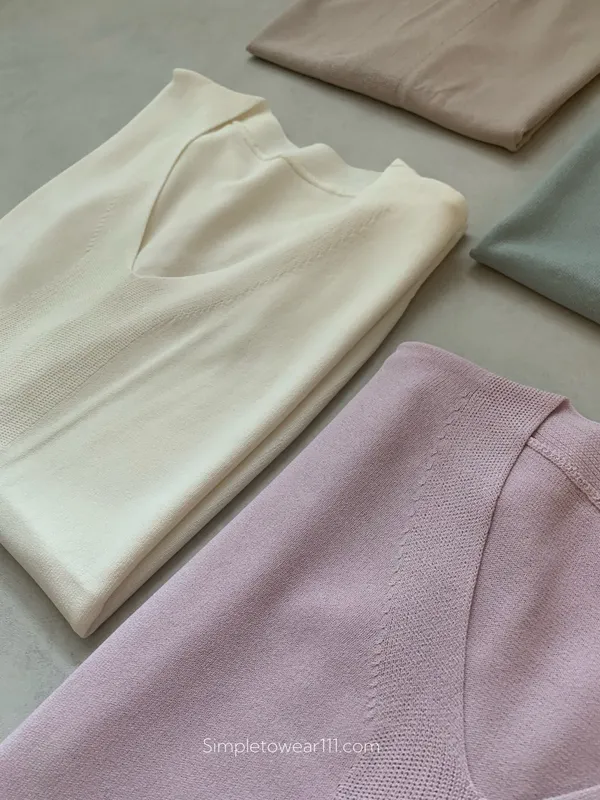 涼感薄料短袖針織上衣 (米白/卡其/粉紫/湖綠)