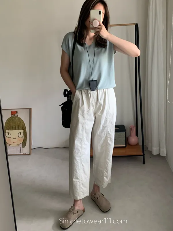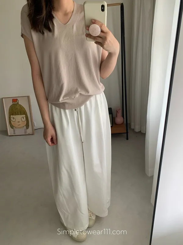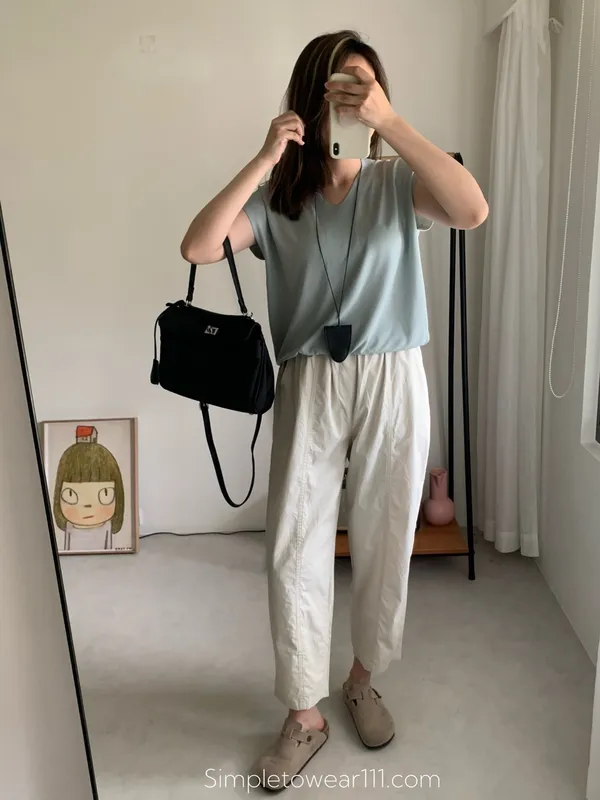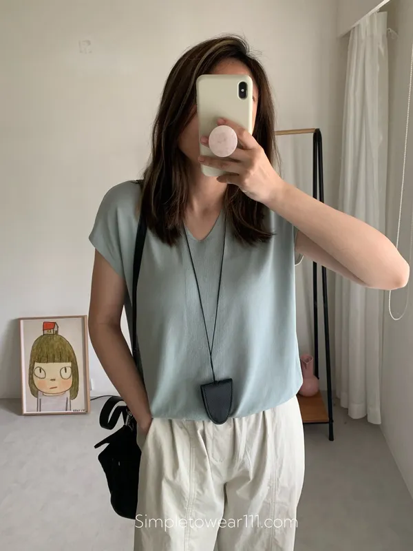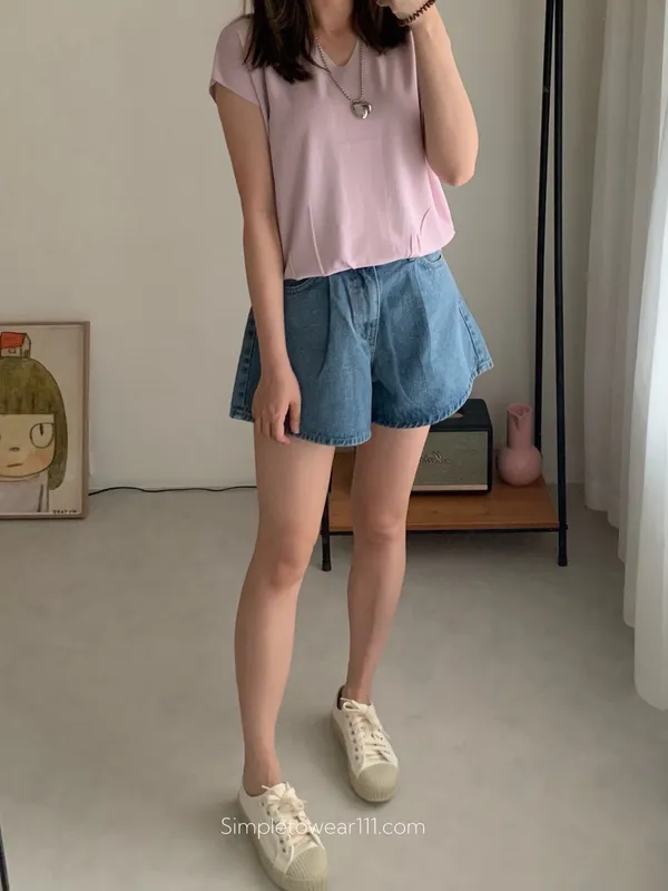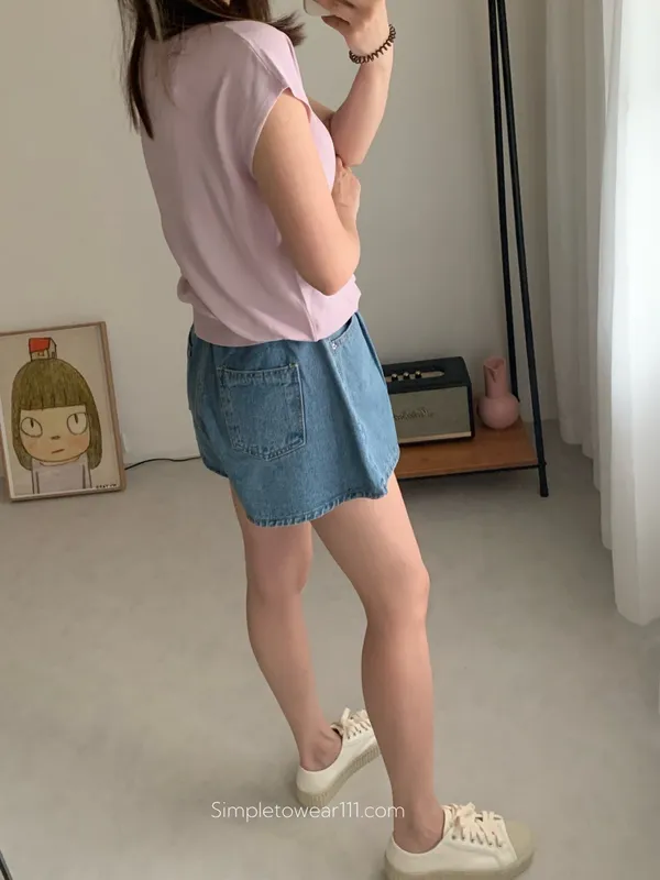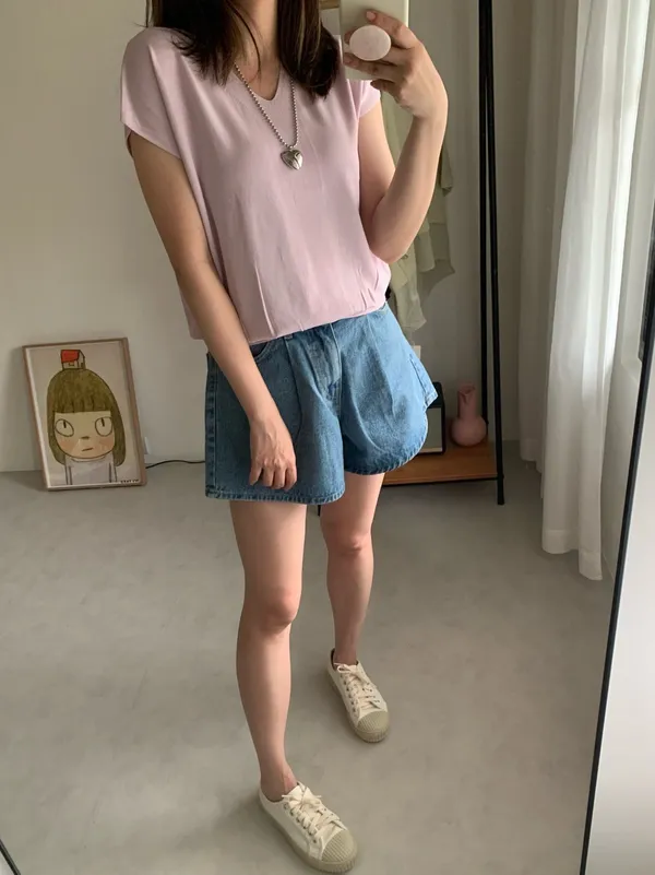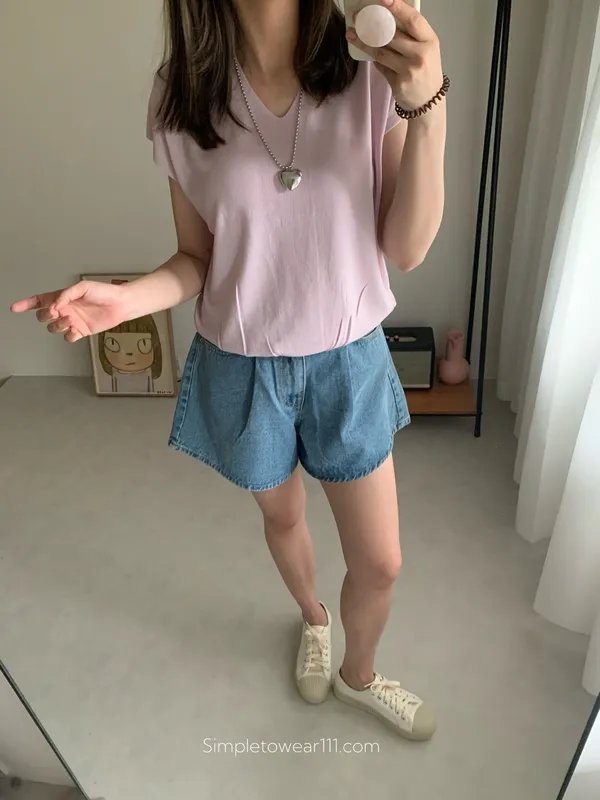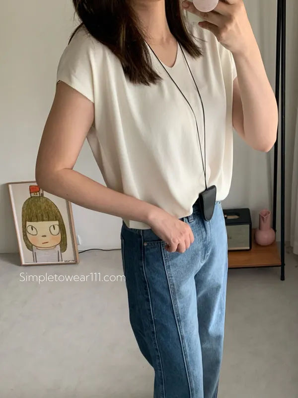 涼感薄料短袖針織上衣 (米白/卡其/粉紫/湖綠)