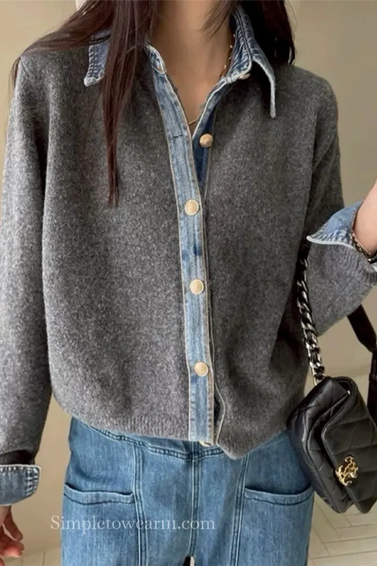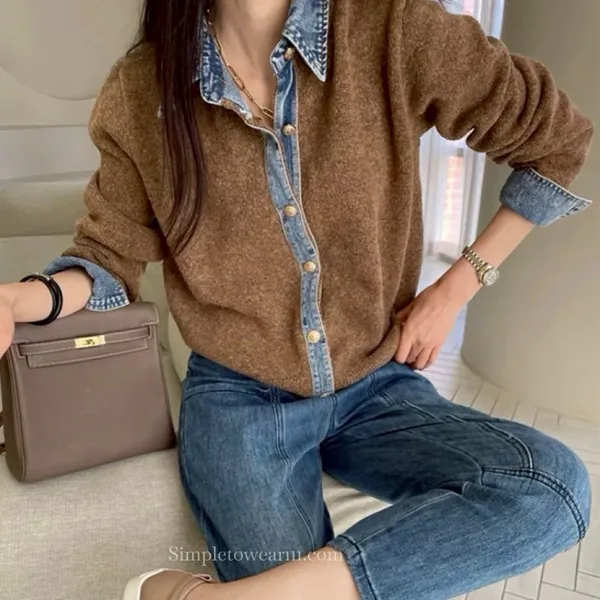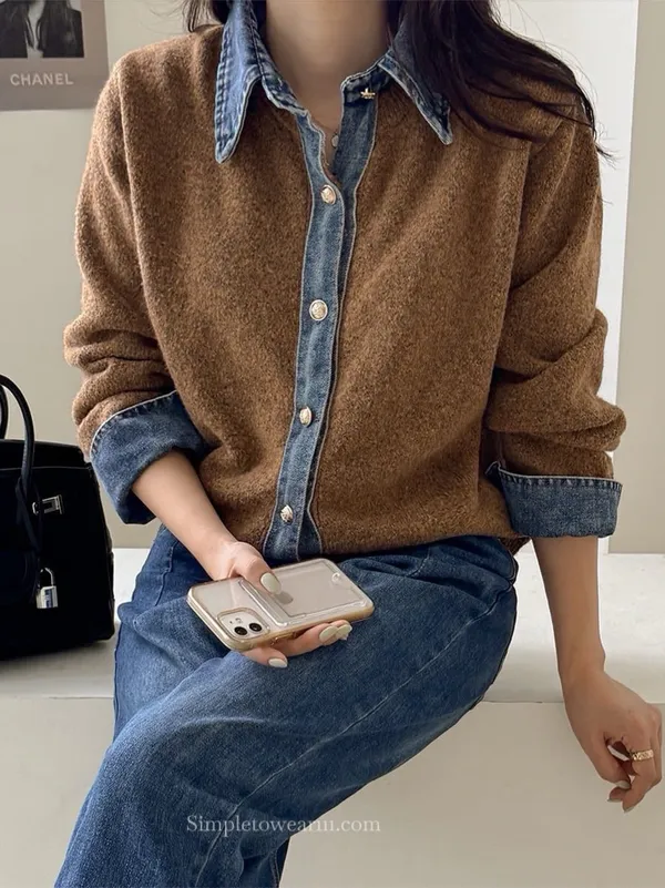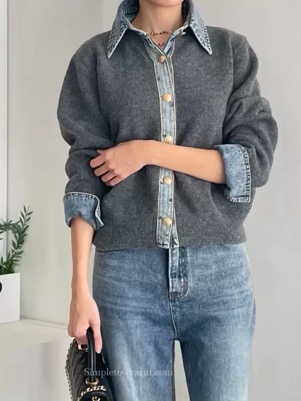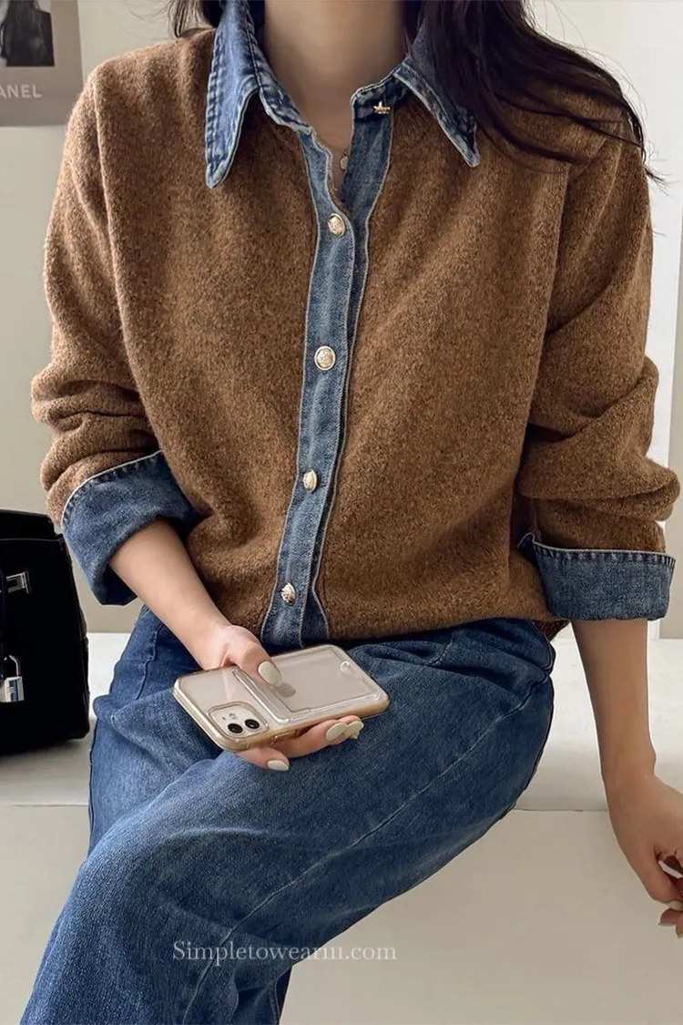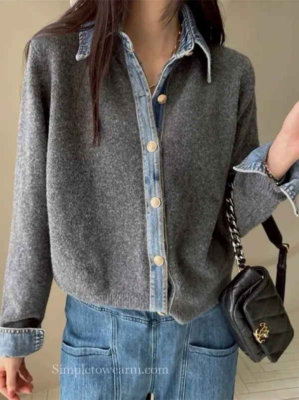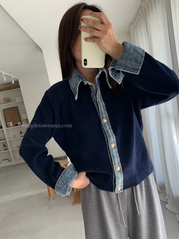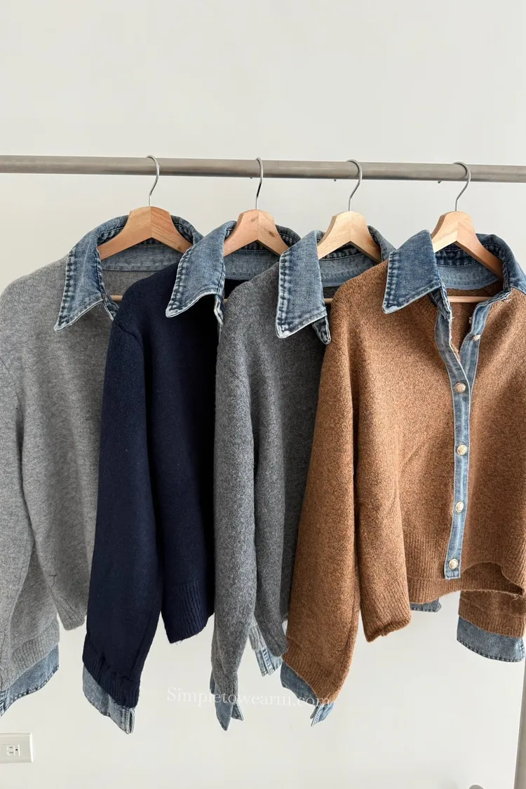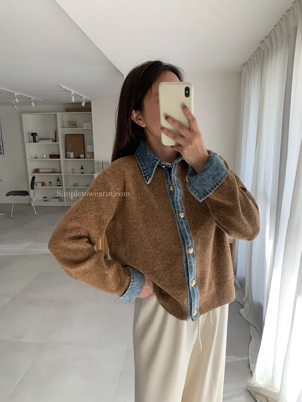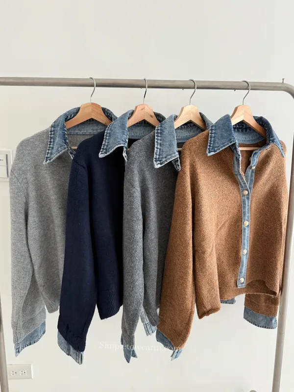 韓國官網同款 牛仔拼接針織衫 (深灰/深藍/淺灰/駝色)
