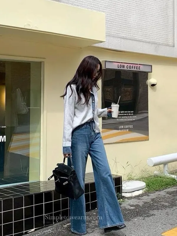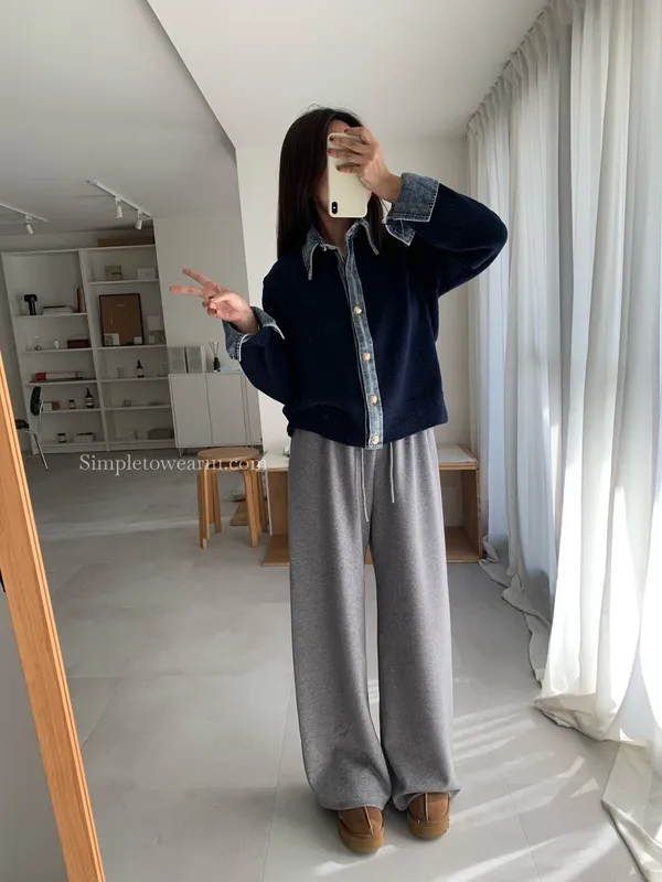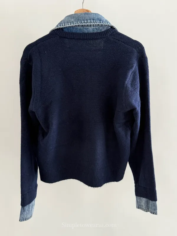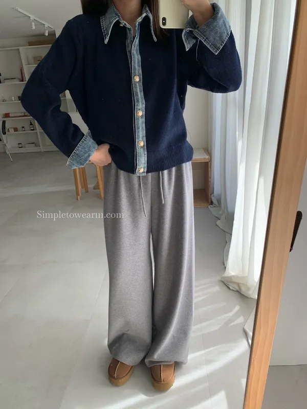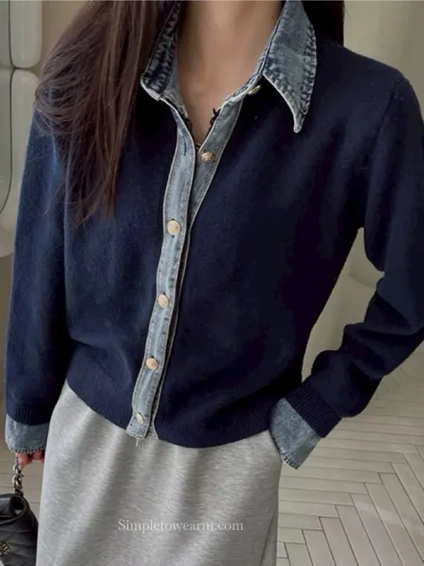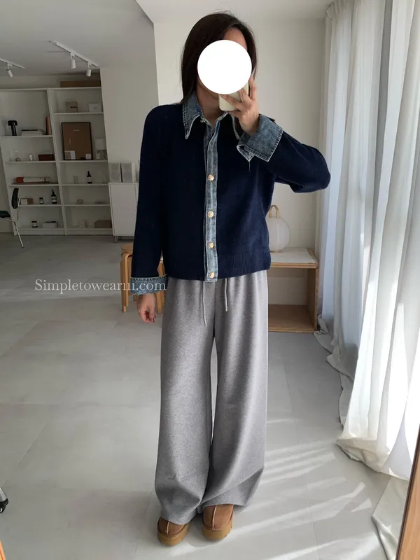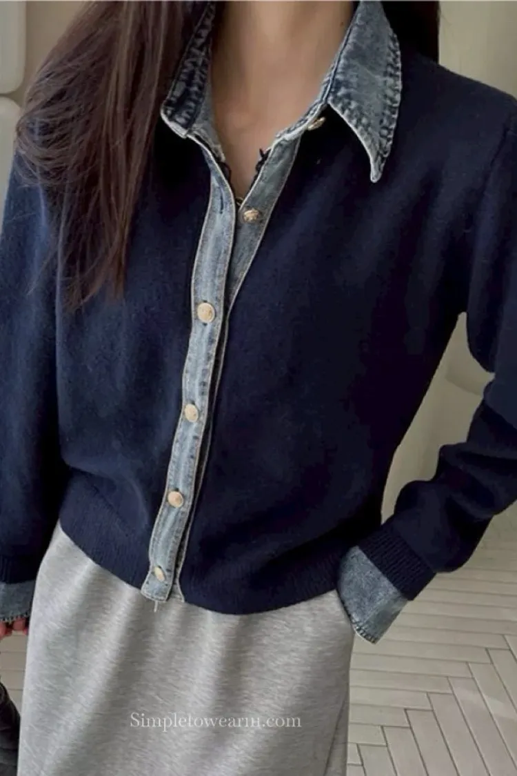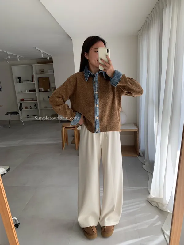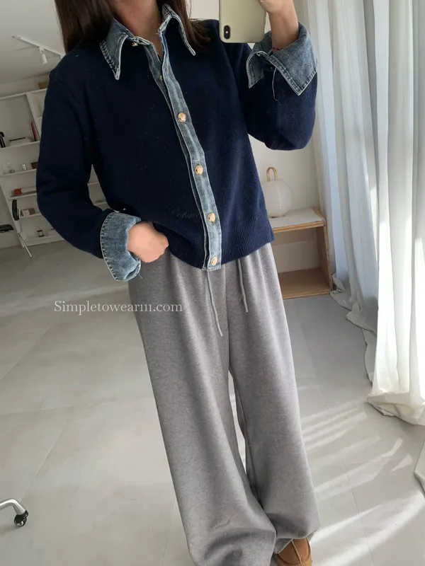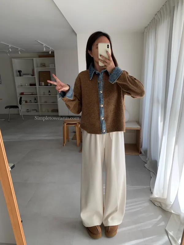 韓國官網同款 牛仔拼接針織衫 (深灰/深藍/淺灰/駝色)