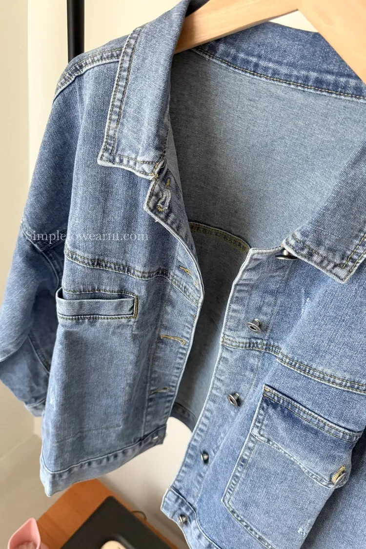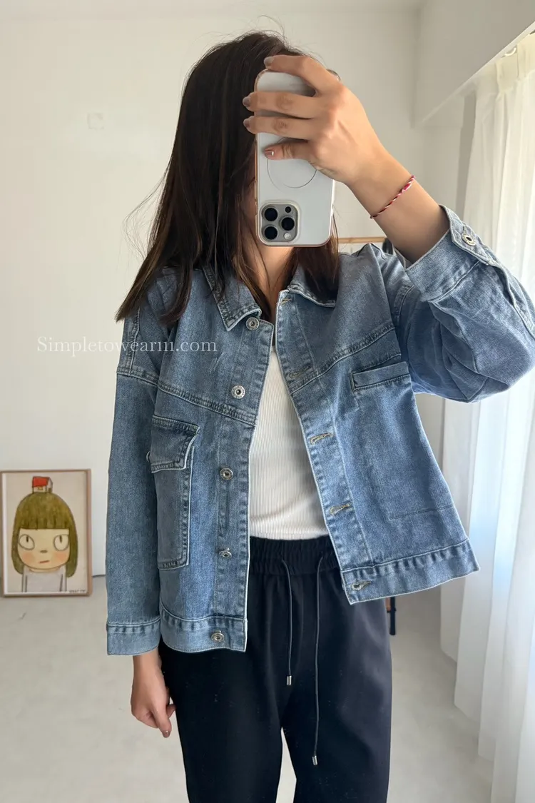經典牛仔外套每到秋天就是牛仔外套的季節這次進的這款 比較短版一點很適合搭配現在很流行的落地褲系列!! 當然配洋裝也是沒問題好看短版的很難找又是這種經典版型+刷色的還要在合理價位的這款通通達到^^淺藍刷色 特別好搭配推薦!