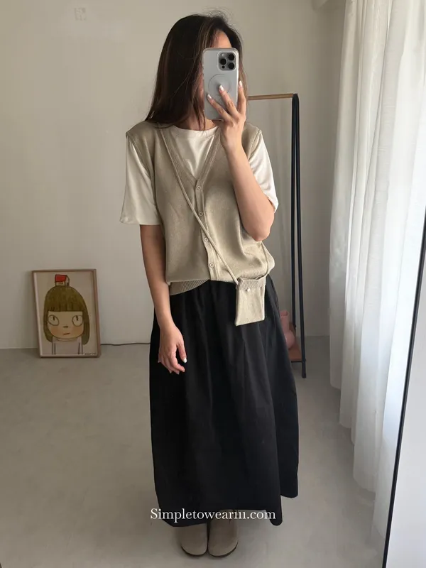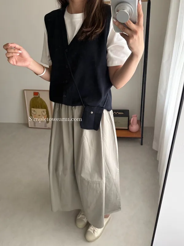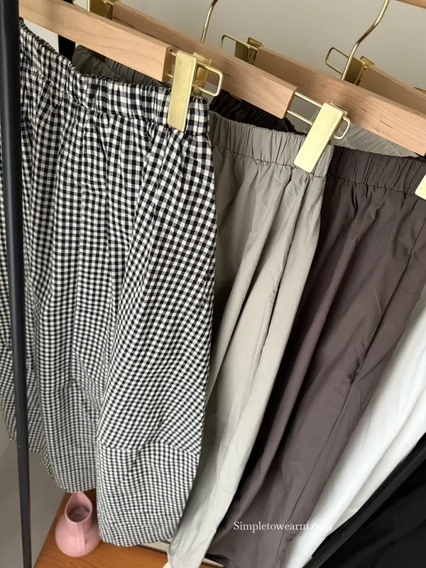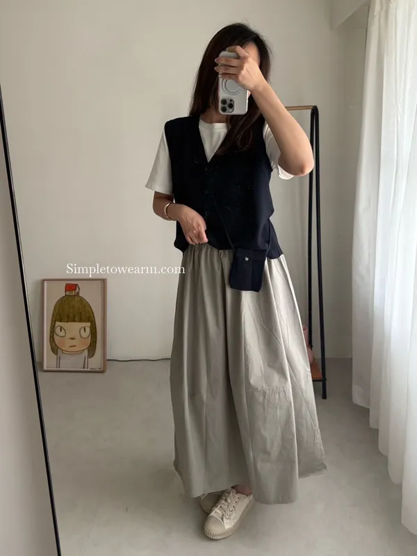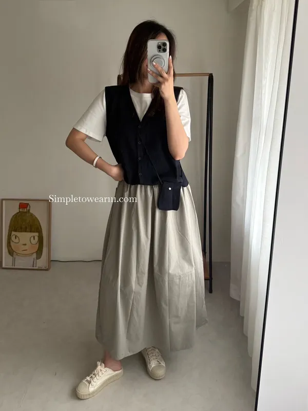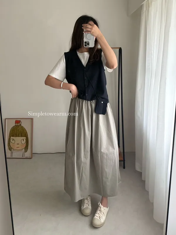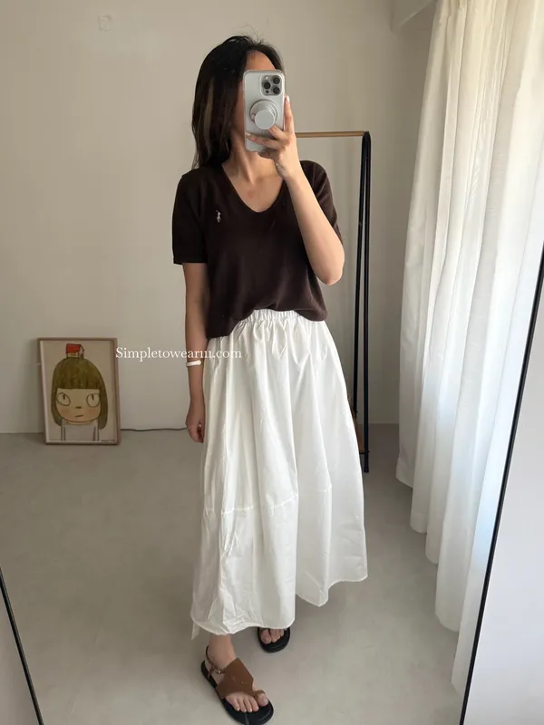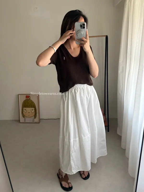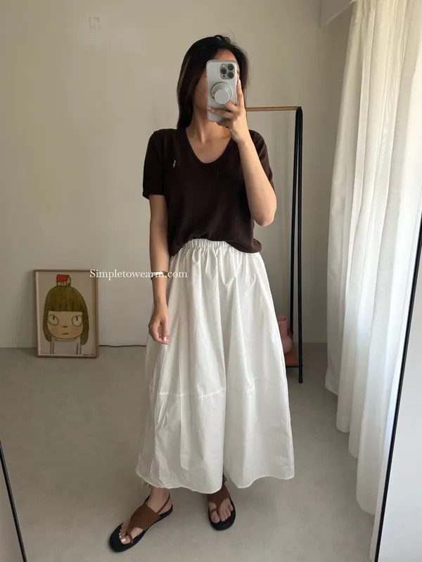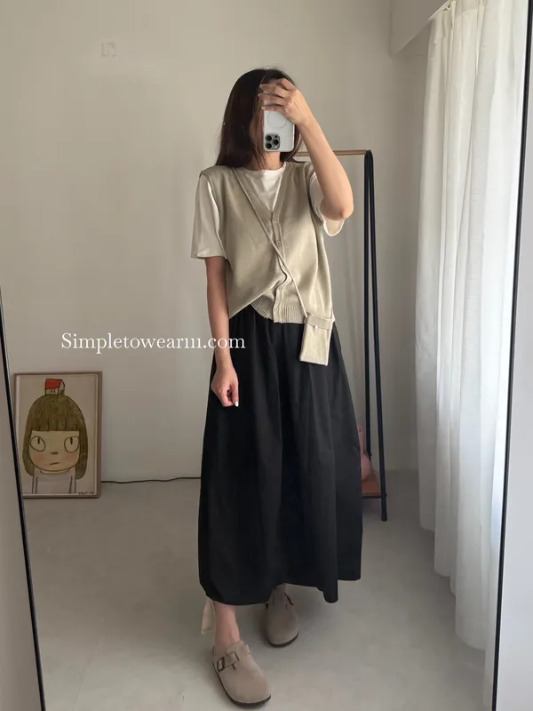 韓系簡約百搭顯瘦花苞裙 (咖灰/豆綠/黑格/白/黑)