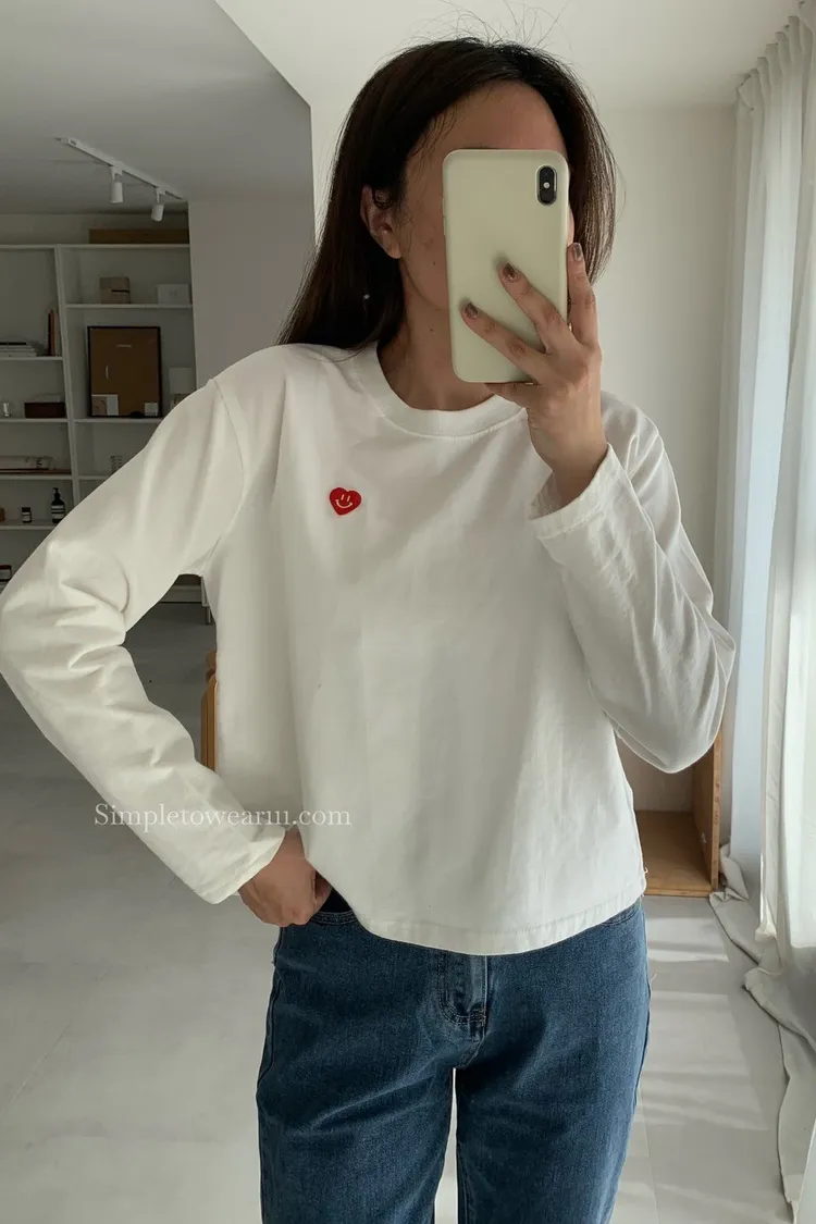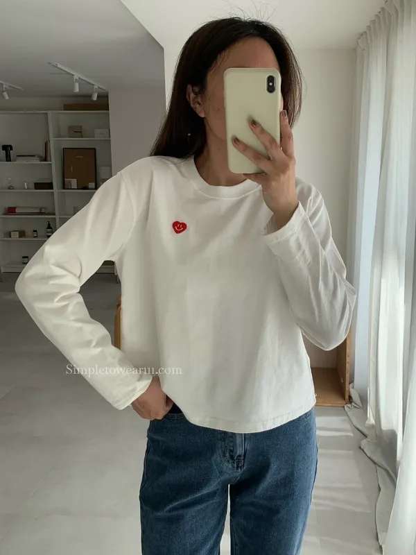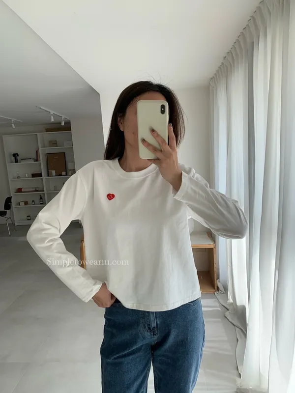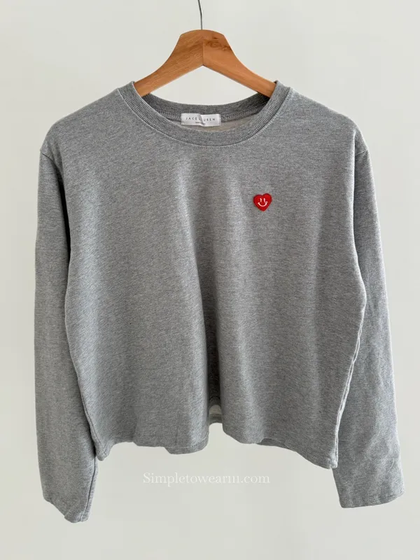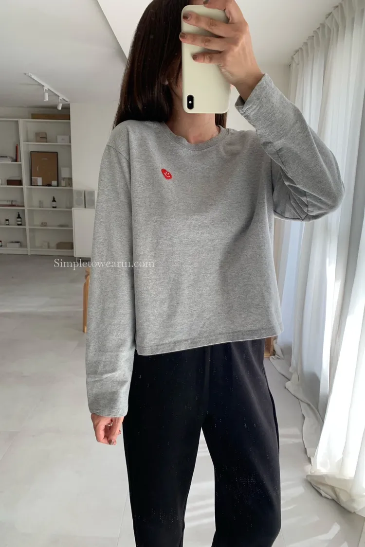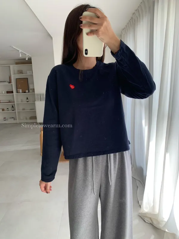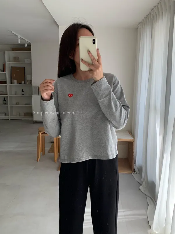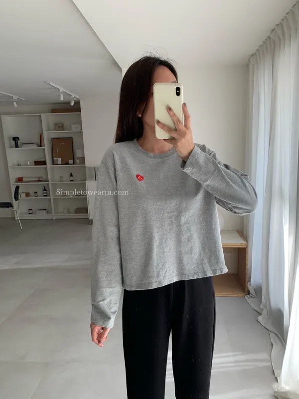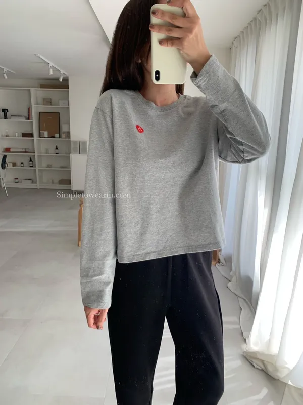 韓 小愛心短版長袖上衣 (白/灰/藍)