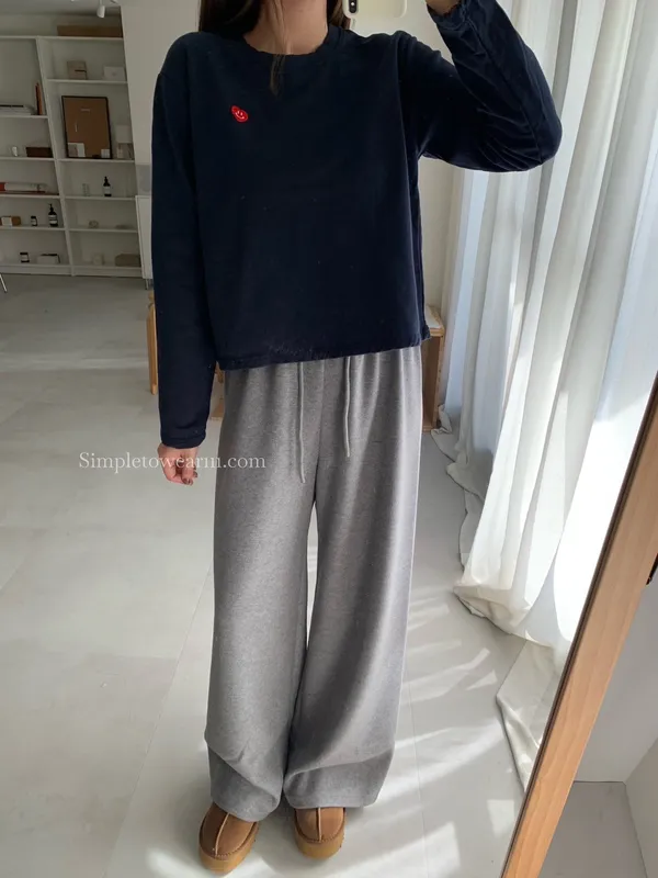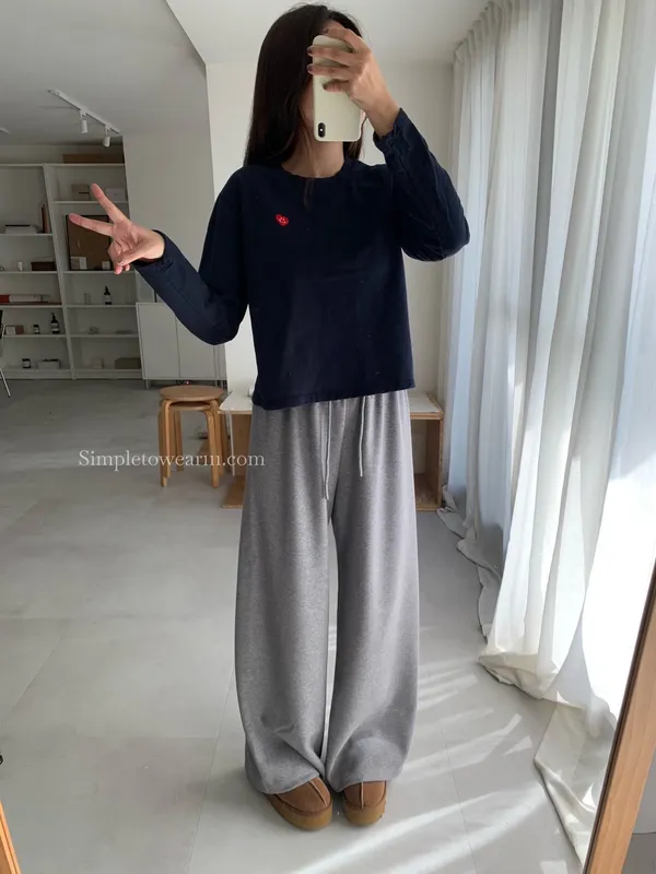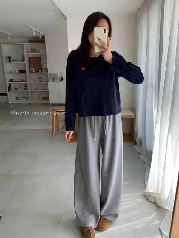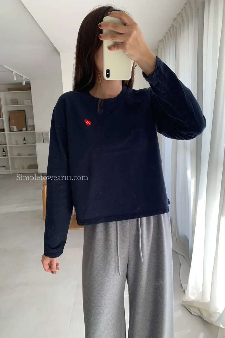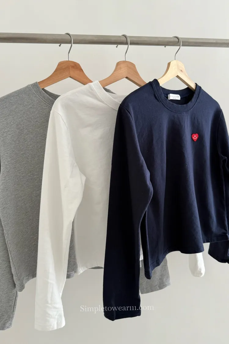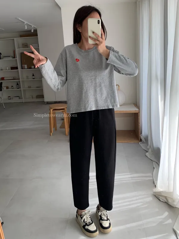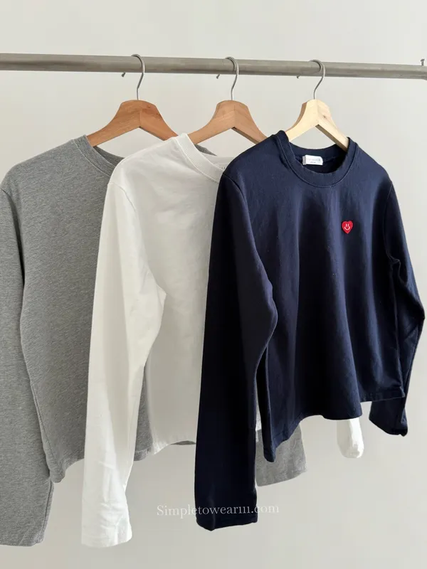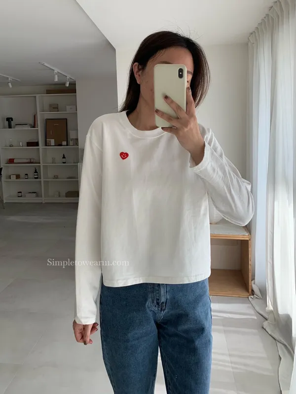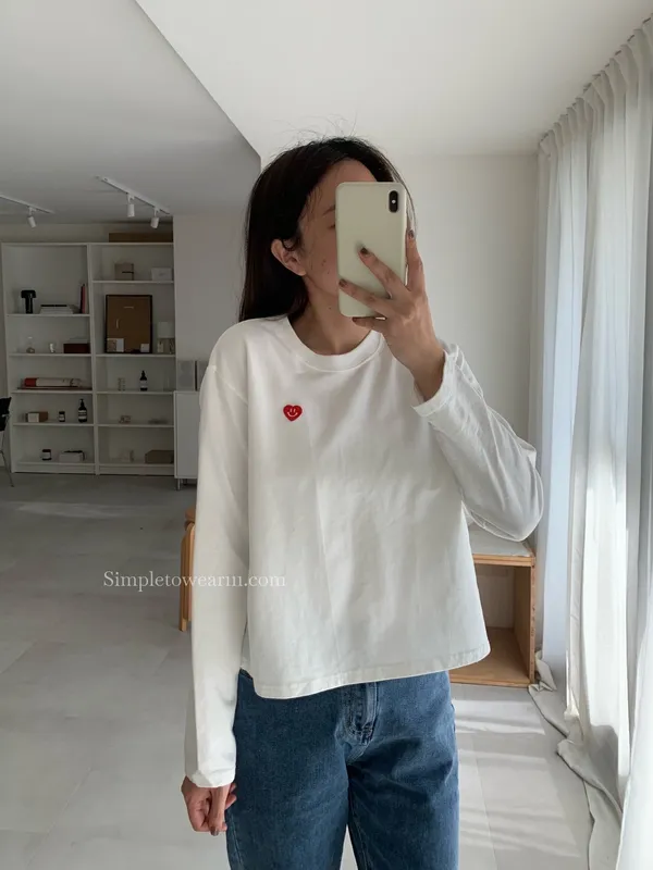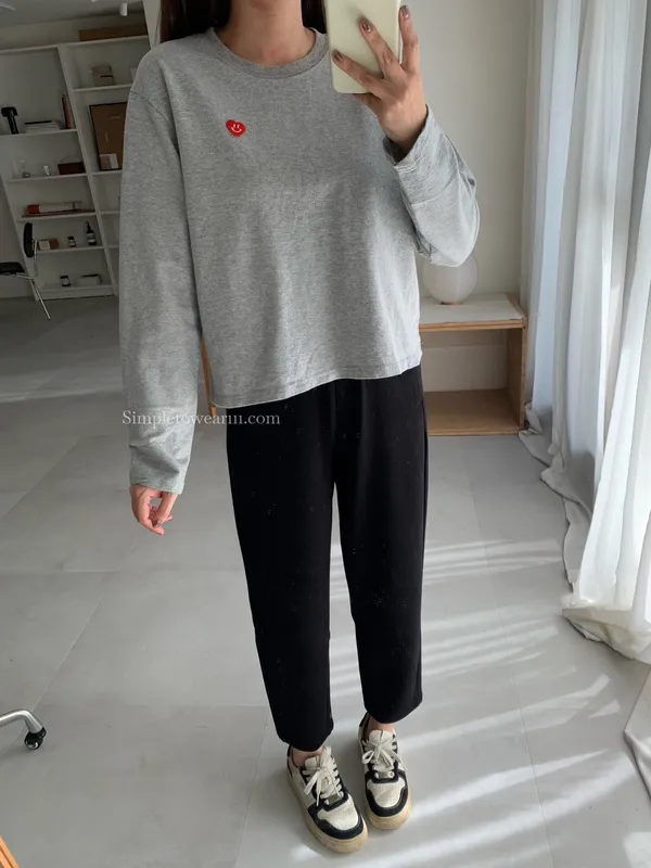 韓 小愛心短版長袖上衣 (白/灰/藍)