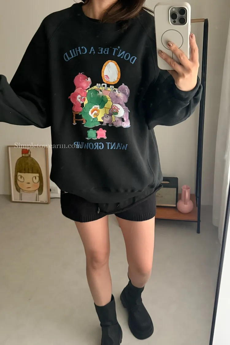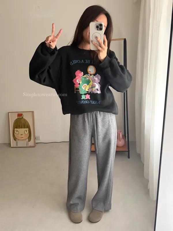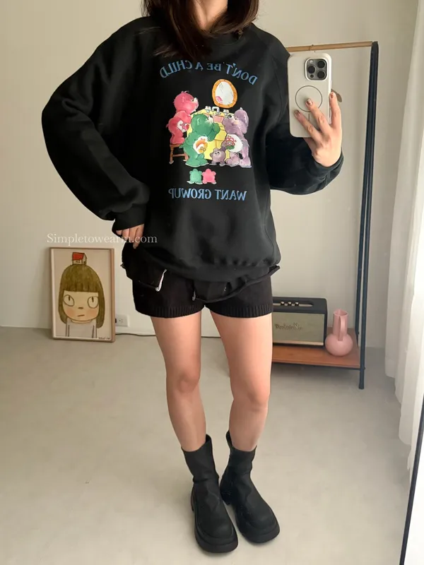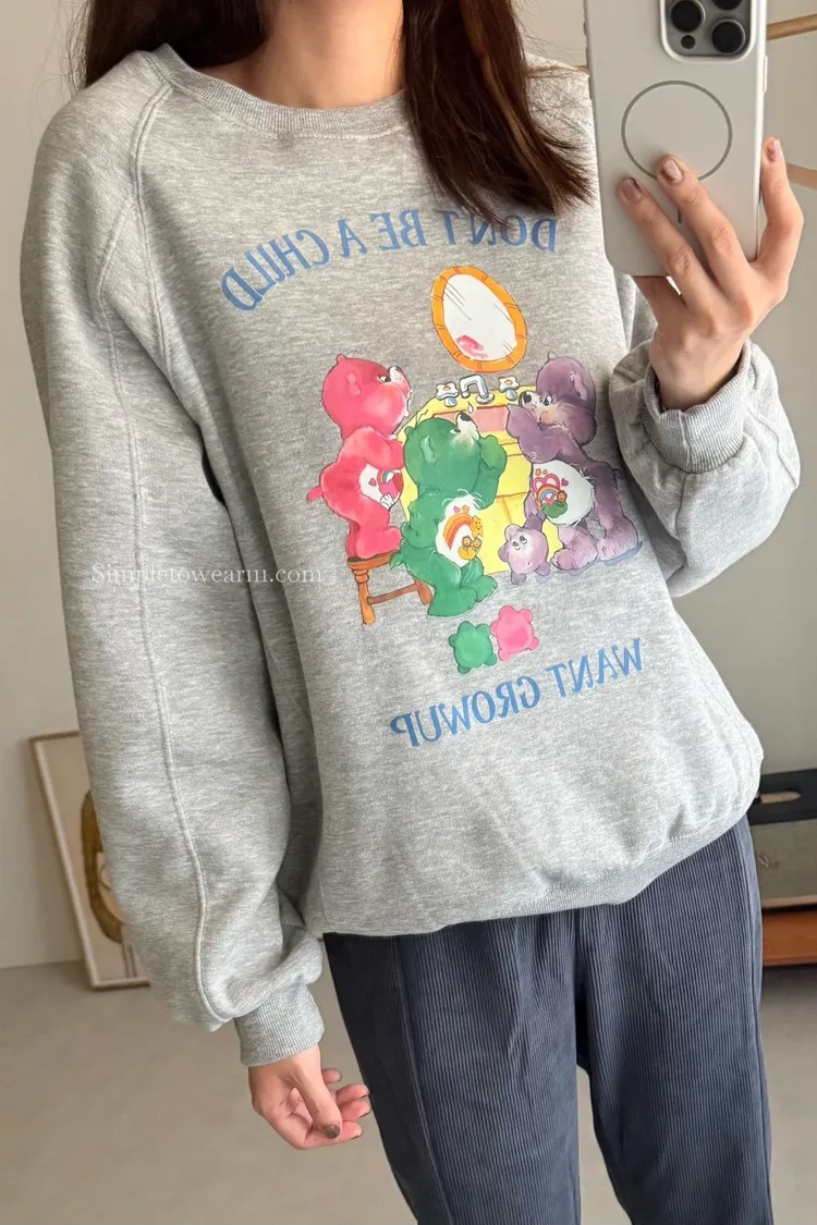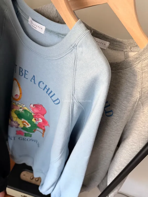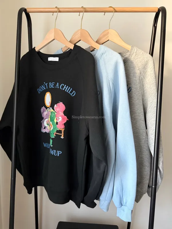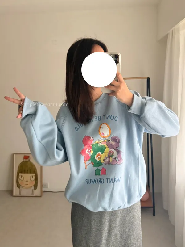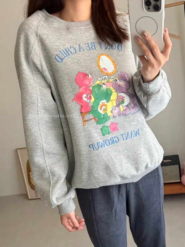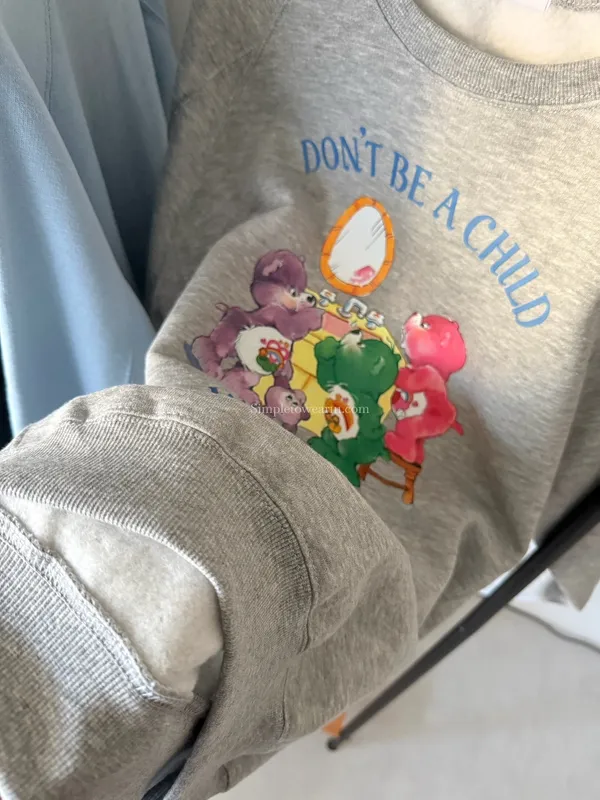韓 彩虹熊熊刷毛大學TEE (淺灰/水藍/黑)