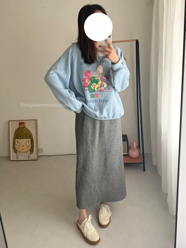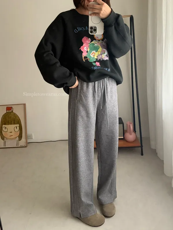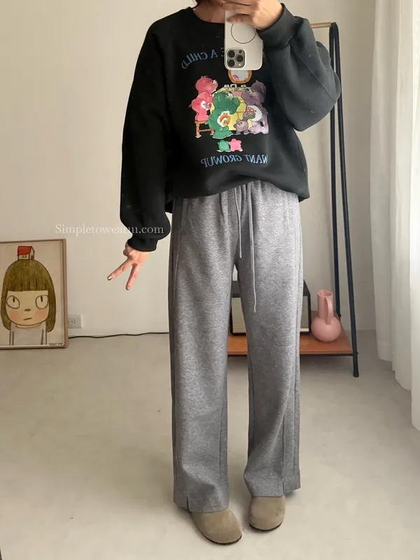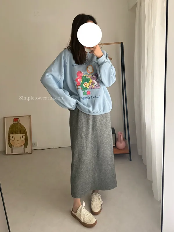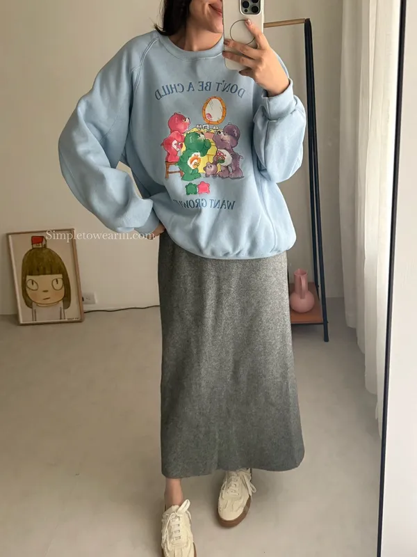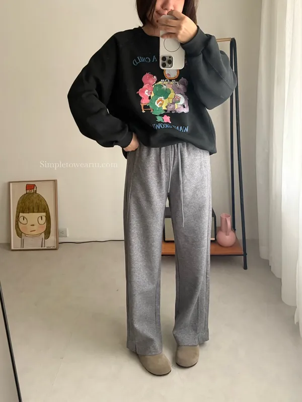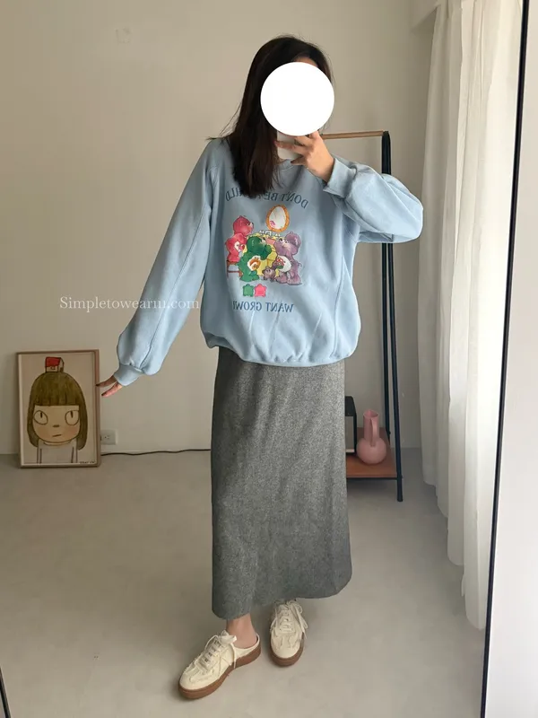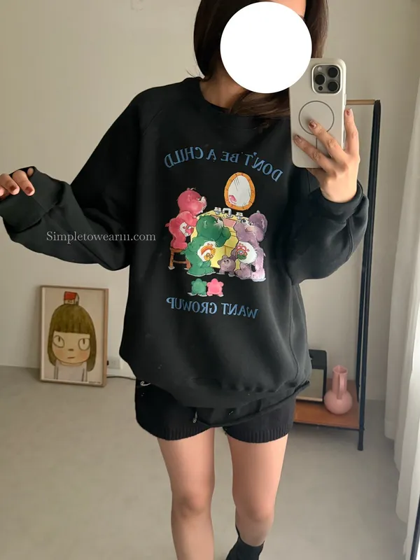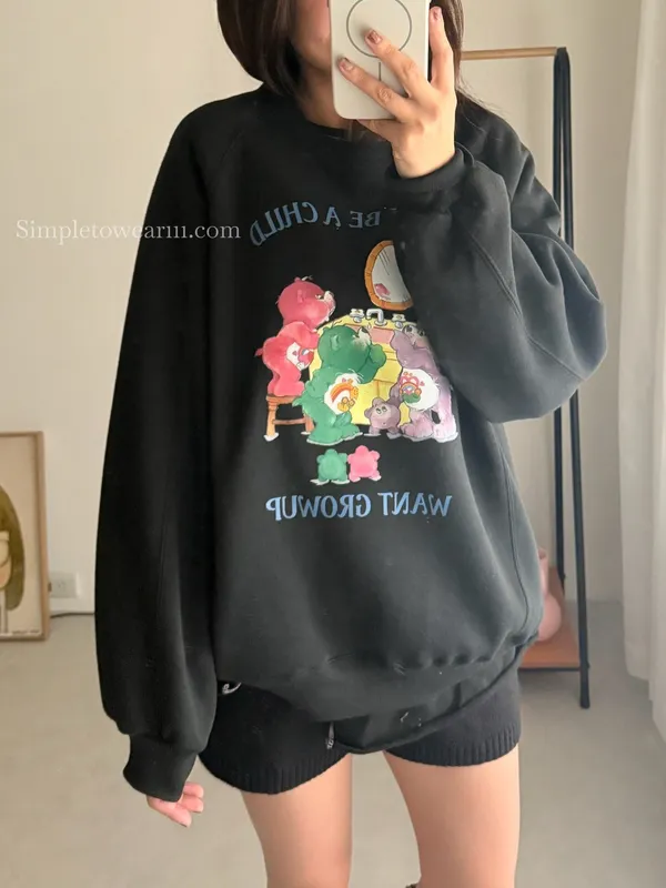 韓 彩虹熊熊刷毛大學TEE (淺灰/水藍/黑)