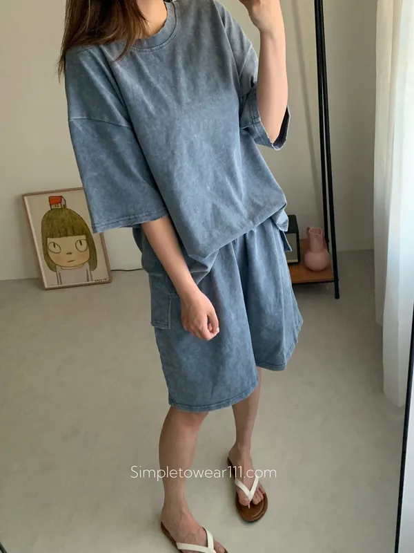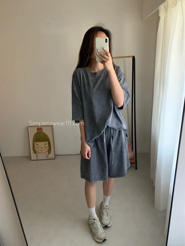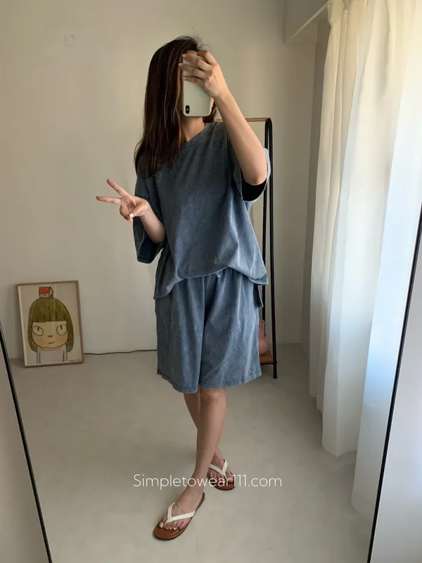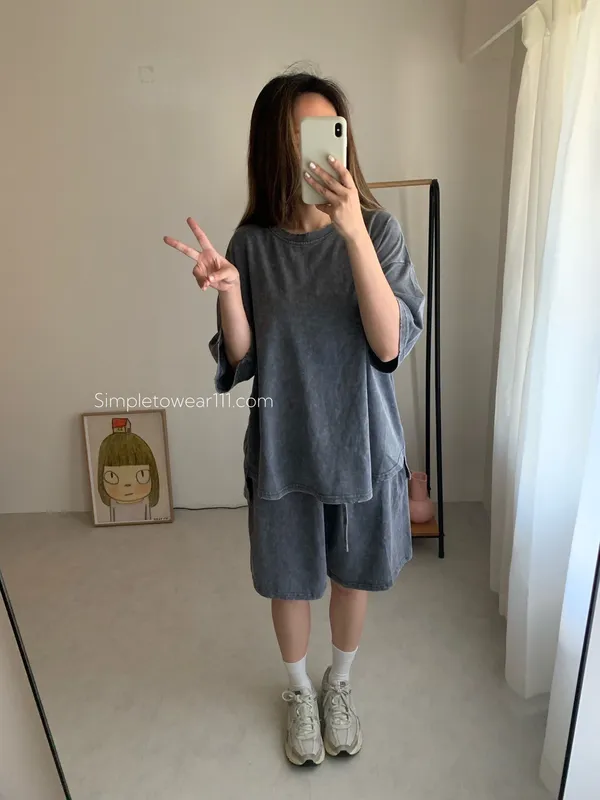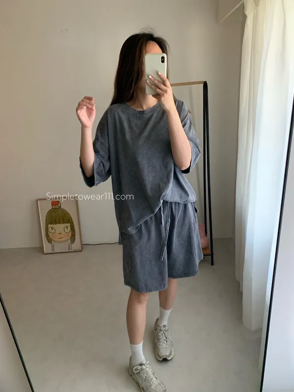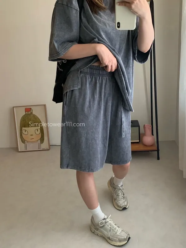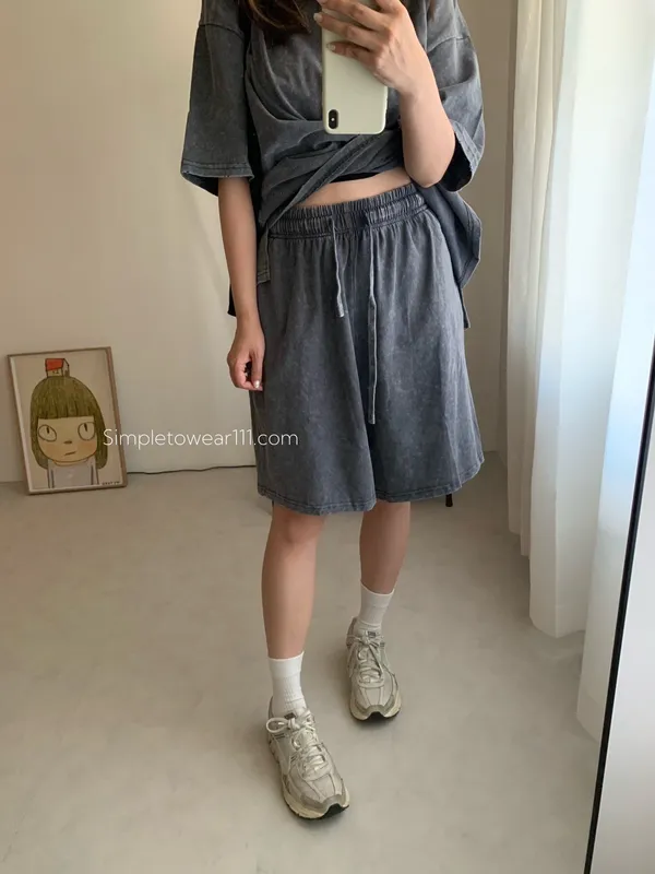 韓 刷色洗舊蠟染五分短褲 (深灰/灰藍)