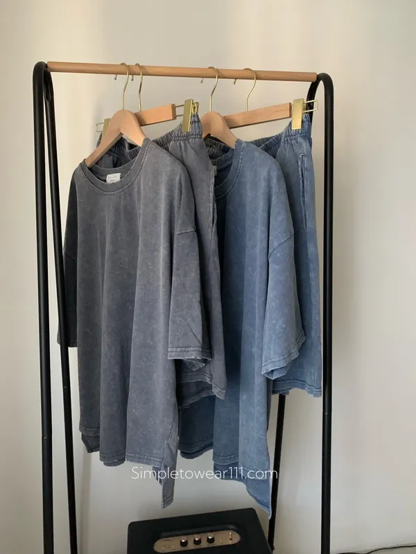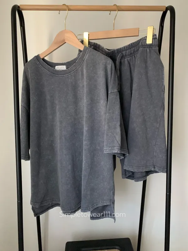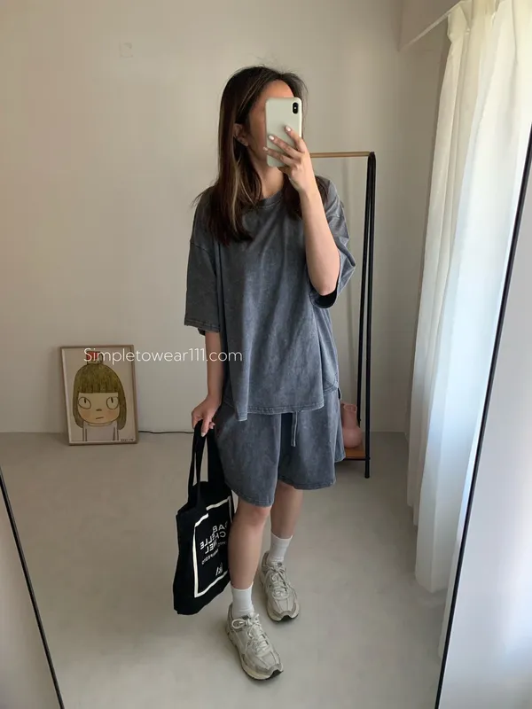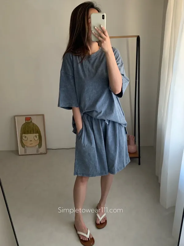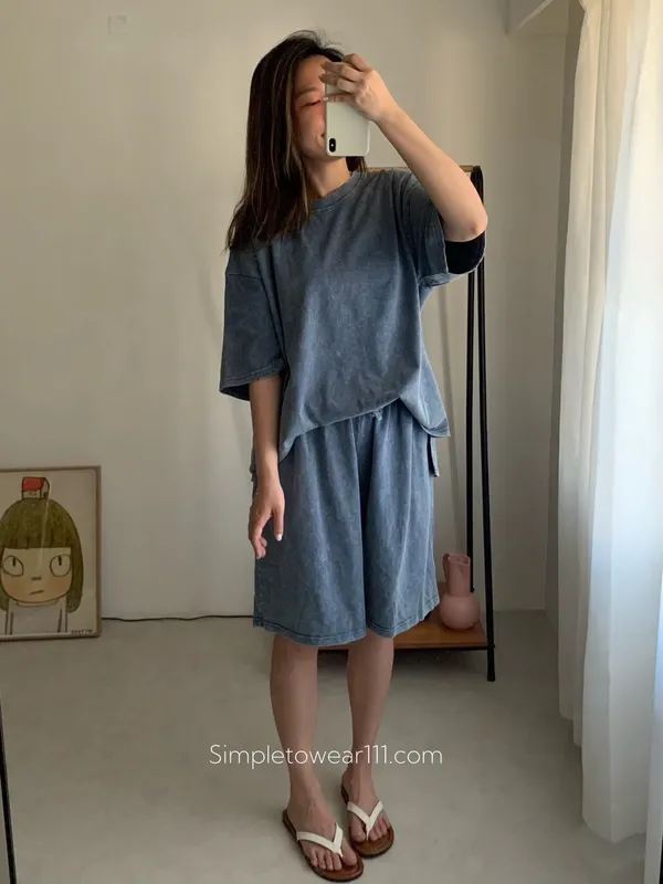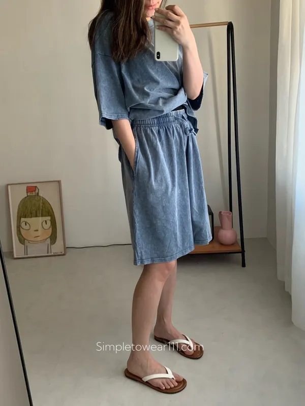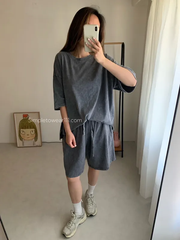 韓 刷色洗舊蠟染五分短褲 (深灰/灰藍)