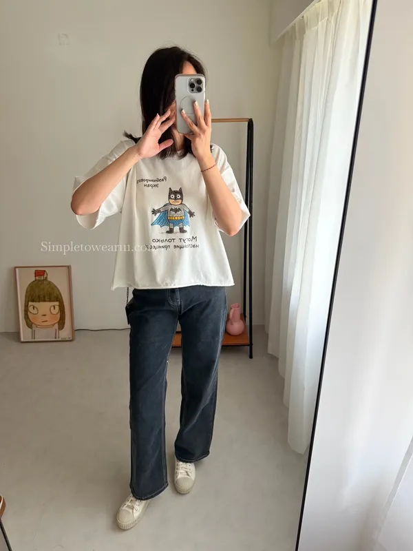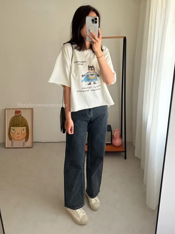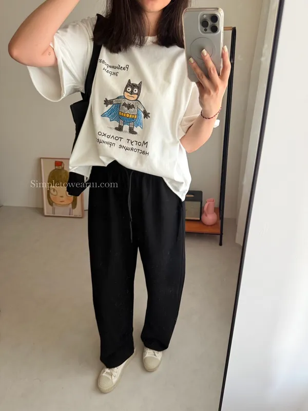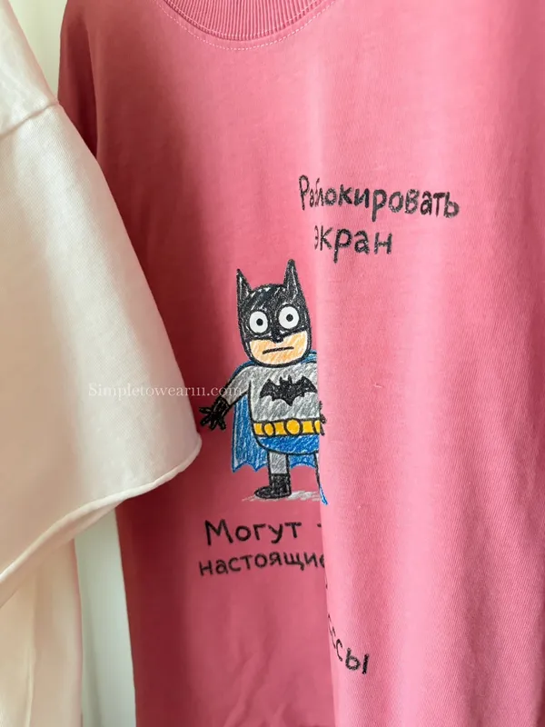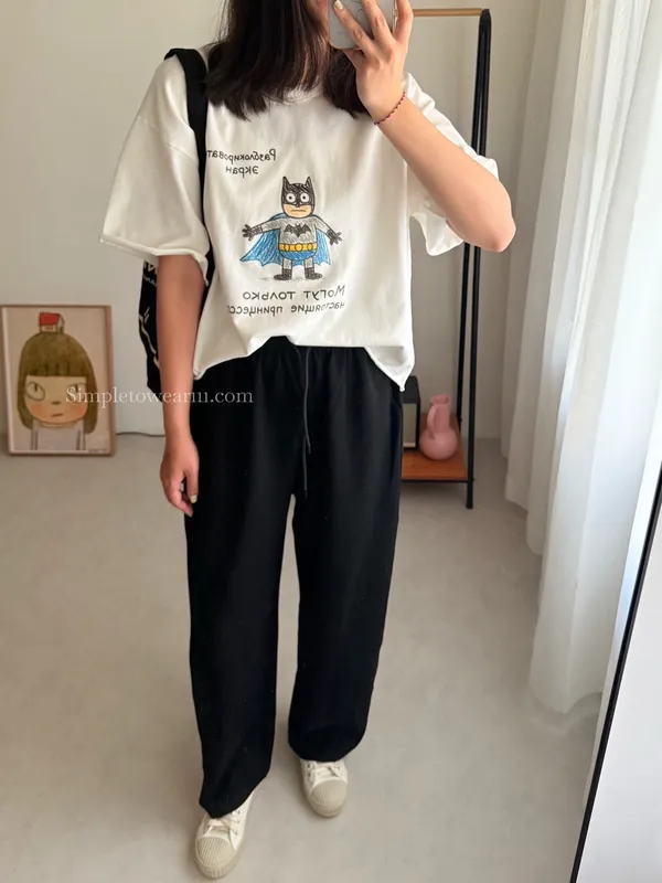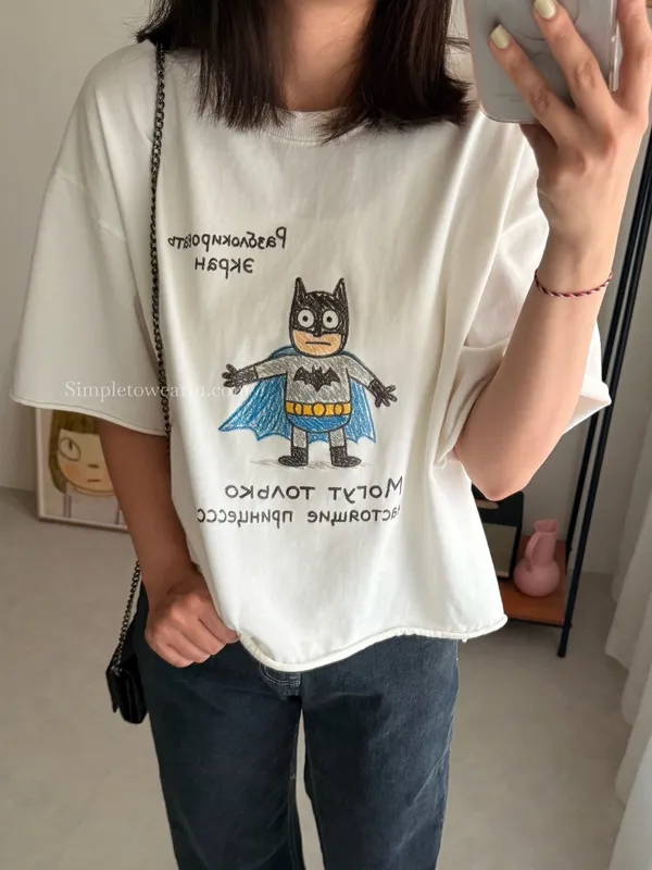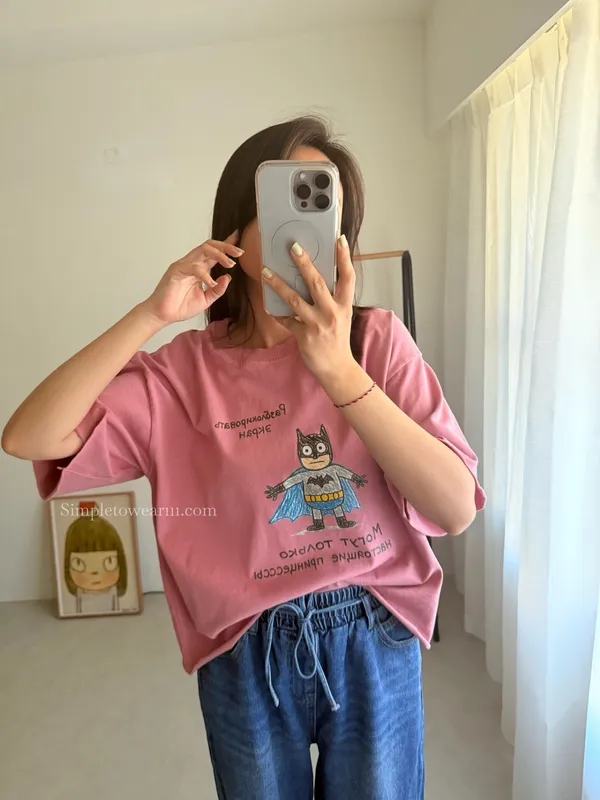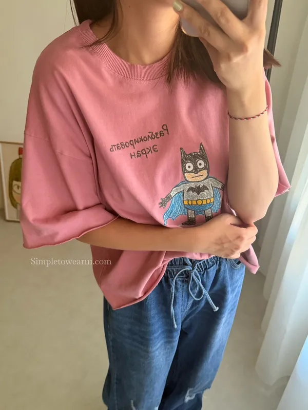 韓 五分蝙蝠俠厚棉短TEE (白/粉)