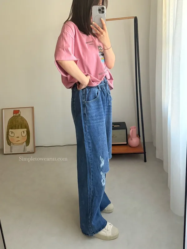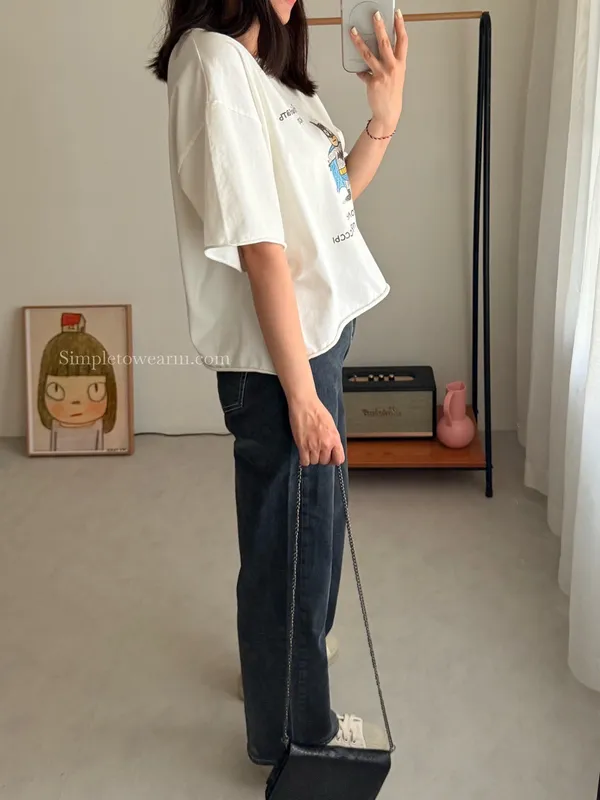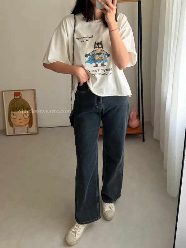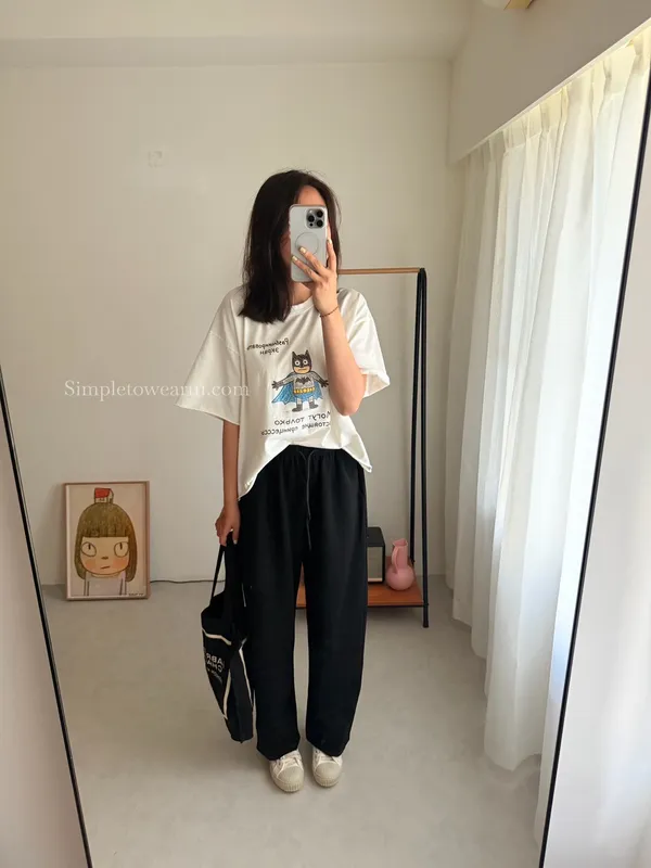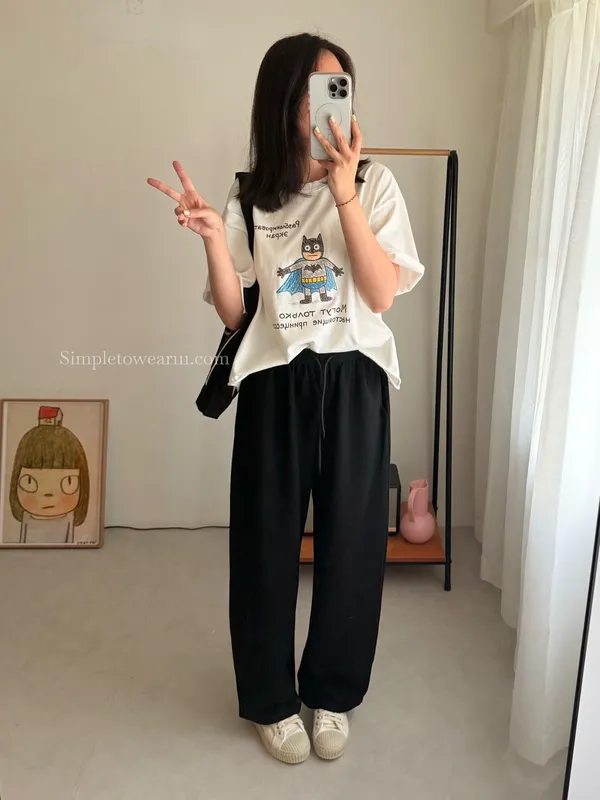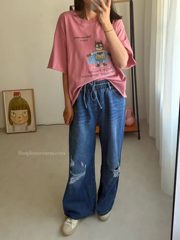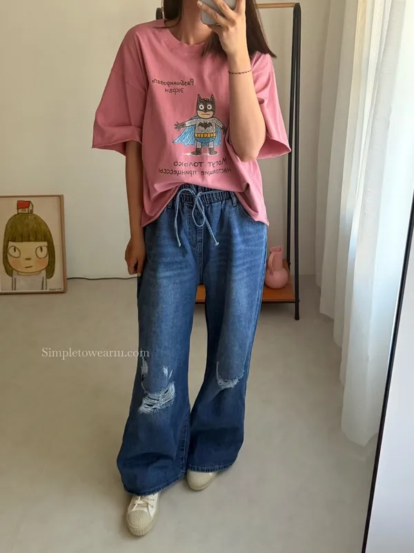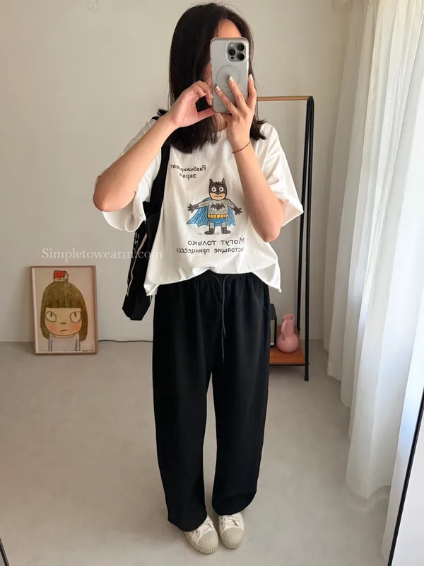 韓 五分蝙蝠俠厚棉短TEE (白/粉)