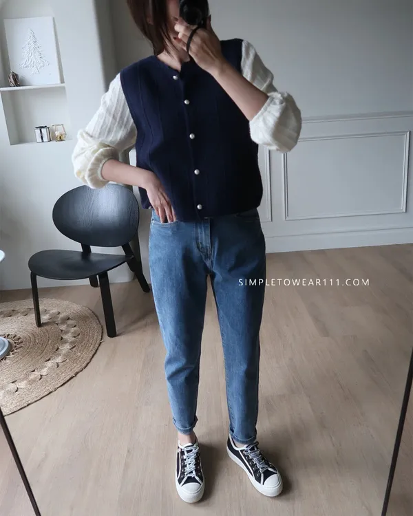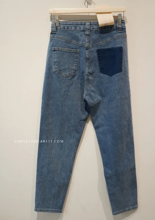 韓 好穿口袋撞色男友褲 S~XL (牛仔藍)