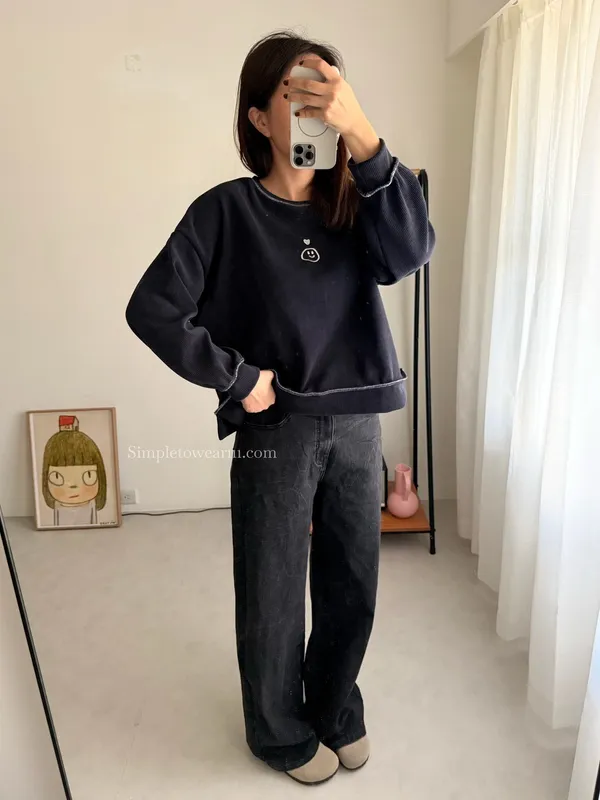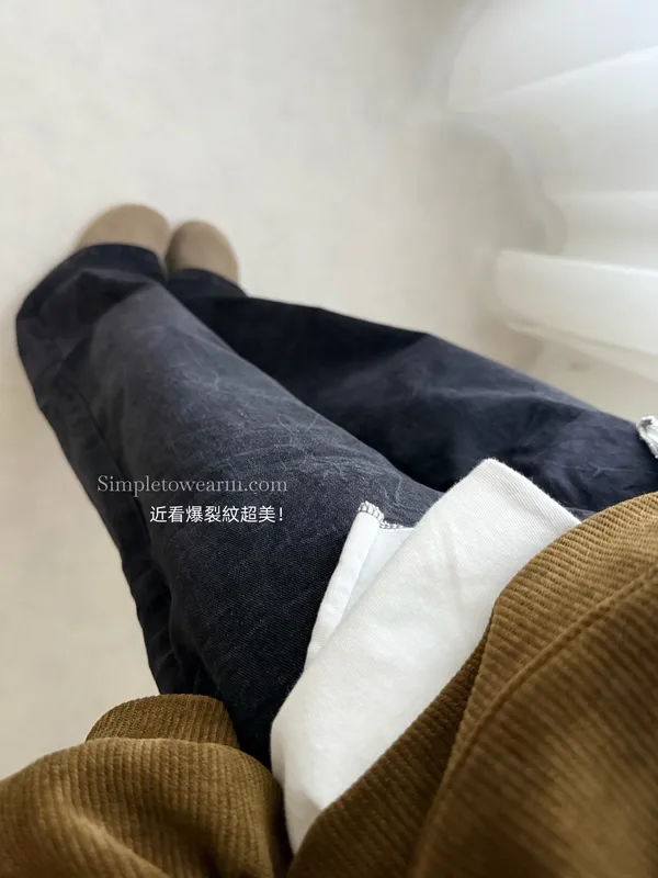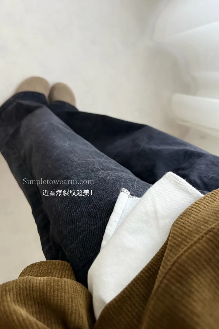 韓 爆裂紋落地直筒牛仔褲 黑