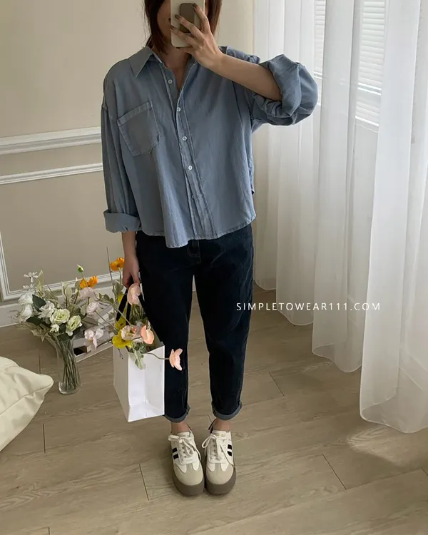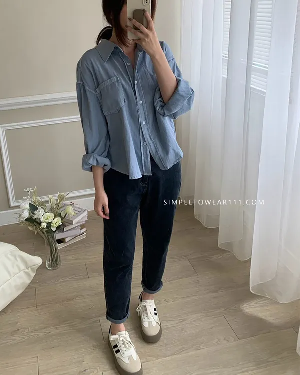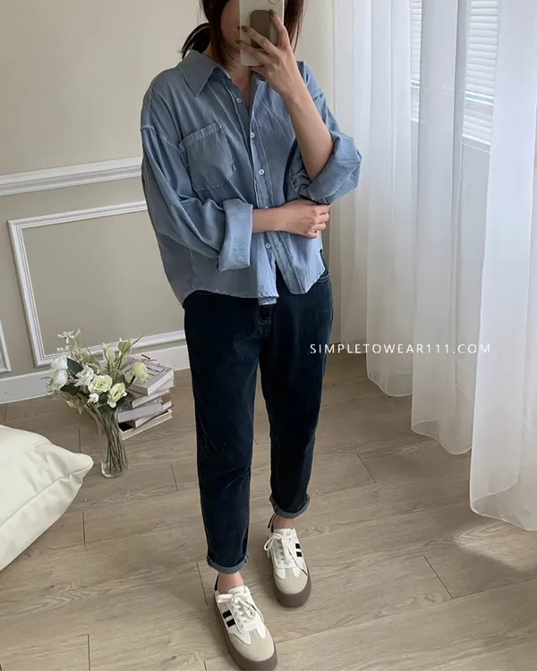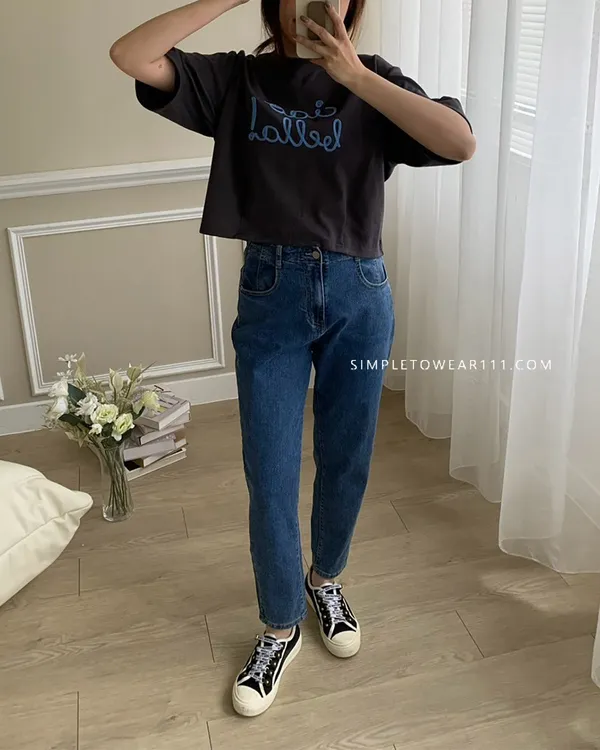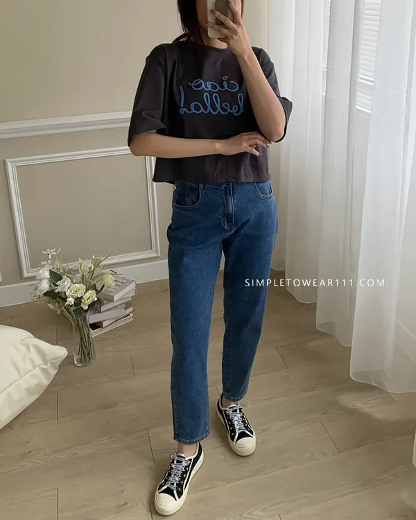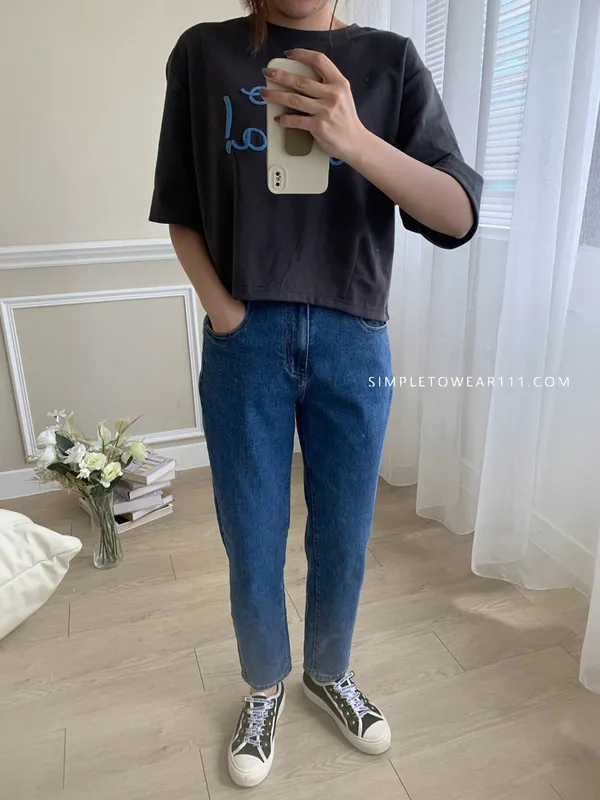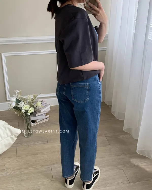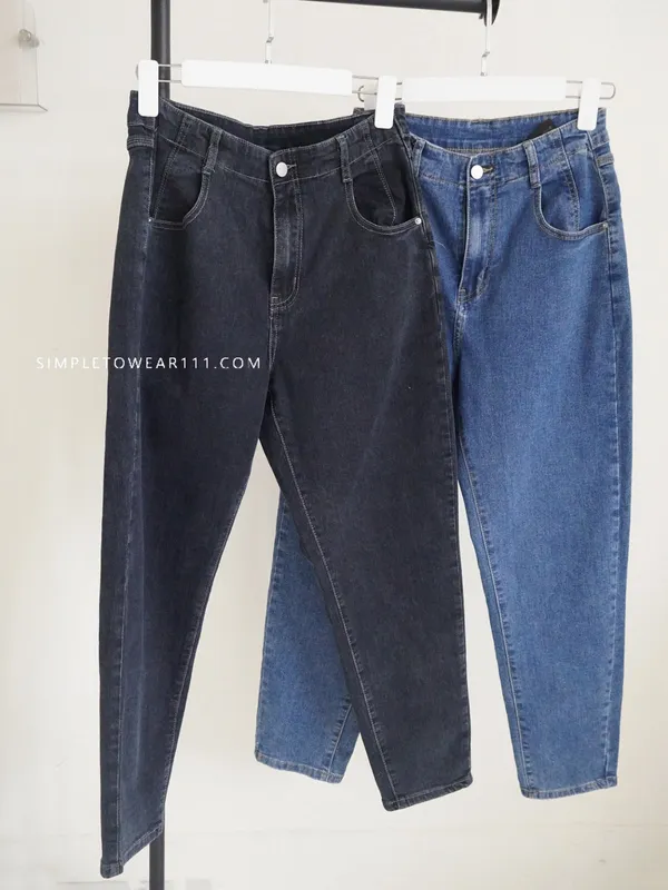 韓 百搭款直筒小男友褲 (暗藍/中藍)