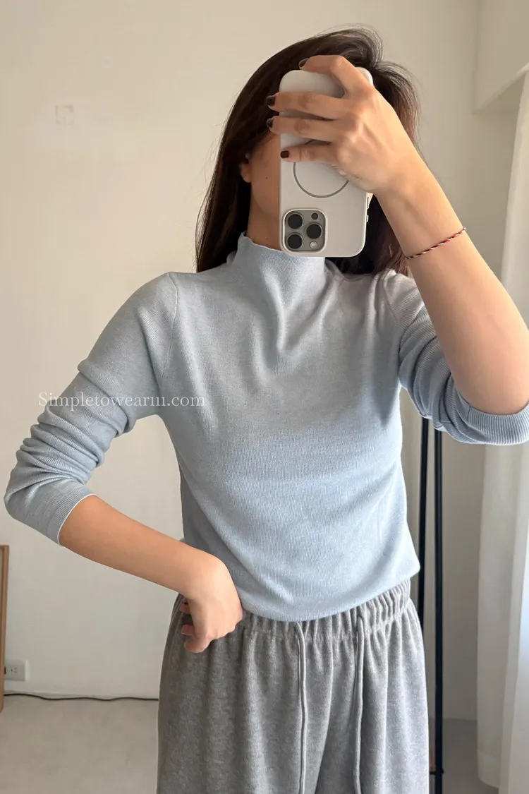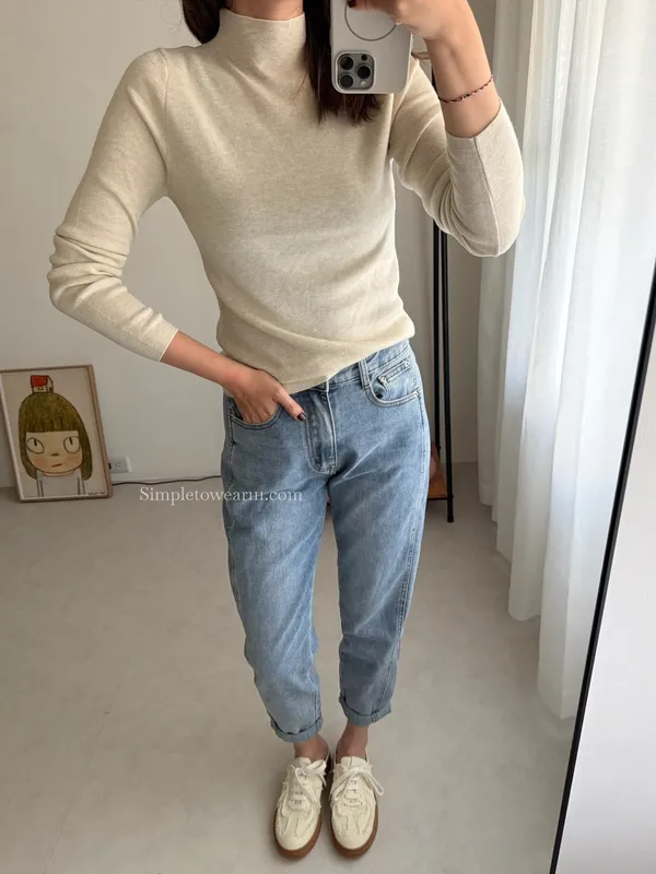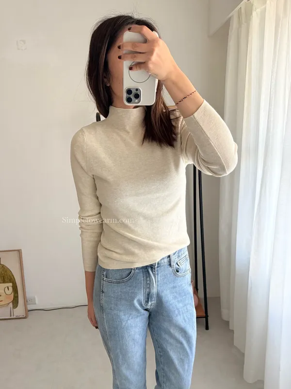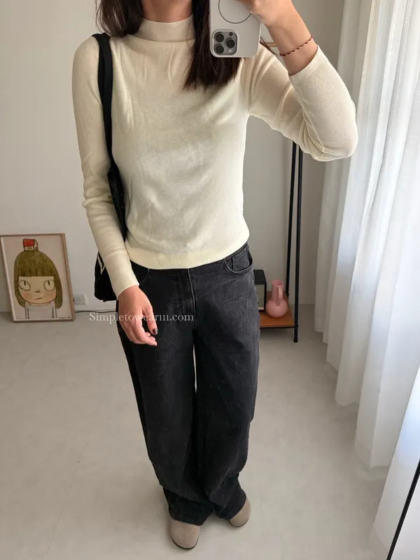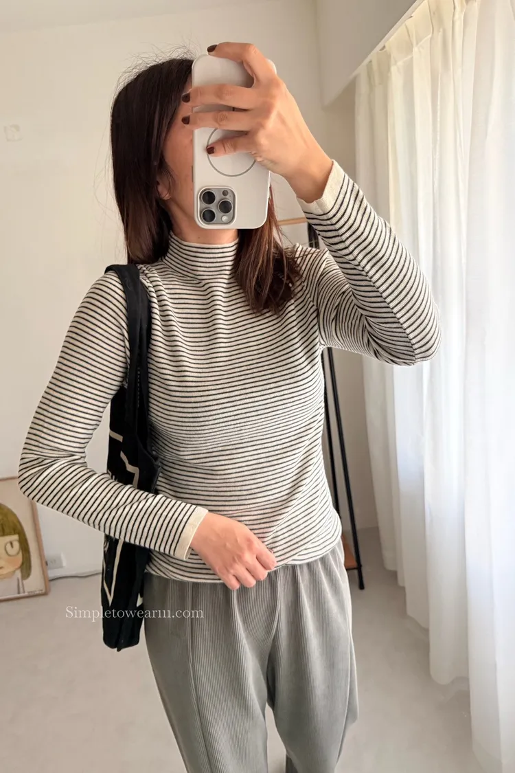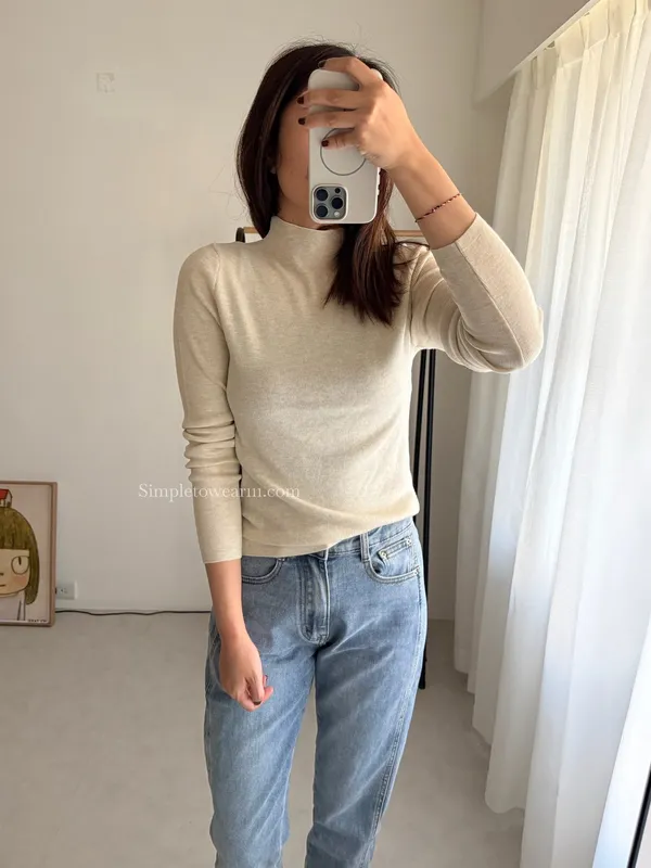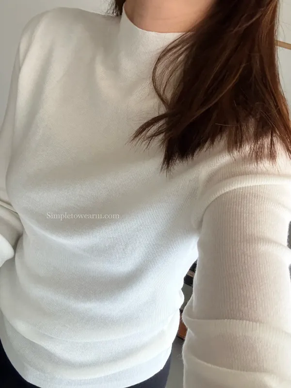比起 #細坑條微立領針織 這款稍微寬鬆一點點