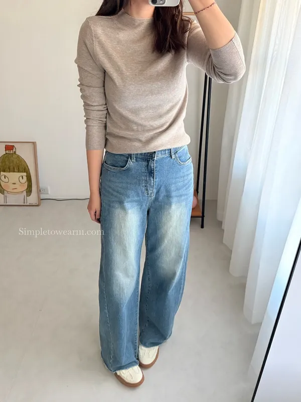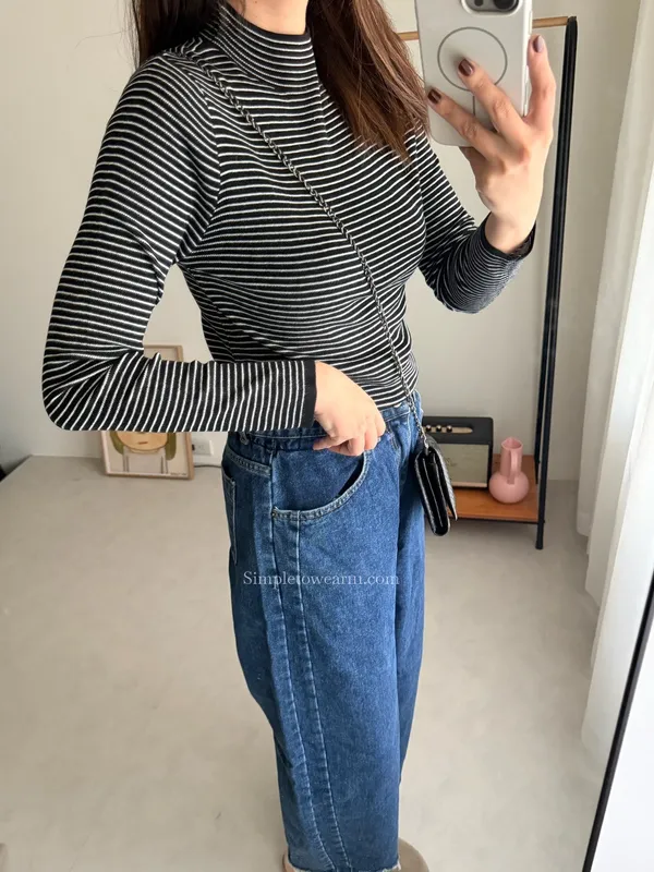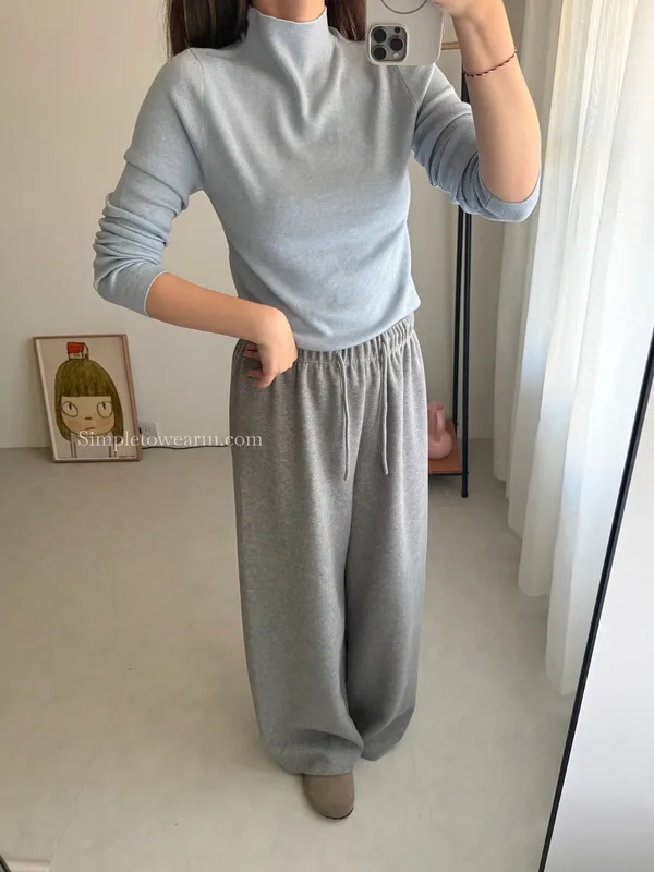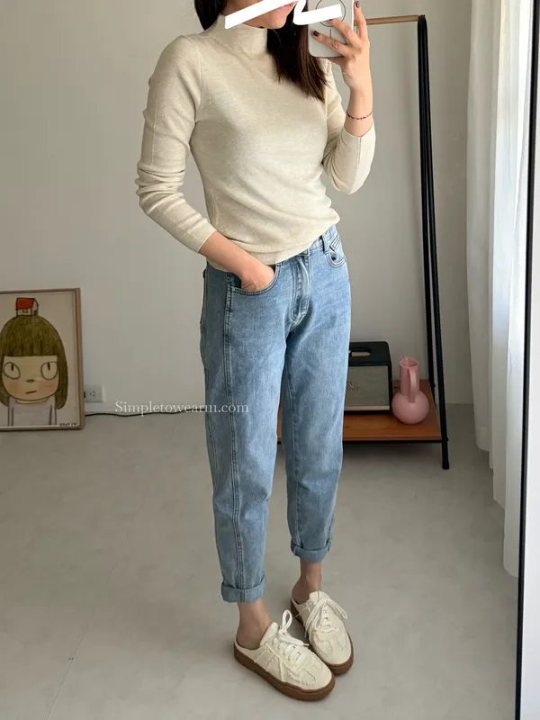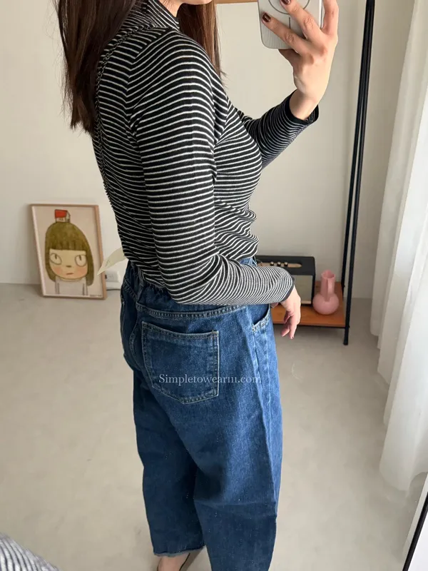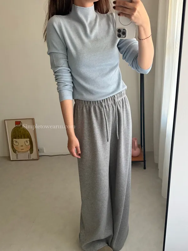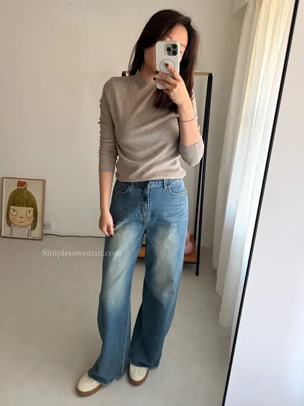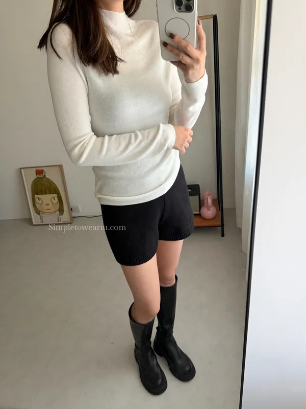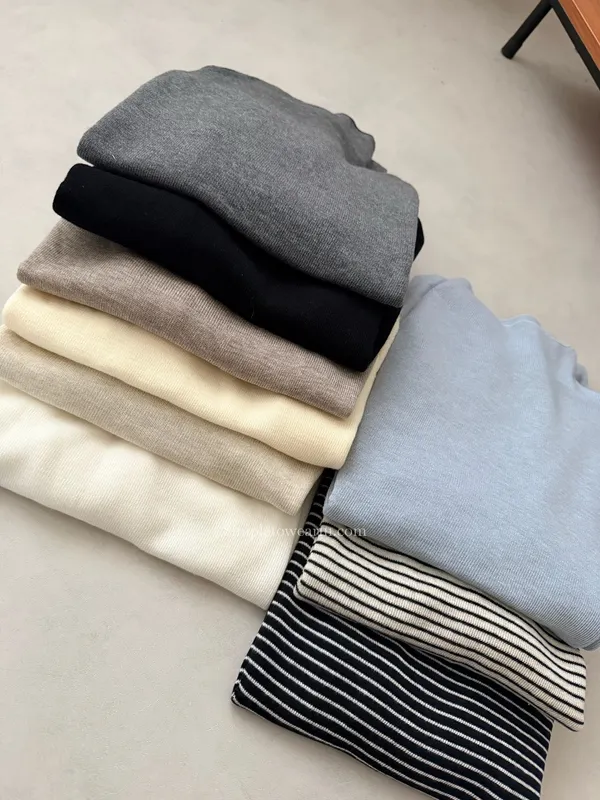 比起 #細坑條微立領針織 這款稍微寬鬆一點點