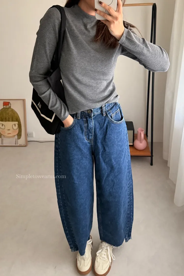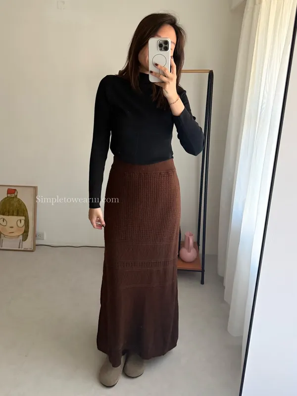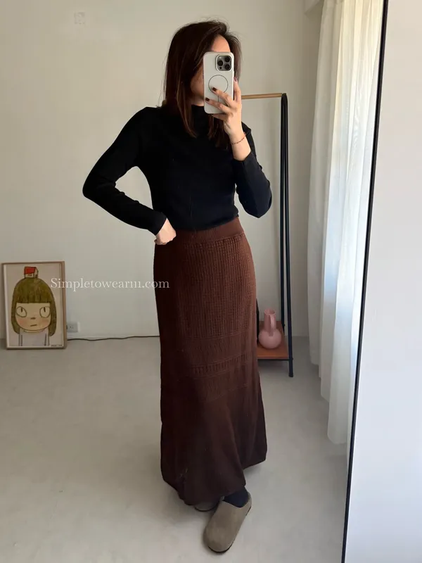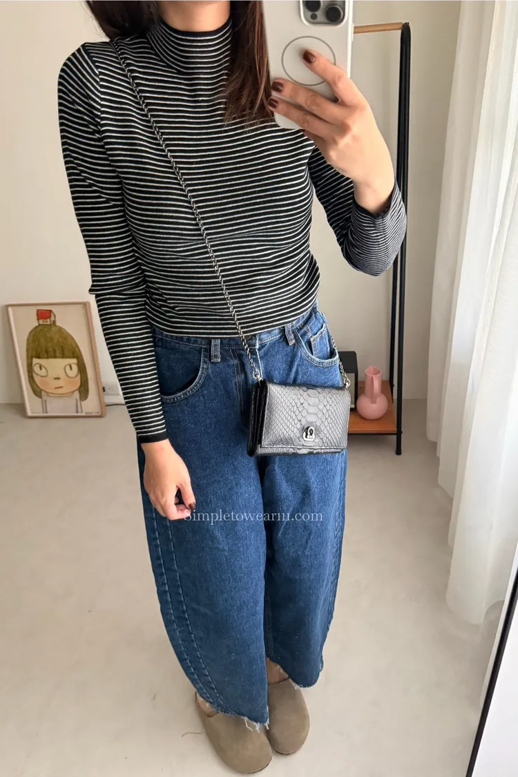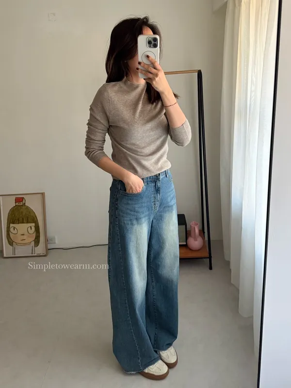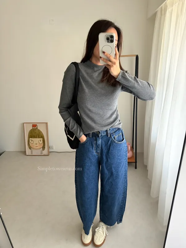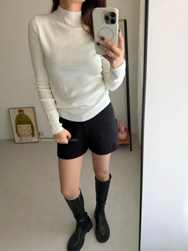 比起 #細坑條微立領針織 這款稍微寬鬆一點點