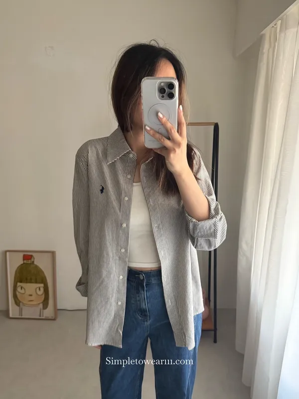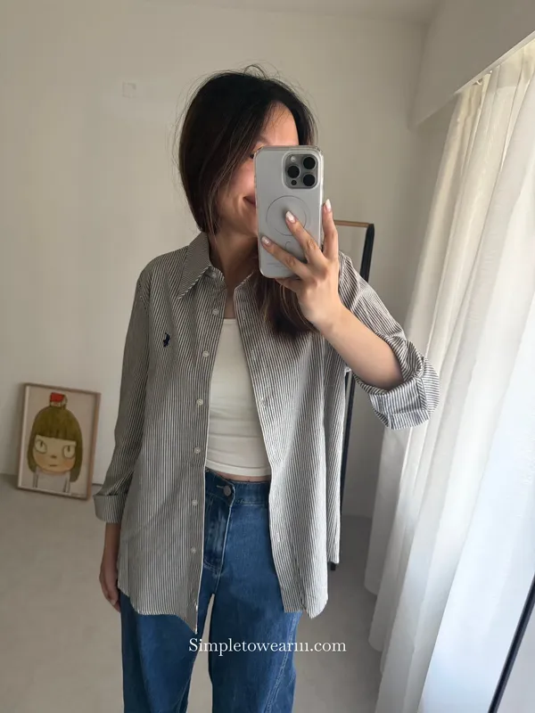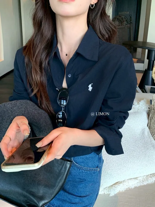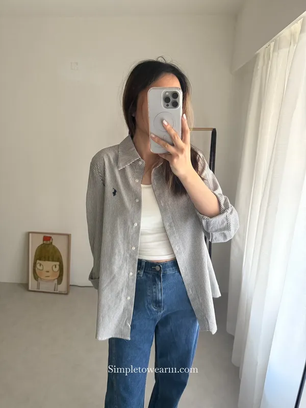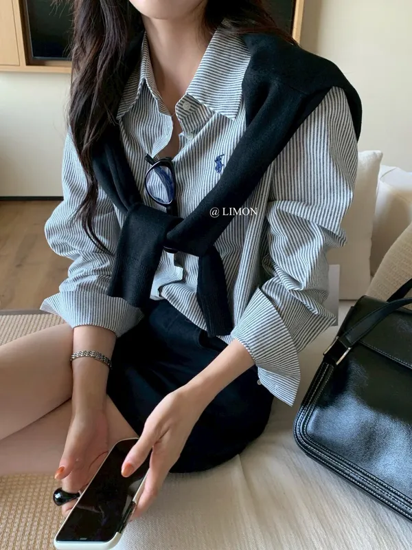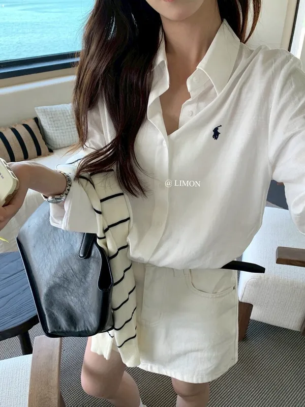 檸檬家 小馬刺繡襯衫 (白/咖/深藍/條紋)