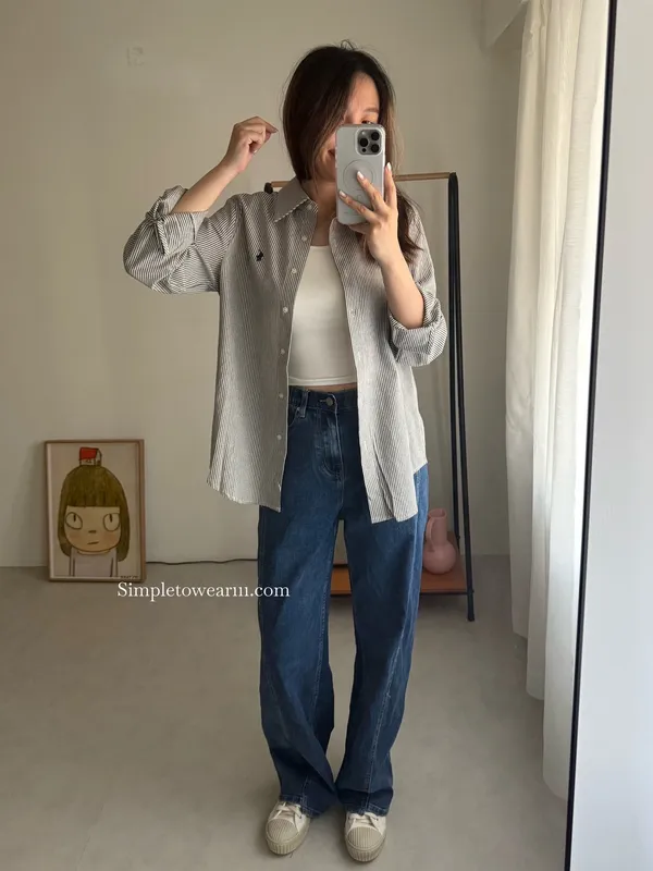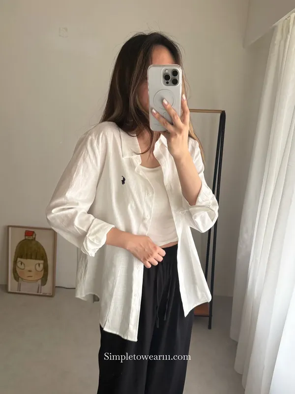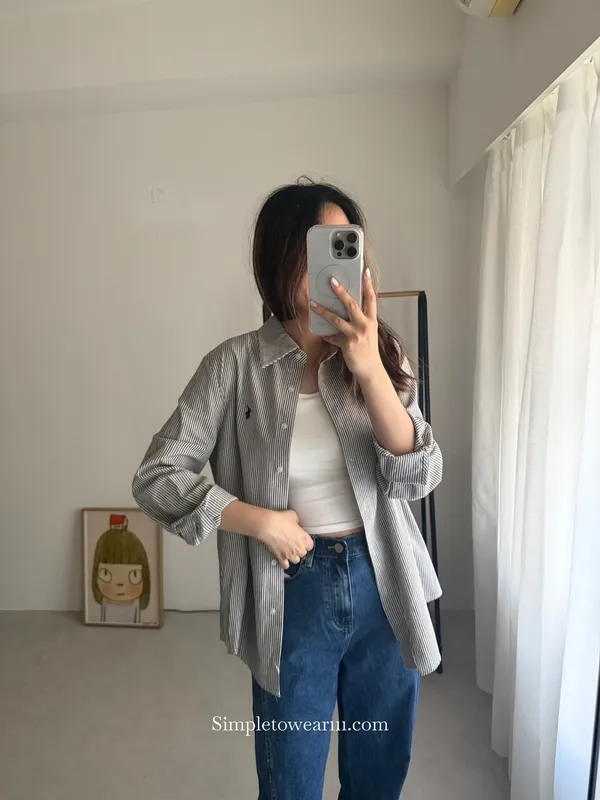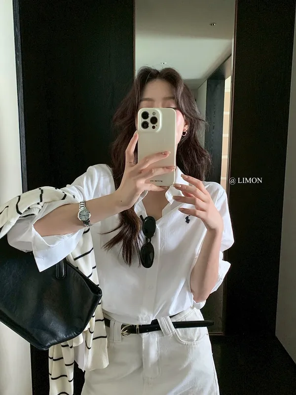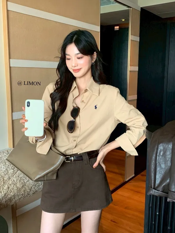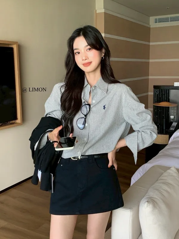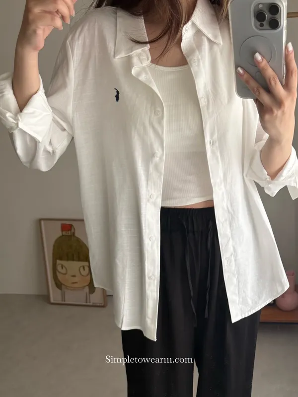 檸檬家 小馬刺繡襯衫 (白/咖/深藍/條紋)