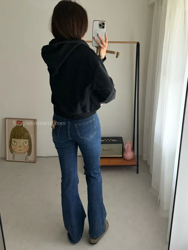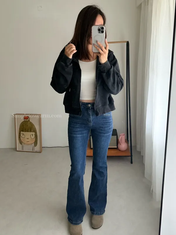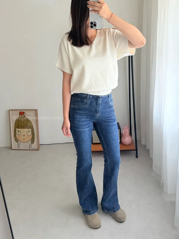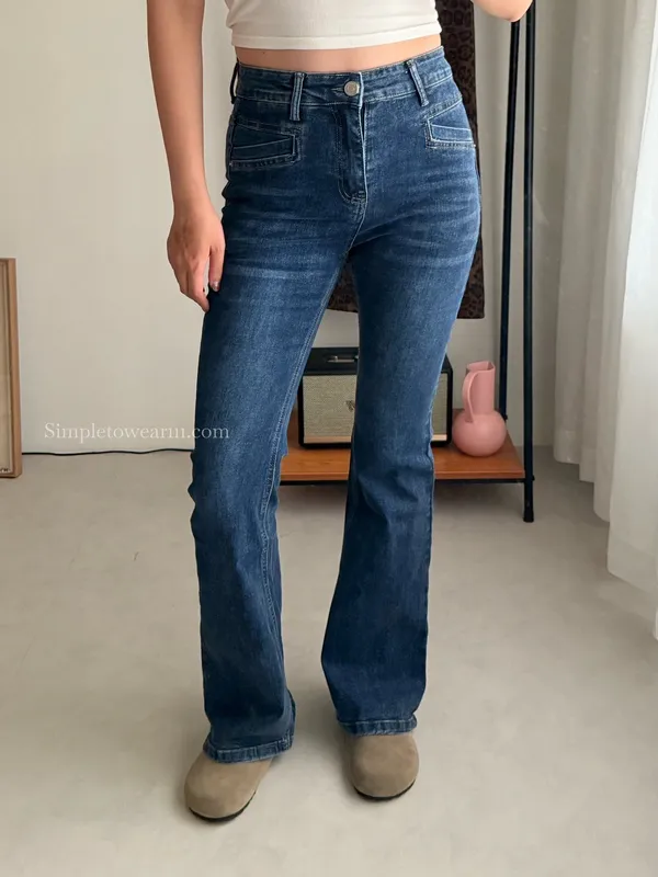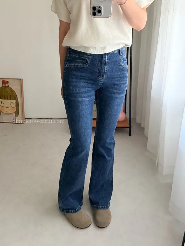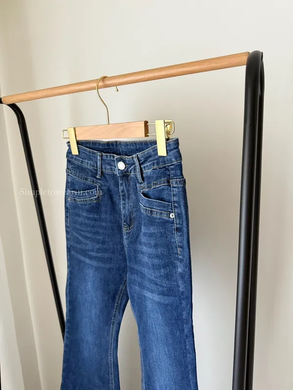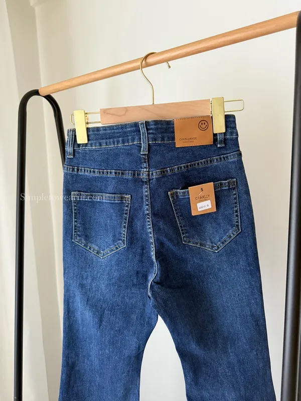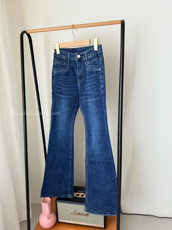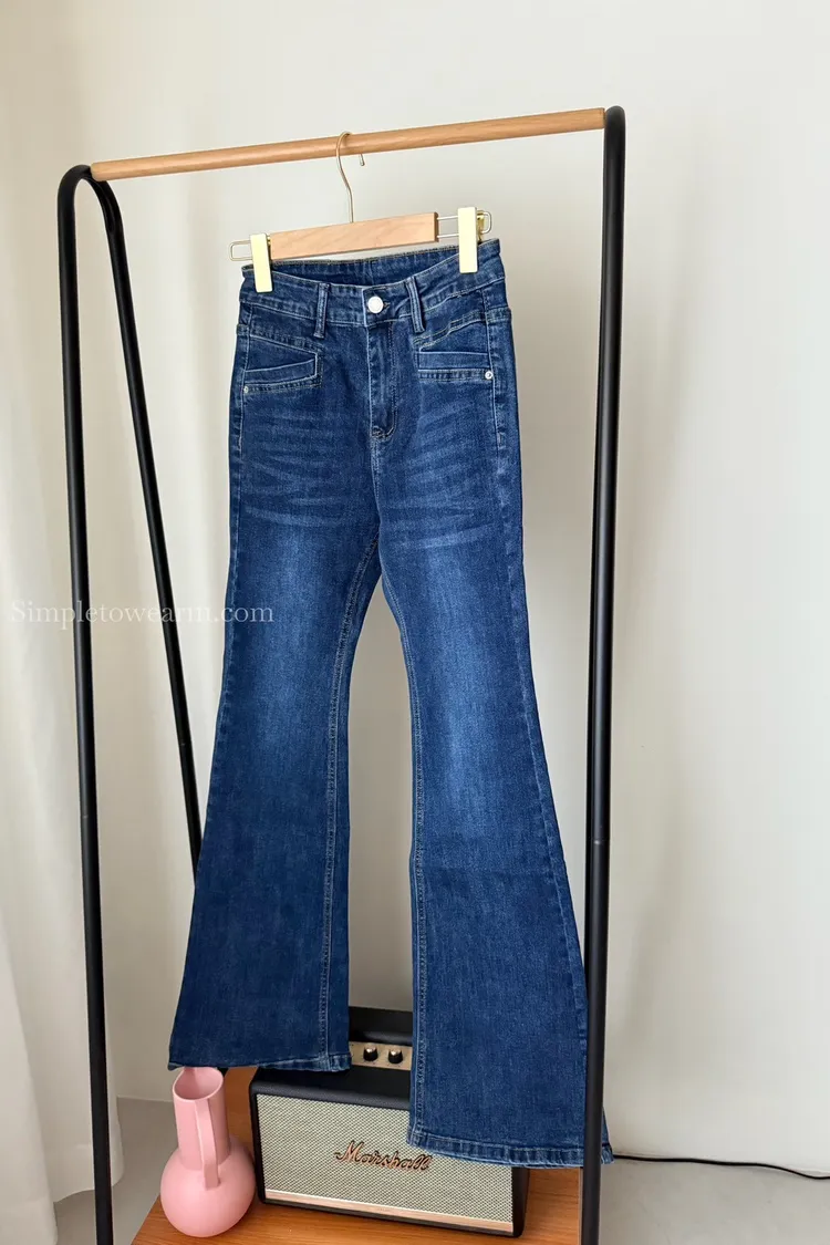 韓 經典深藍牛仔喇叭長褲 S~XXL