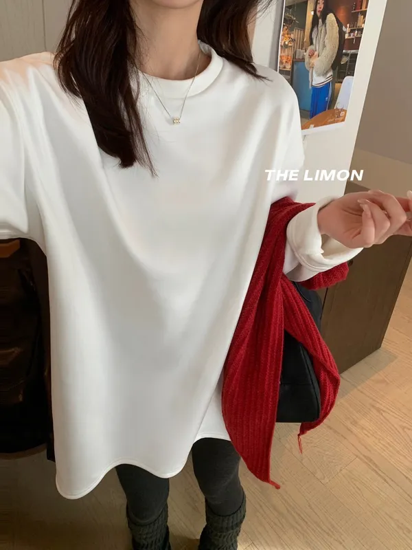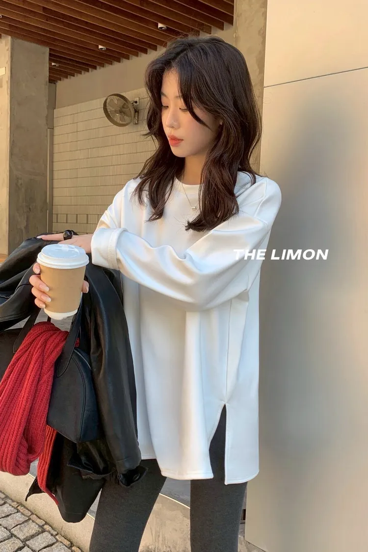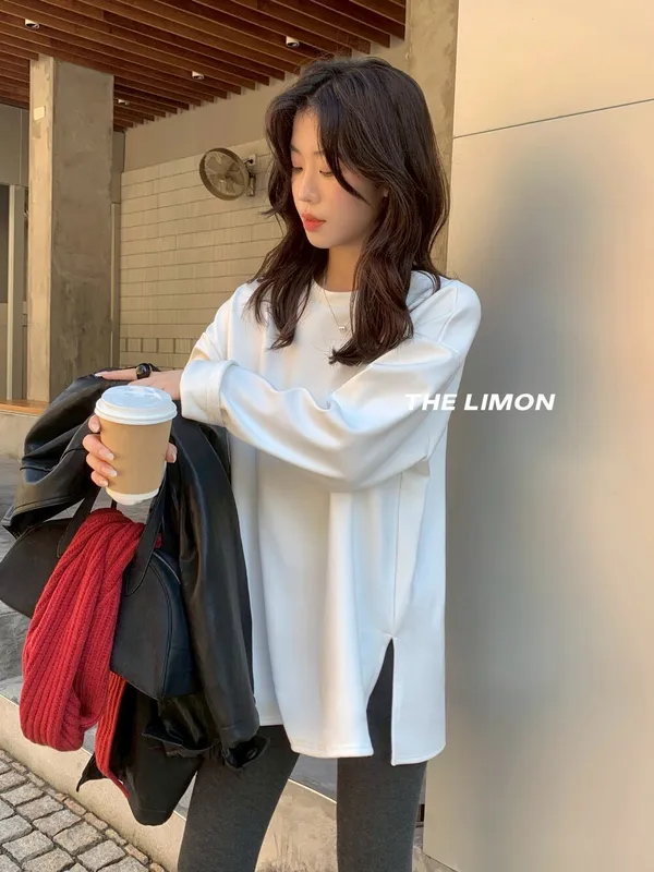 秋冬必備的長版TEE 這款是有刷絨的喔冬天怕冷的朋友直接穿一件就很暖拉而且他這款長度做的很剛好長度夠遮屁屁 夠安心配上內搭褲 比例就超好的搭配我們家各種厚外套 也很好看出國去冷國家 或是怕冷的朋朋們這款可以買的唷!!