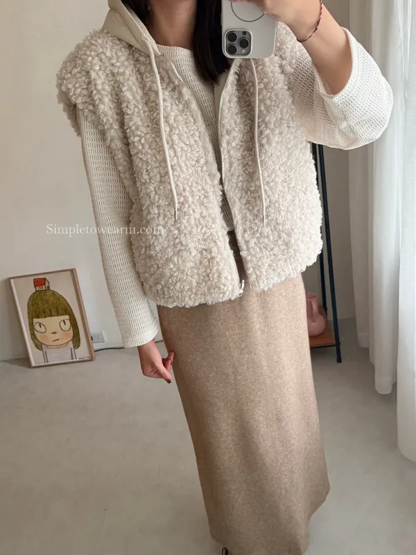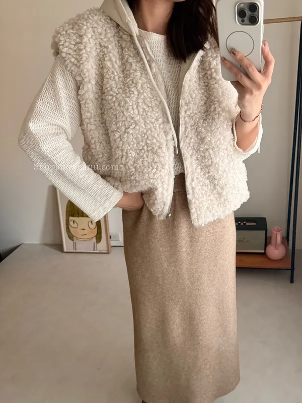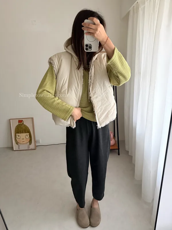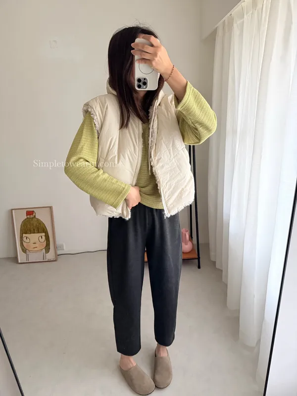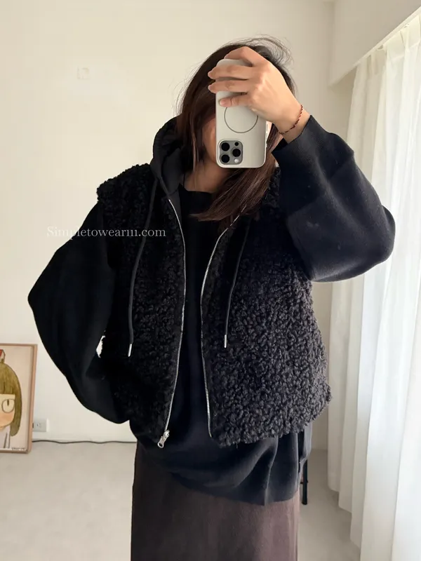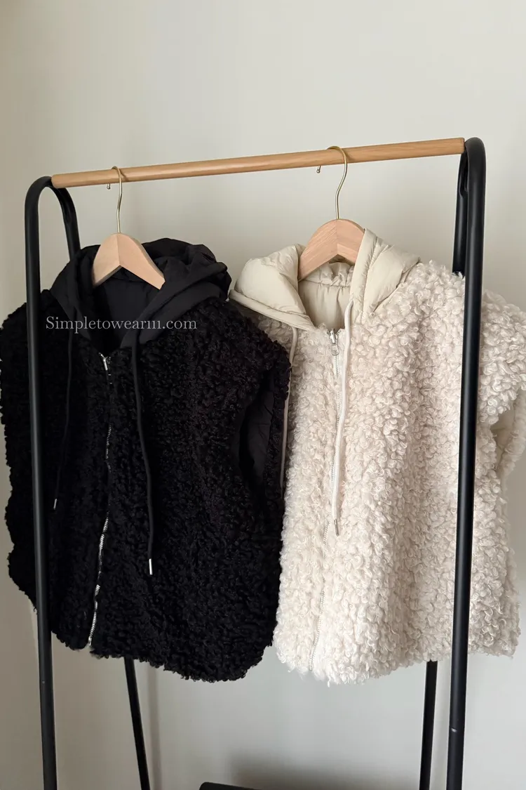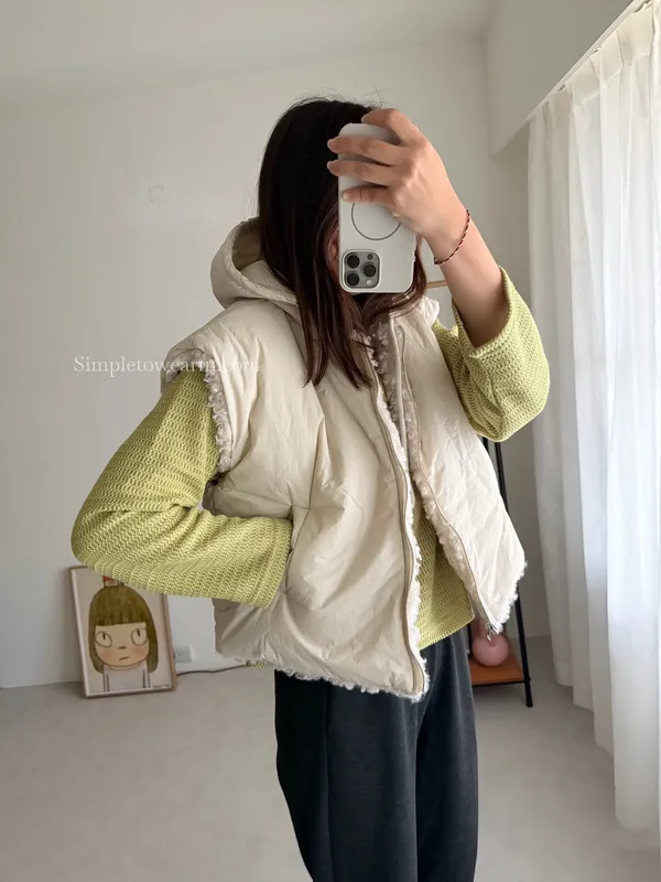 CP值極高!! 兩面穿圈圈毛背心外套 (杏/黑)
