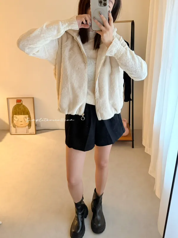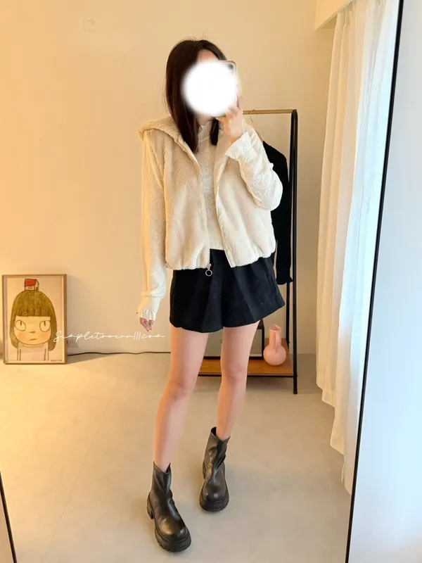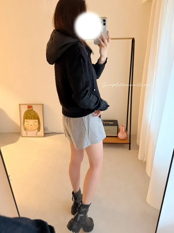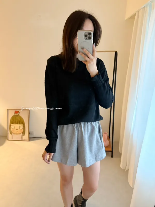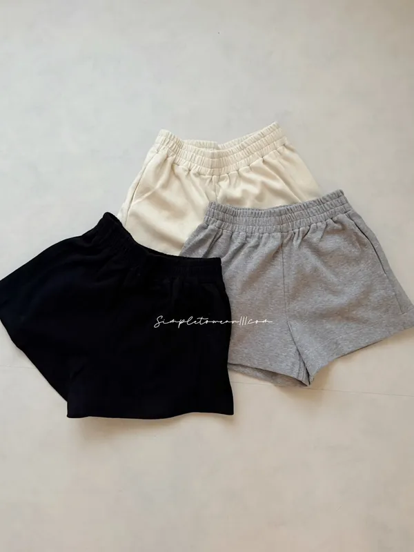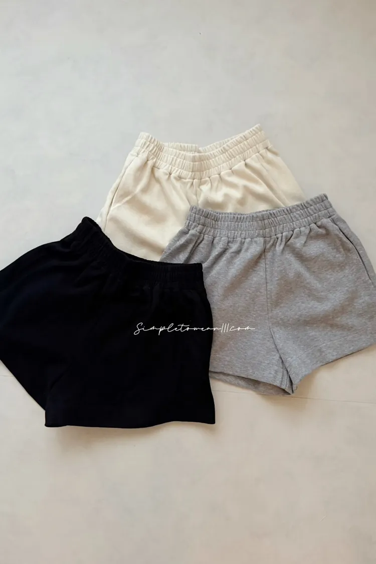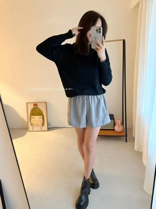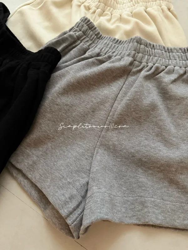 【雙11特賣】鬆緊腰車線磨毛短褲 (杏/灰/黑)