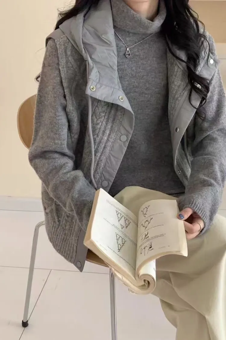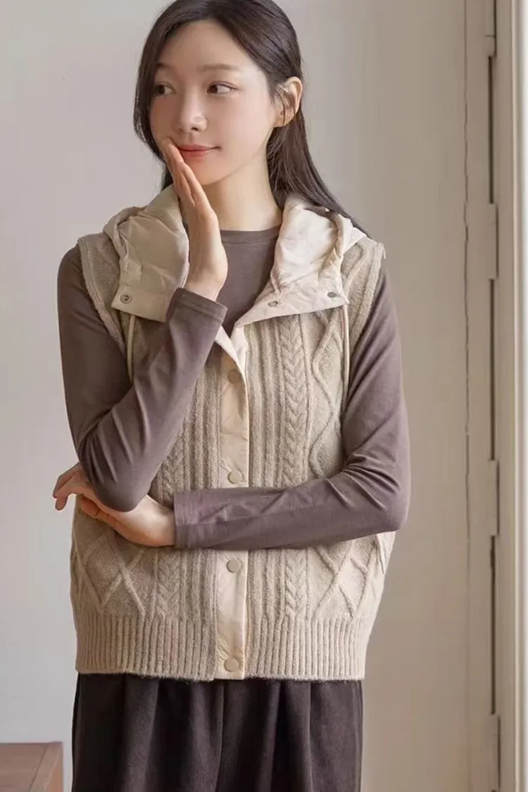 TH超暖!! 麻花針織拼接羽絨背心外套(卡其/灰/黑)