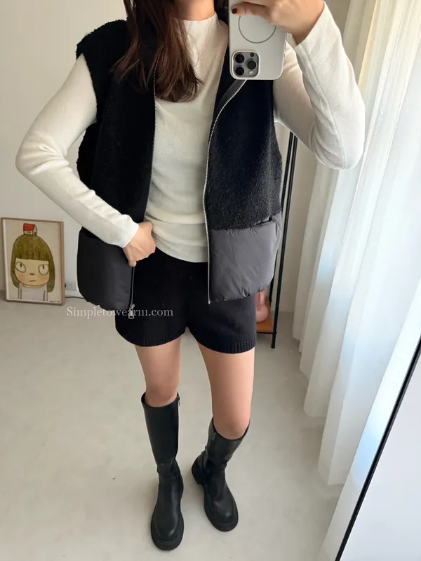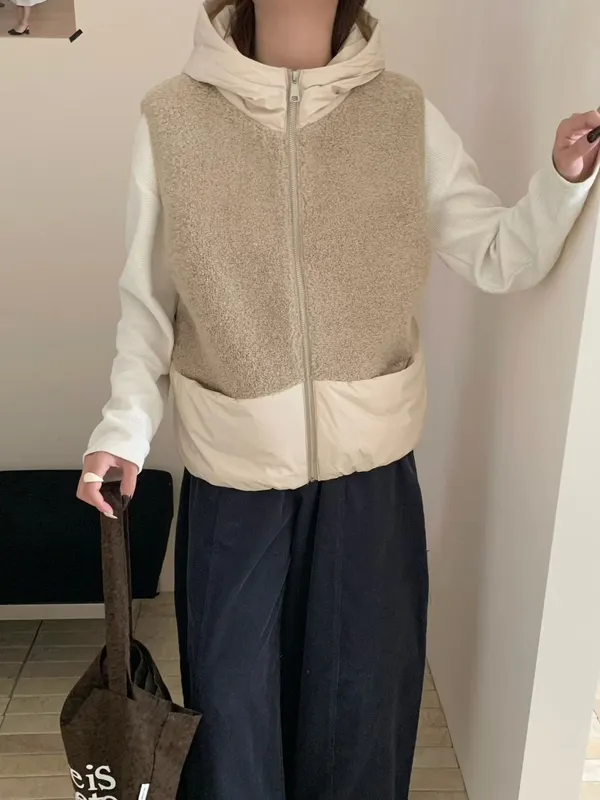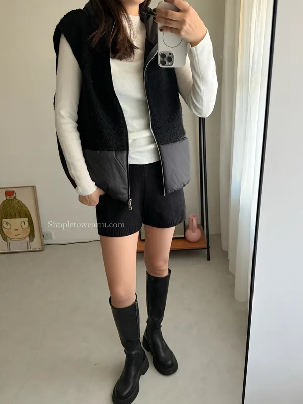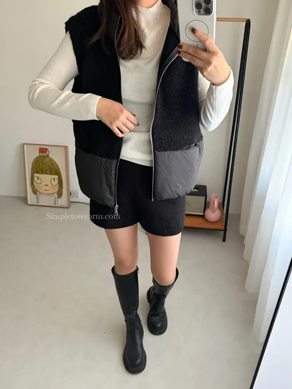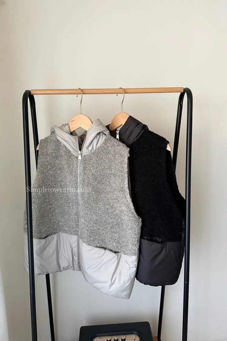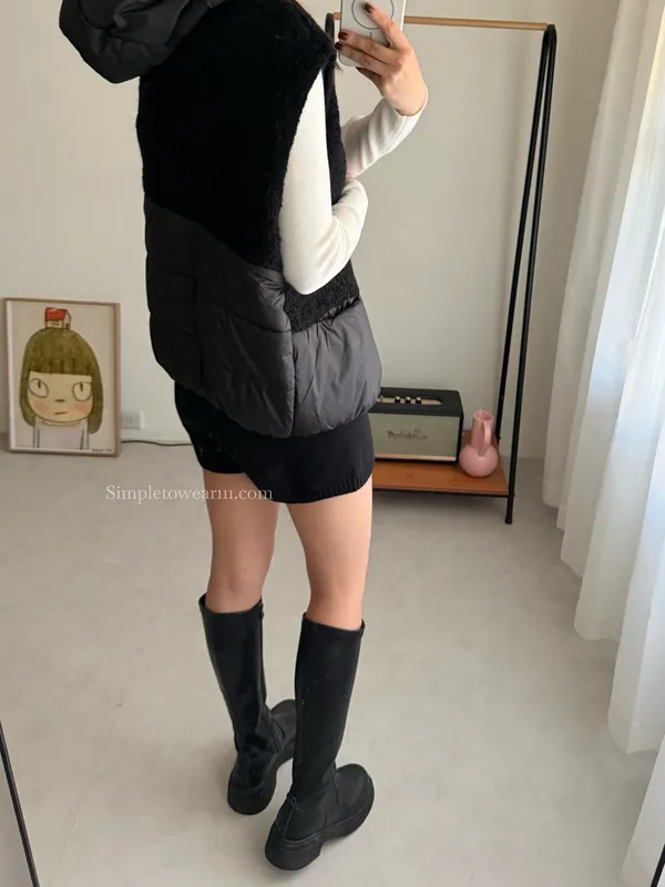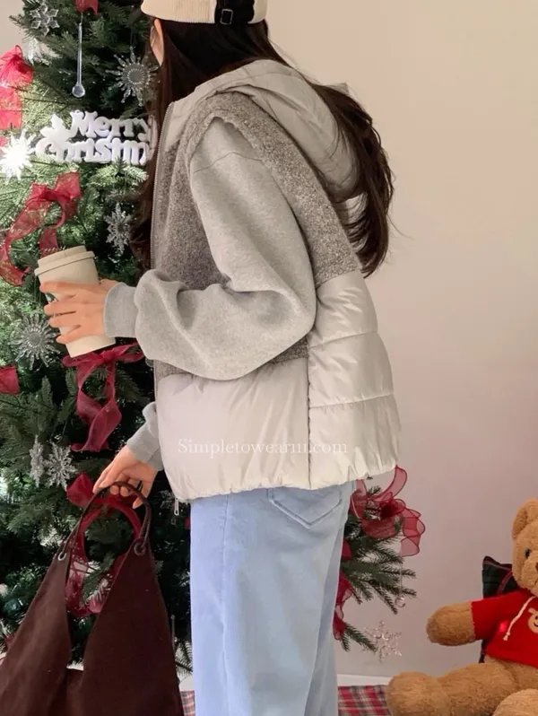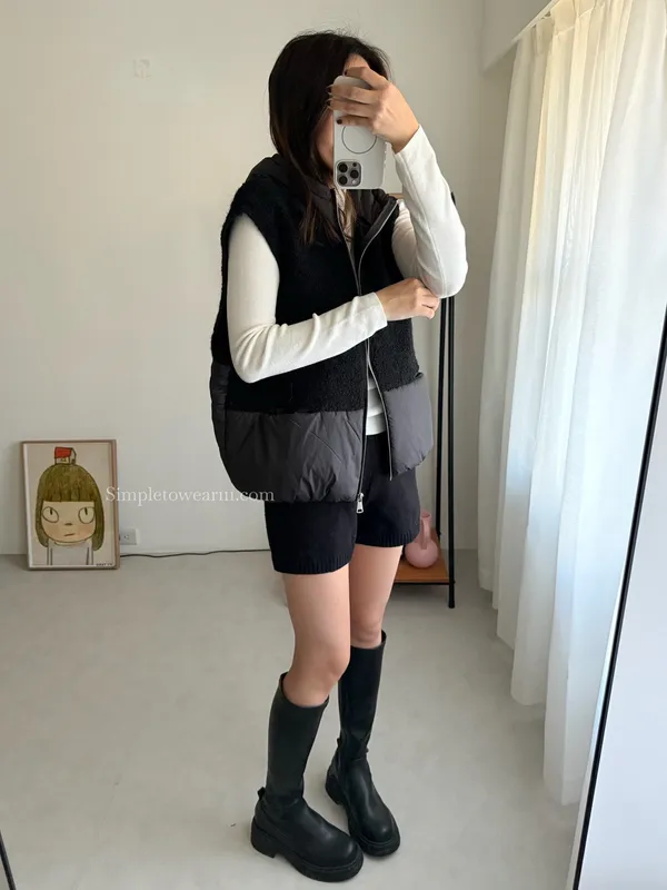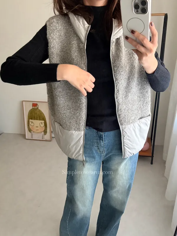 韓版鴨絨拼接針織背心外套 (卡其/黑/灰)